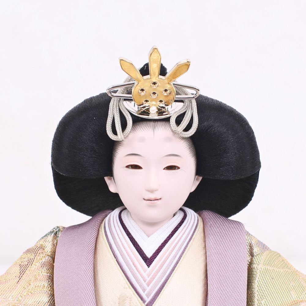 熊倉基安の作品「sumire」は、パールのような上品な輝きと、優雅さを演出しています。洗練された表情と品格ある佇まいが、空間全体を格調高く彩ります。「お人形は顔がいのち」と言われるように、熊倉基安の技術と感性が一体となった逸品で、伝統を大切にしながらも新しい美しさを追求するその姿勢が、ひときわの魅力を放っています。