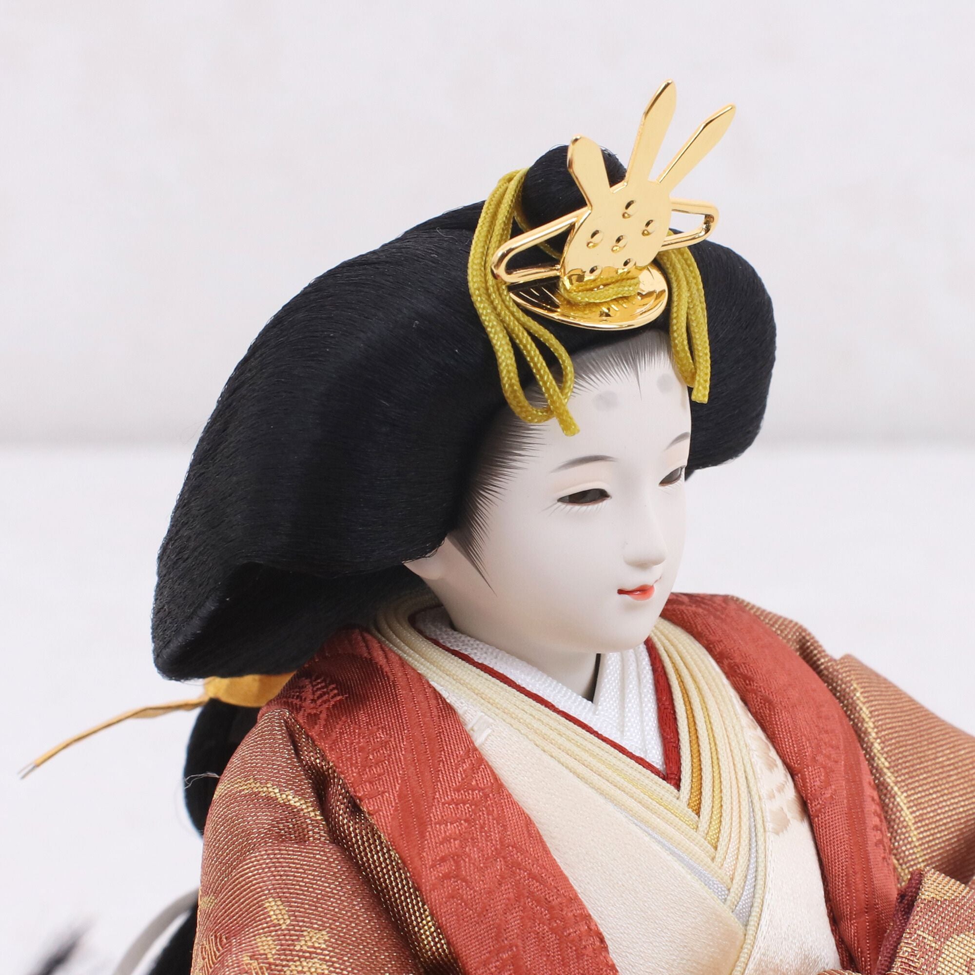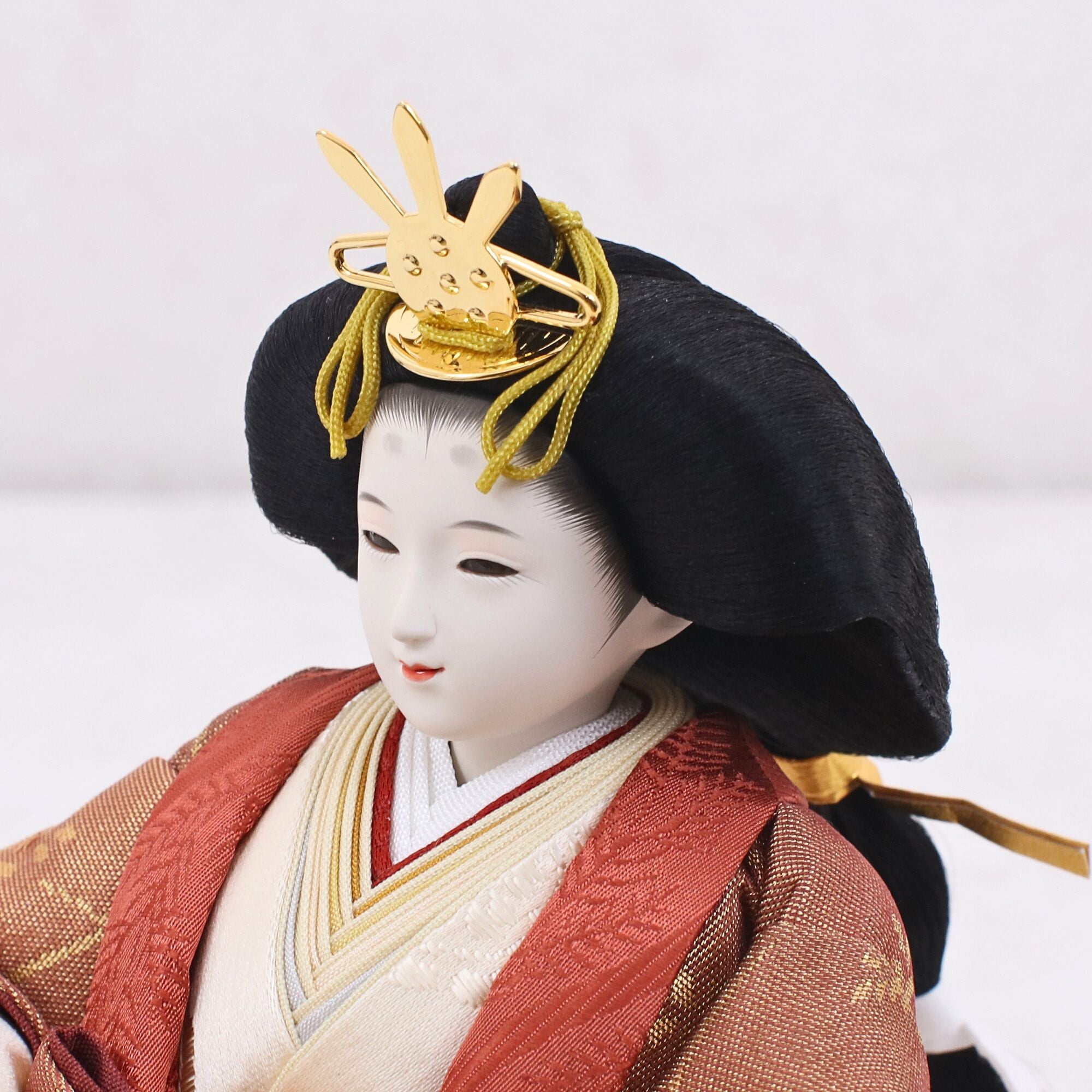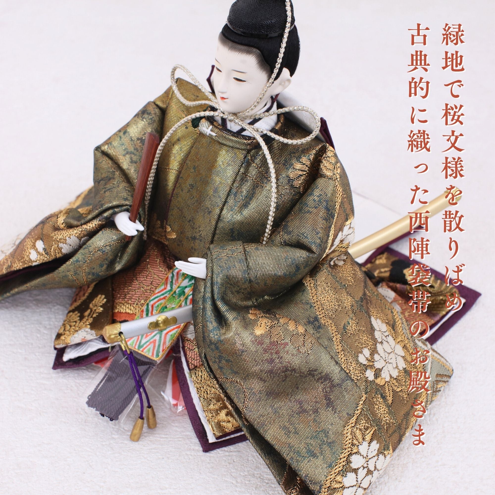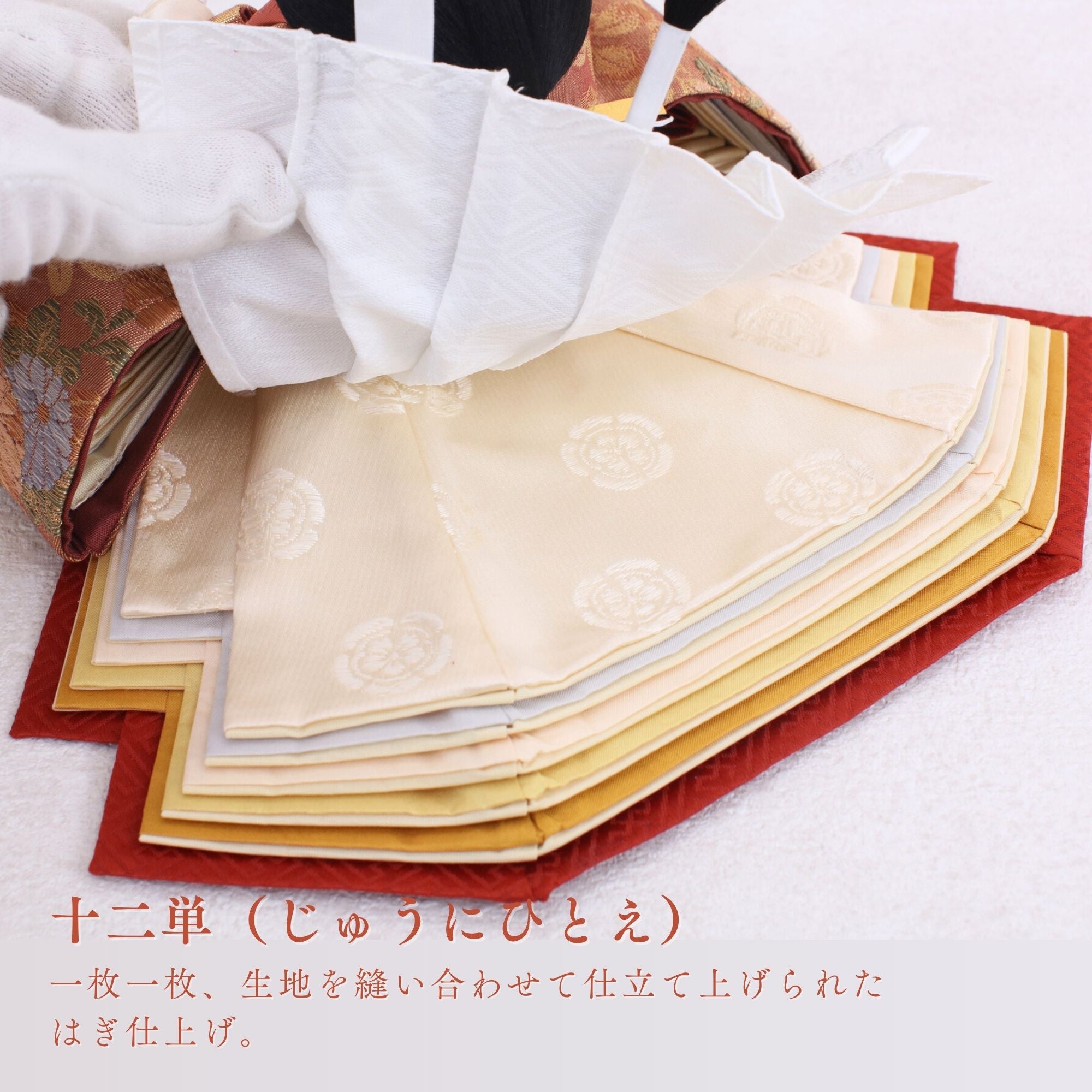 国産の分(せん)は、美しい木目と温もりある質感が魅力の天然木です。耐久性に優れ、経年とともに味わいを醸し出します。台座や屏風などに使用することで、自然素材ならではの落ち着いた風合いと上質感を演出し、雛人形全体をより品格ある印象に仕上げます。