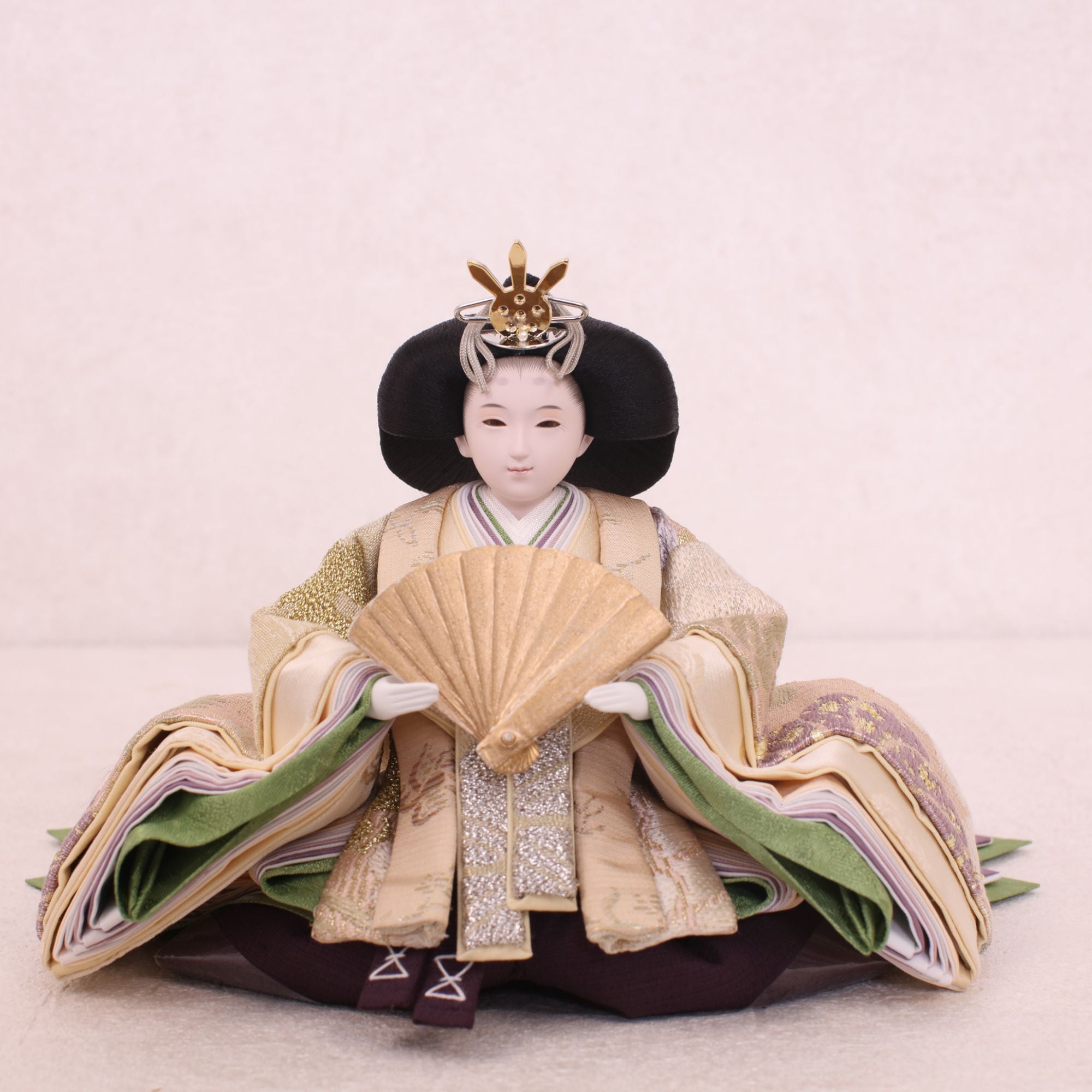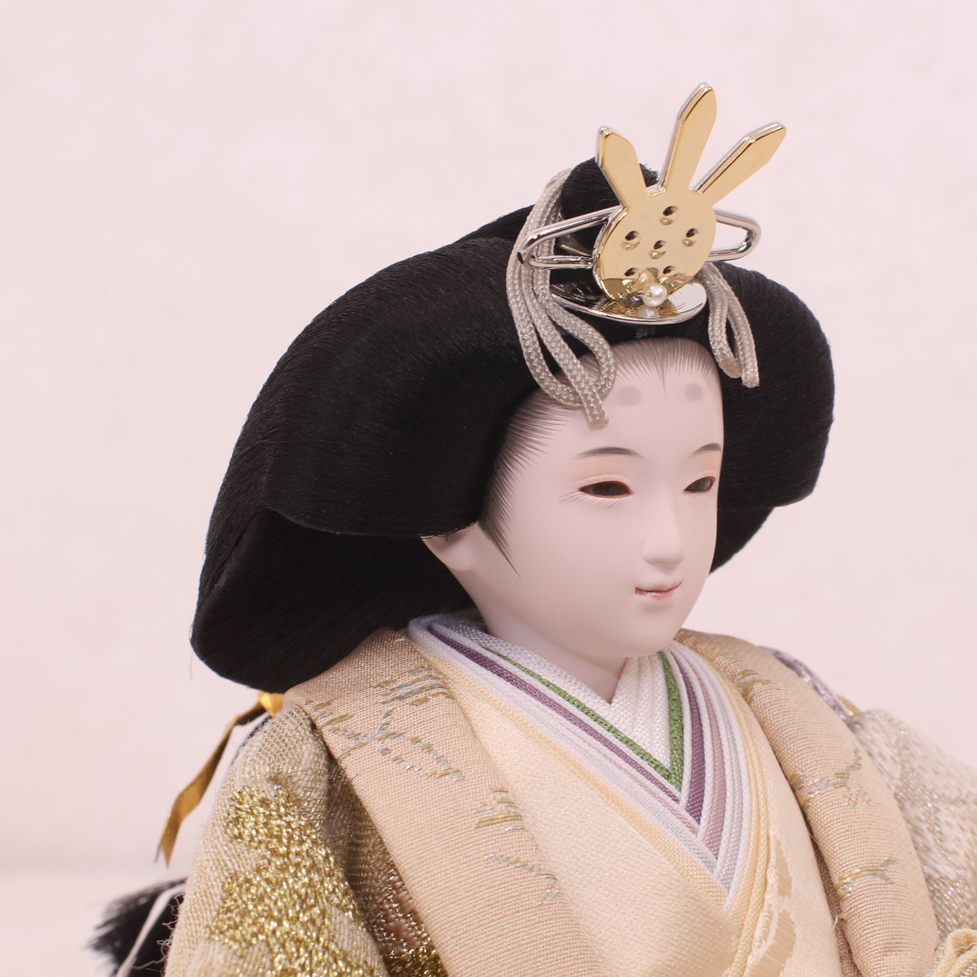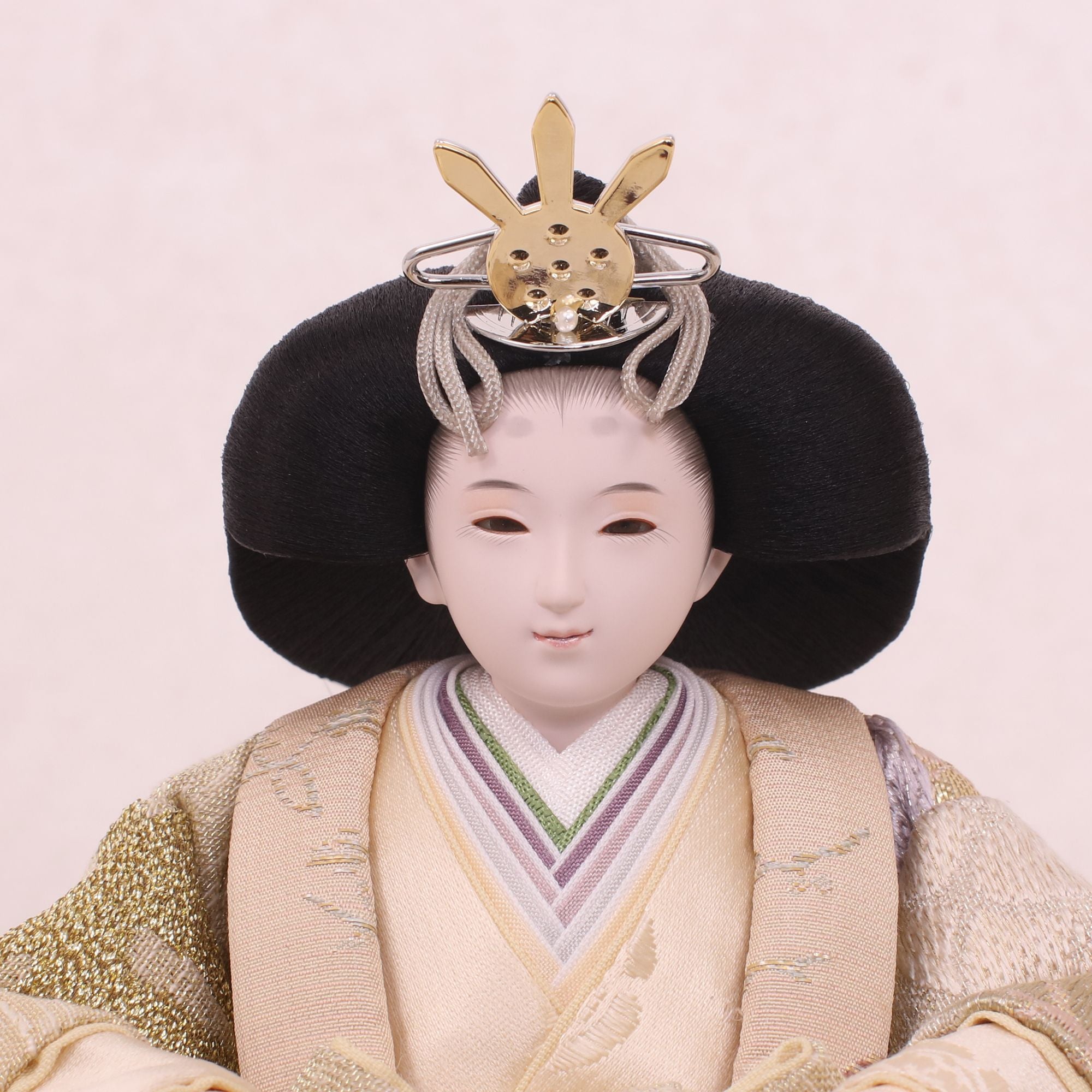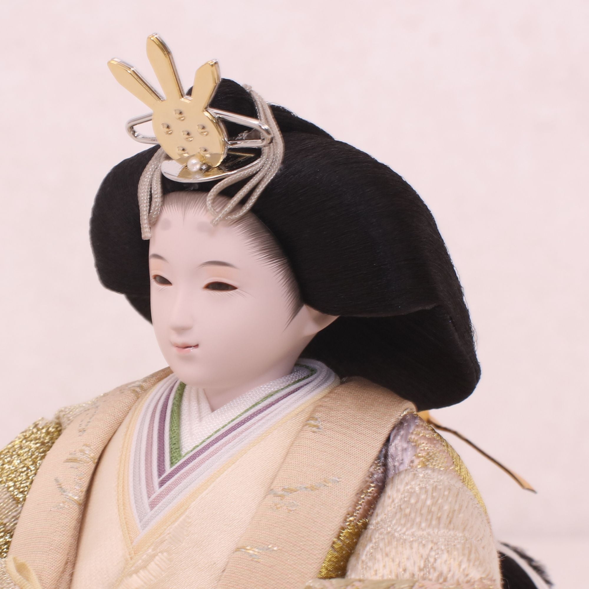 熊倉基安の作品「sumire」は、パールのような上品な輝きと、優雅さを演出しています。洗練された表情と品格ある佇まいが、空間全体を格調高く彩ります。「お人形は顔がいのち」と言われるように、熊倉基安の技術と感性が一体となった逸品で、伝統を大切にしながらも新しい美しさを追求するその姿勢が、ひときわの魅力を放っています。