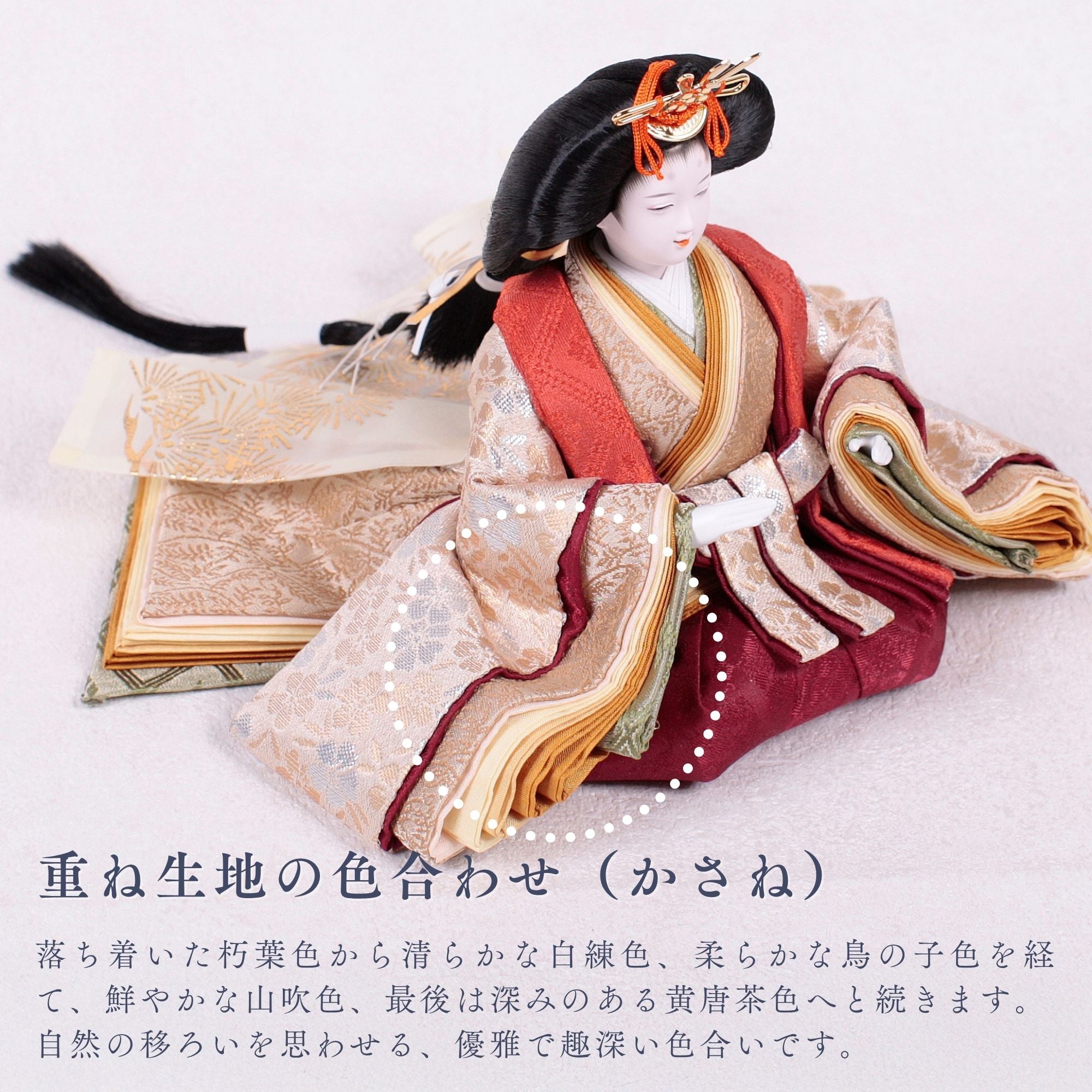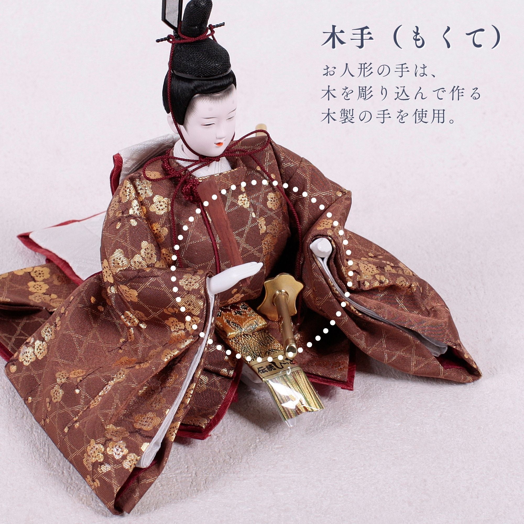 国産の栓(せん)は、美しい木目と温もりある質感が魅力の天然木です。耐久性に優れ、経年とともに味わいを深めます。台座や屏風などに使用することで、自然素材ならではの落ち着いた風合いと上質感を演出し、雛人形全体をより品格ある印象に仕上げます。
