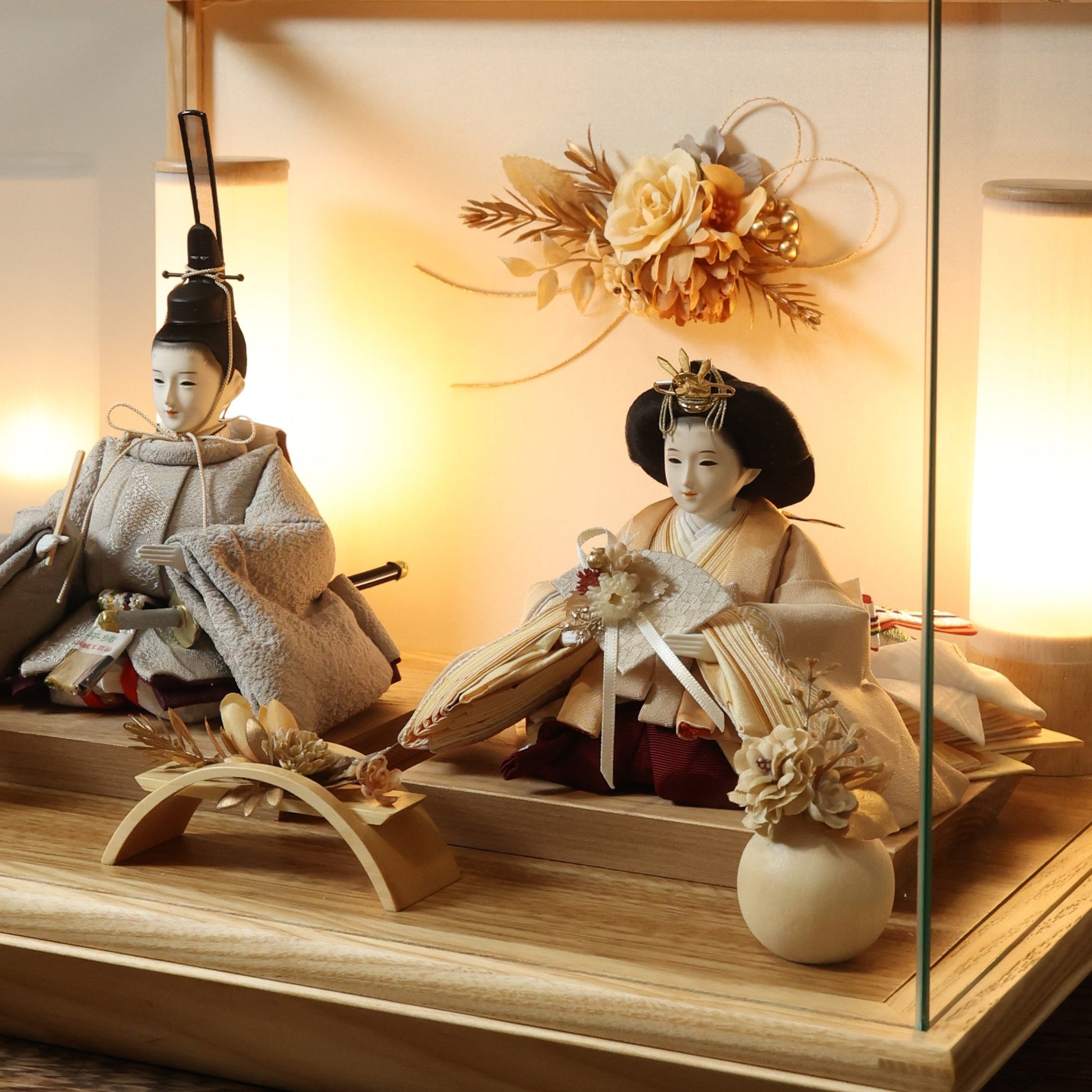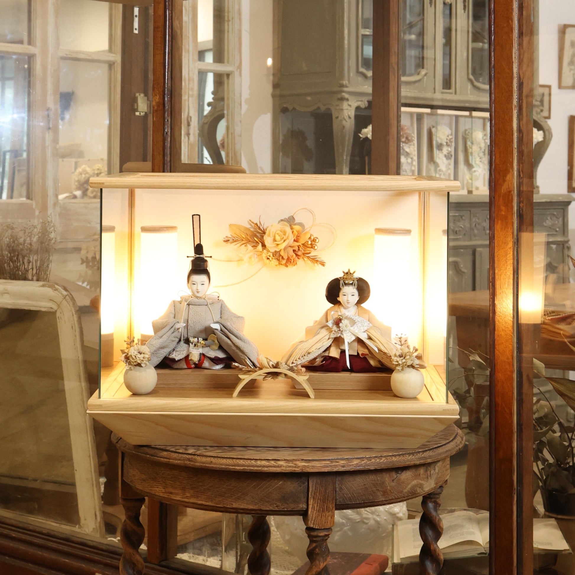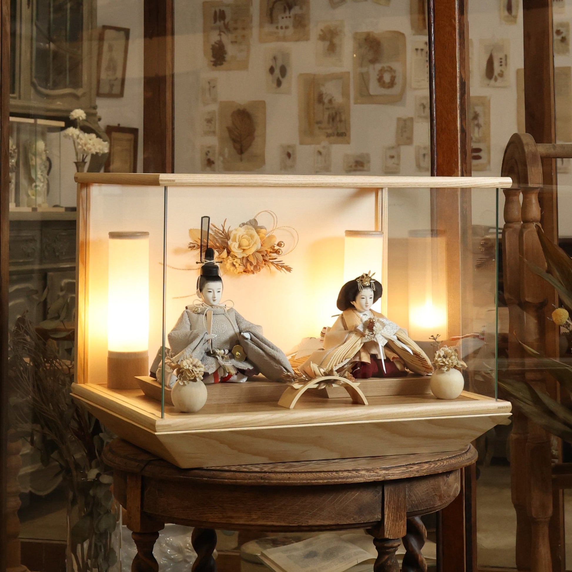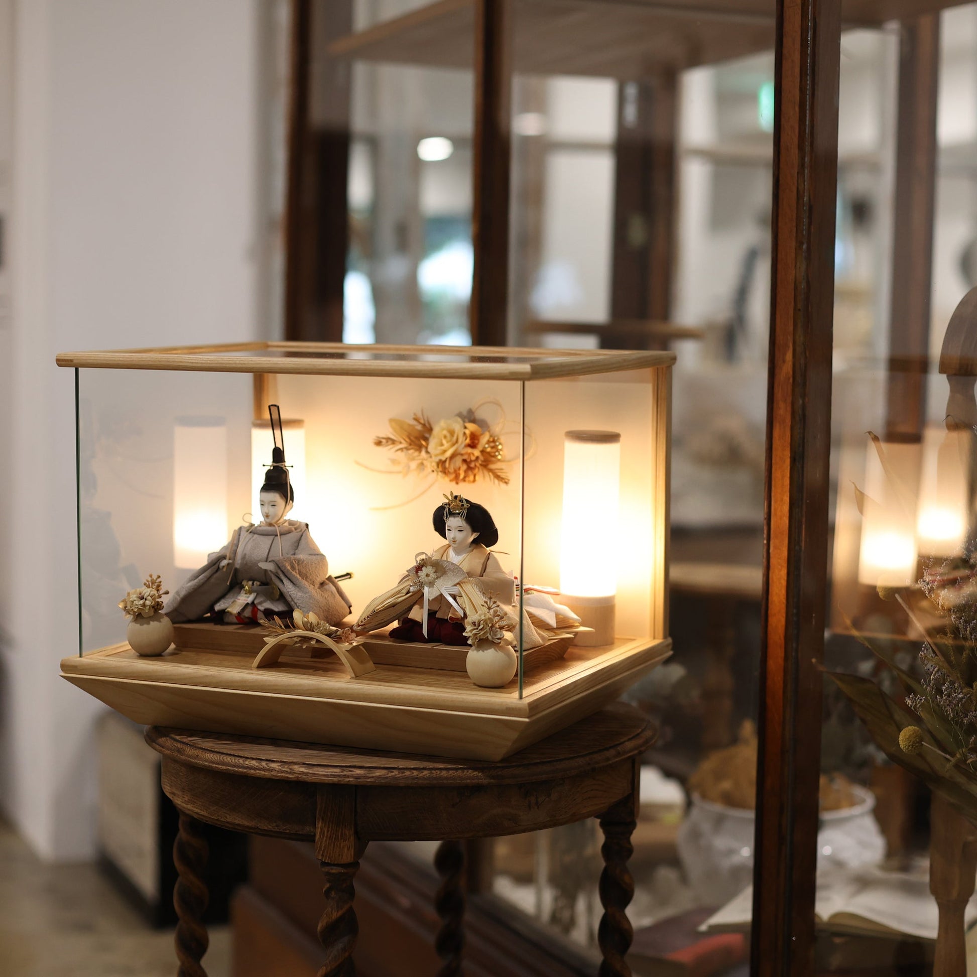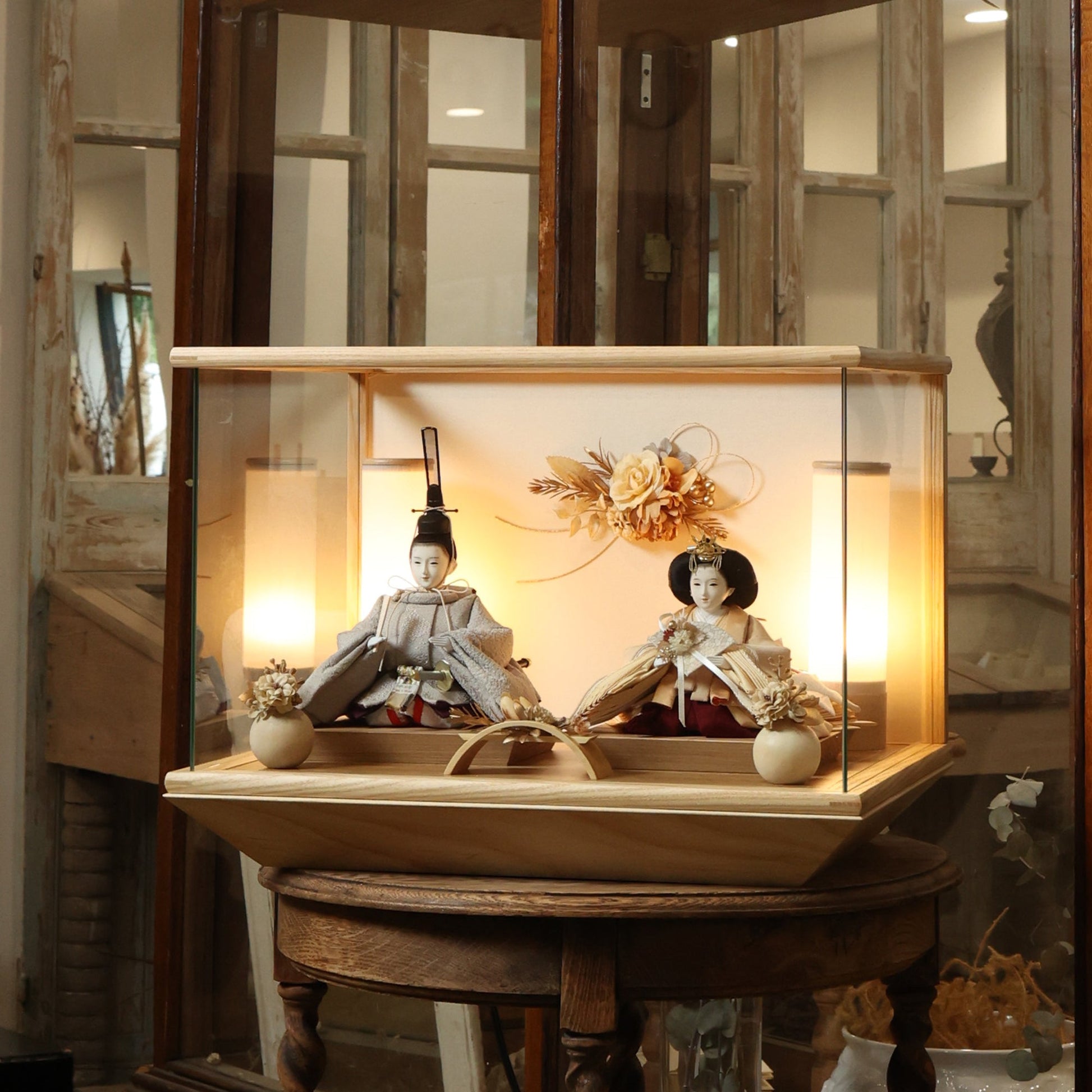 通常2mm厚が一般的な中、当店ではより高品質なAGC製3mmガラスを採用しています。厚みが増すことで強度と安全性が高まり、透明度の高いクリアな美しさを保ちます。大切な雛人形を守りながら、高級感のある見栄えを実現しています。