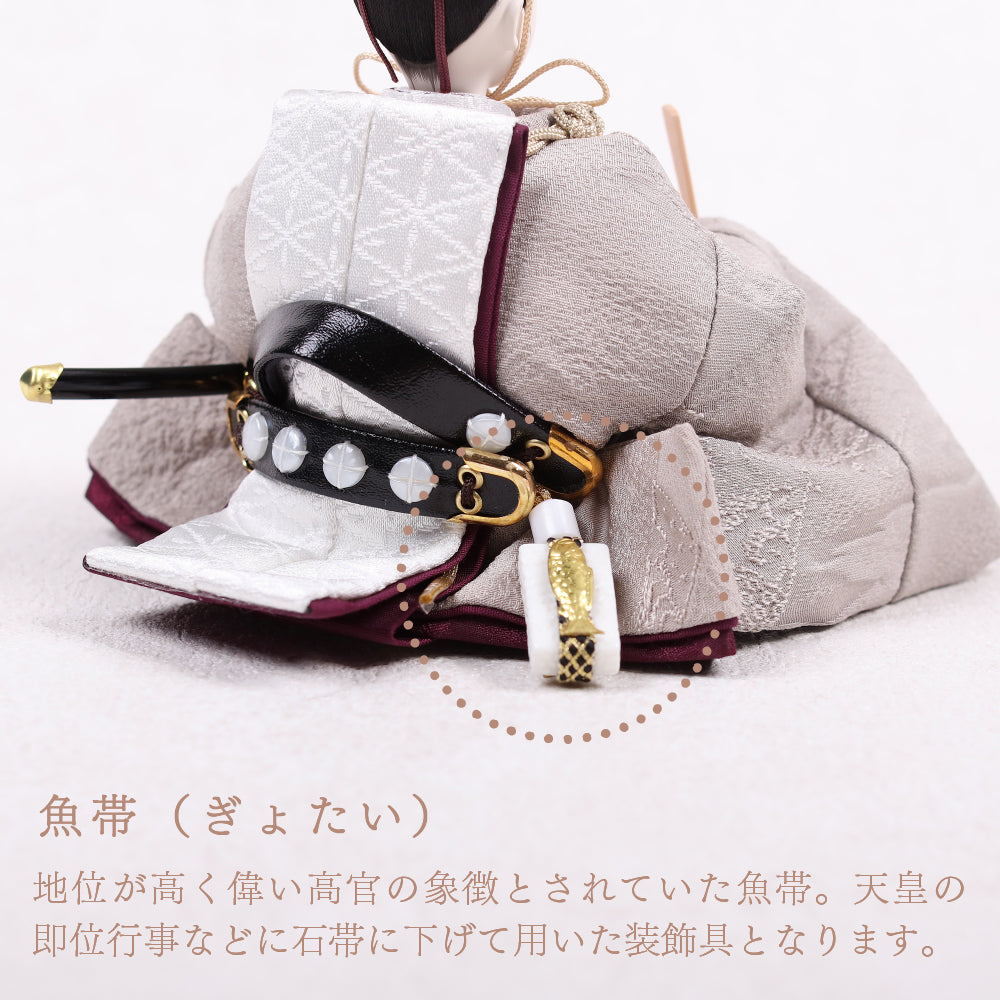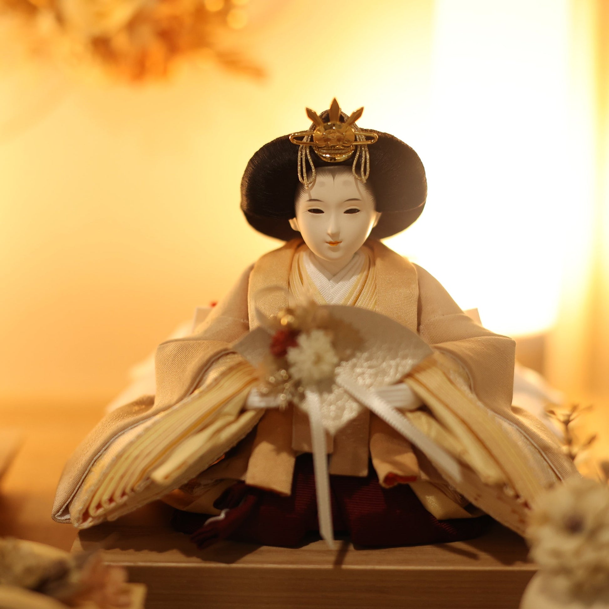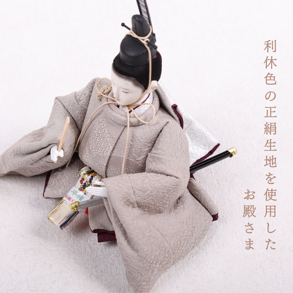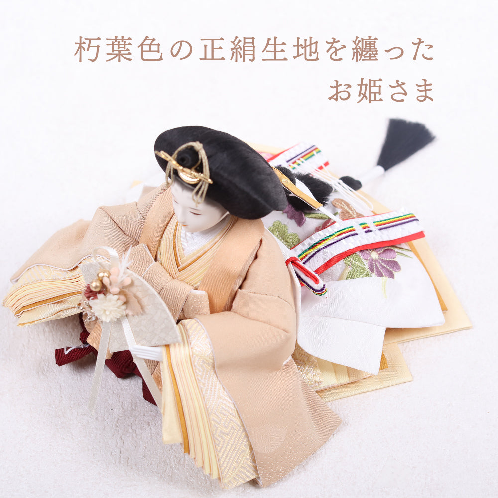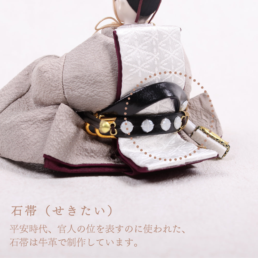 国産の栓(せん)は、美しい木目と温もりある質感が魅力の天然木です。耐久性に優れ、経年とともに味わいを深めます。台座や屏風などに使用することで、自然素材ならではの落ち着いた風合いと上質感を演出し、雛人形全体をより品格ある印象に仕上げます。