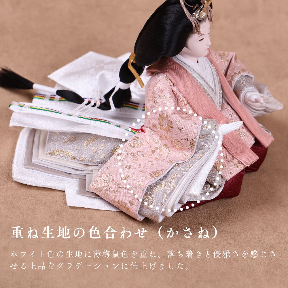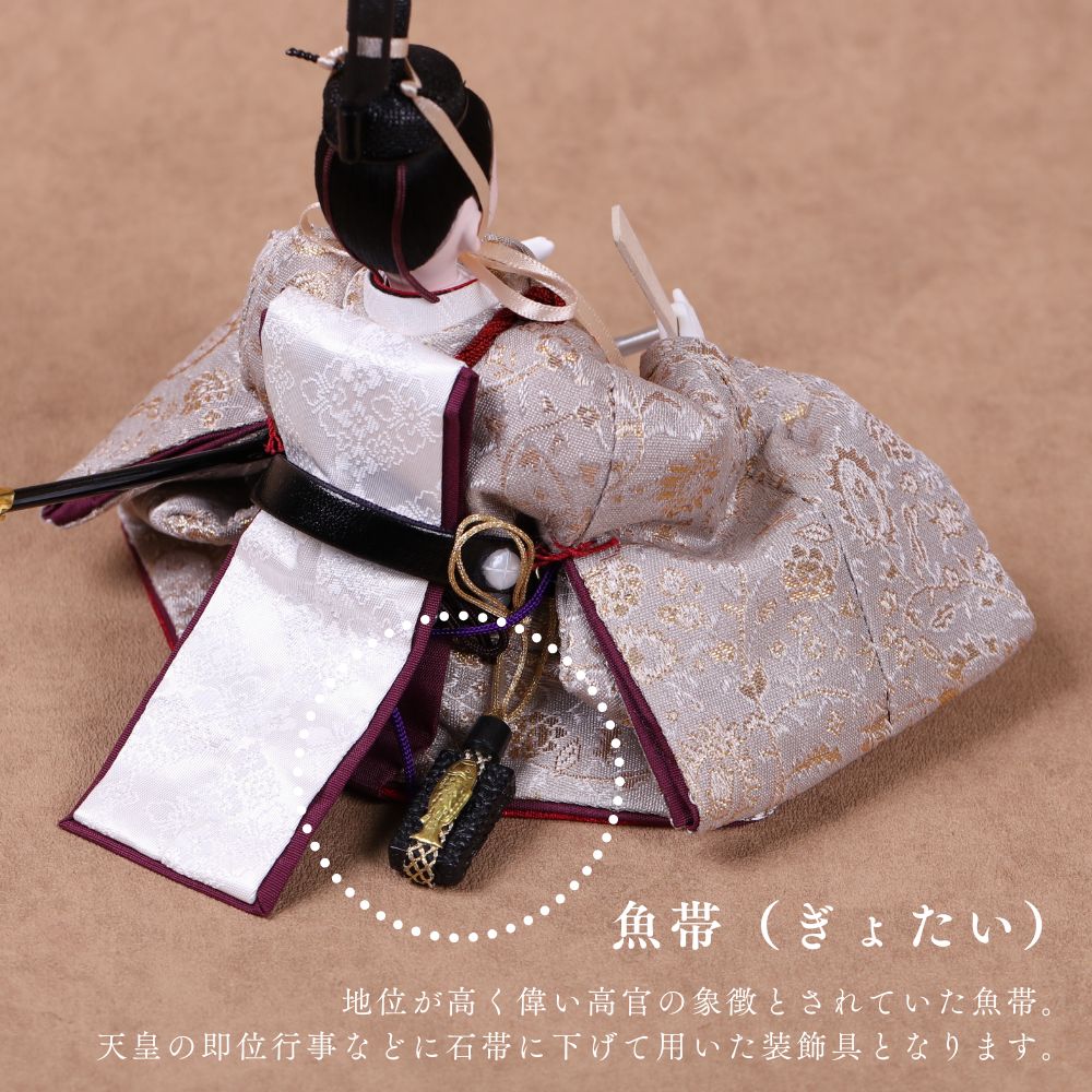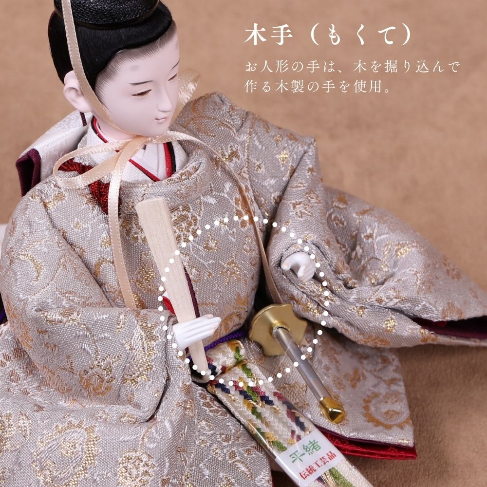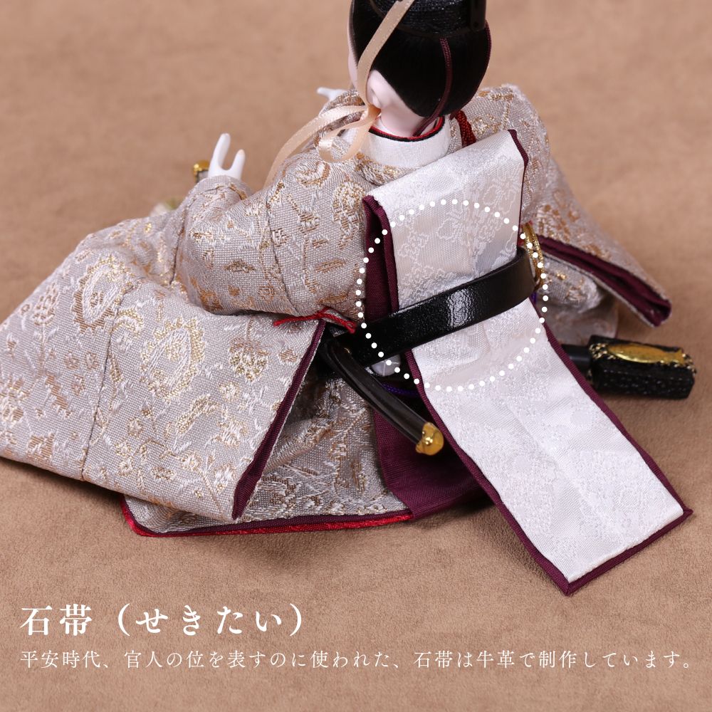 国産の栓(せん)は、美しい木目と温もりある質感が魅力の天然木です。耐久性に優れ、経年とともに味わいを深めます。台座や屏風などに使用することで、自然素材ならではの落ち着いた風合いと上質感を演出し、雛人形全体をより品格ある印象に仕上げます。