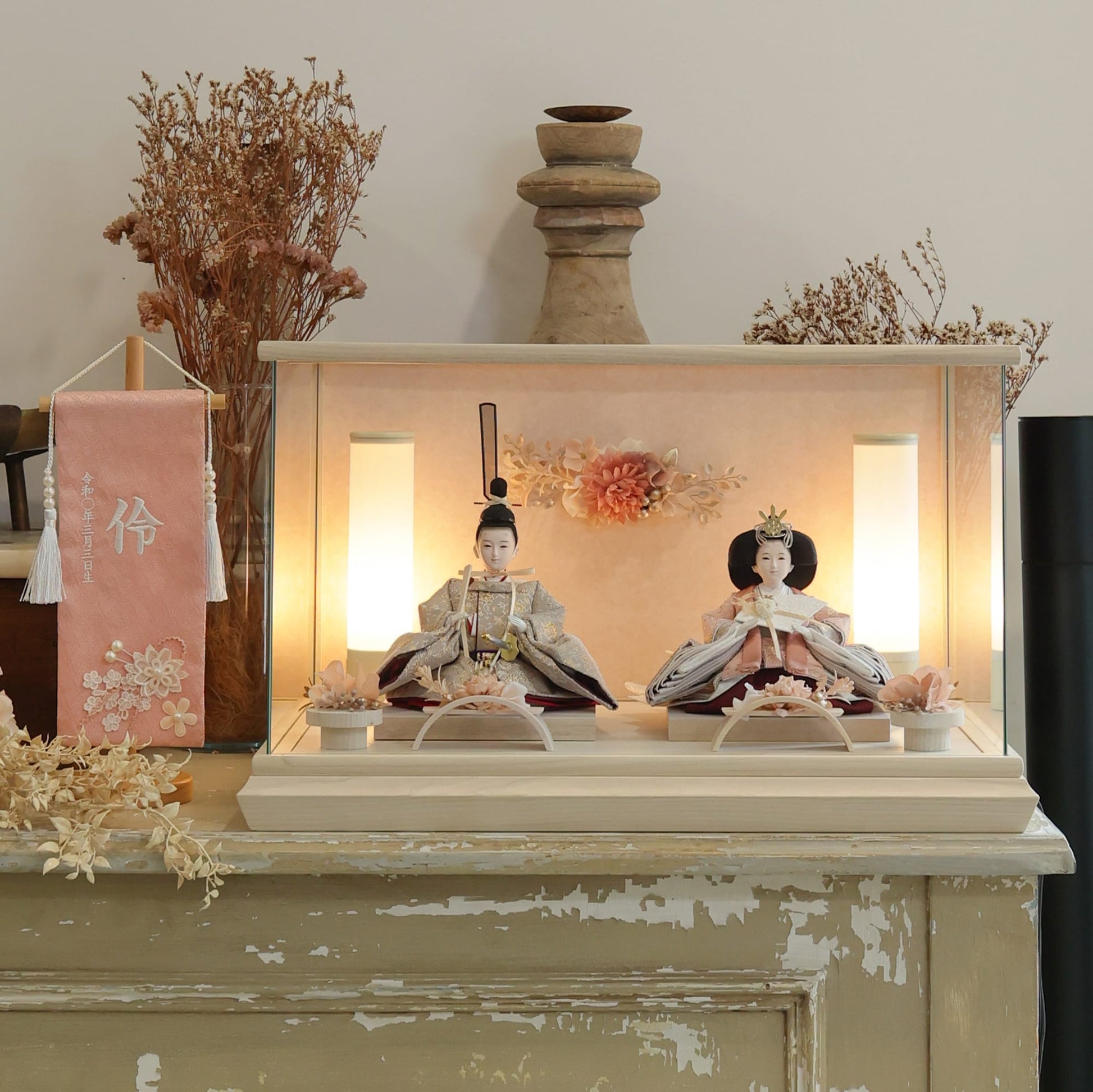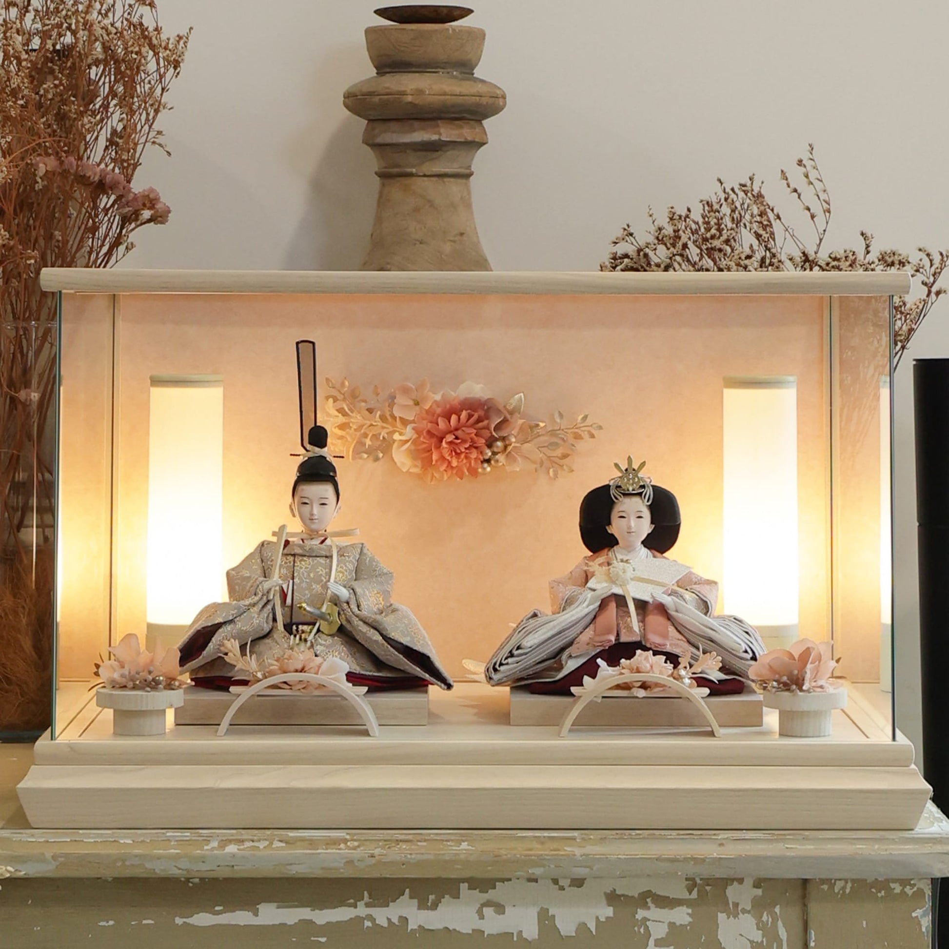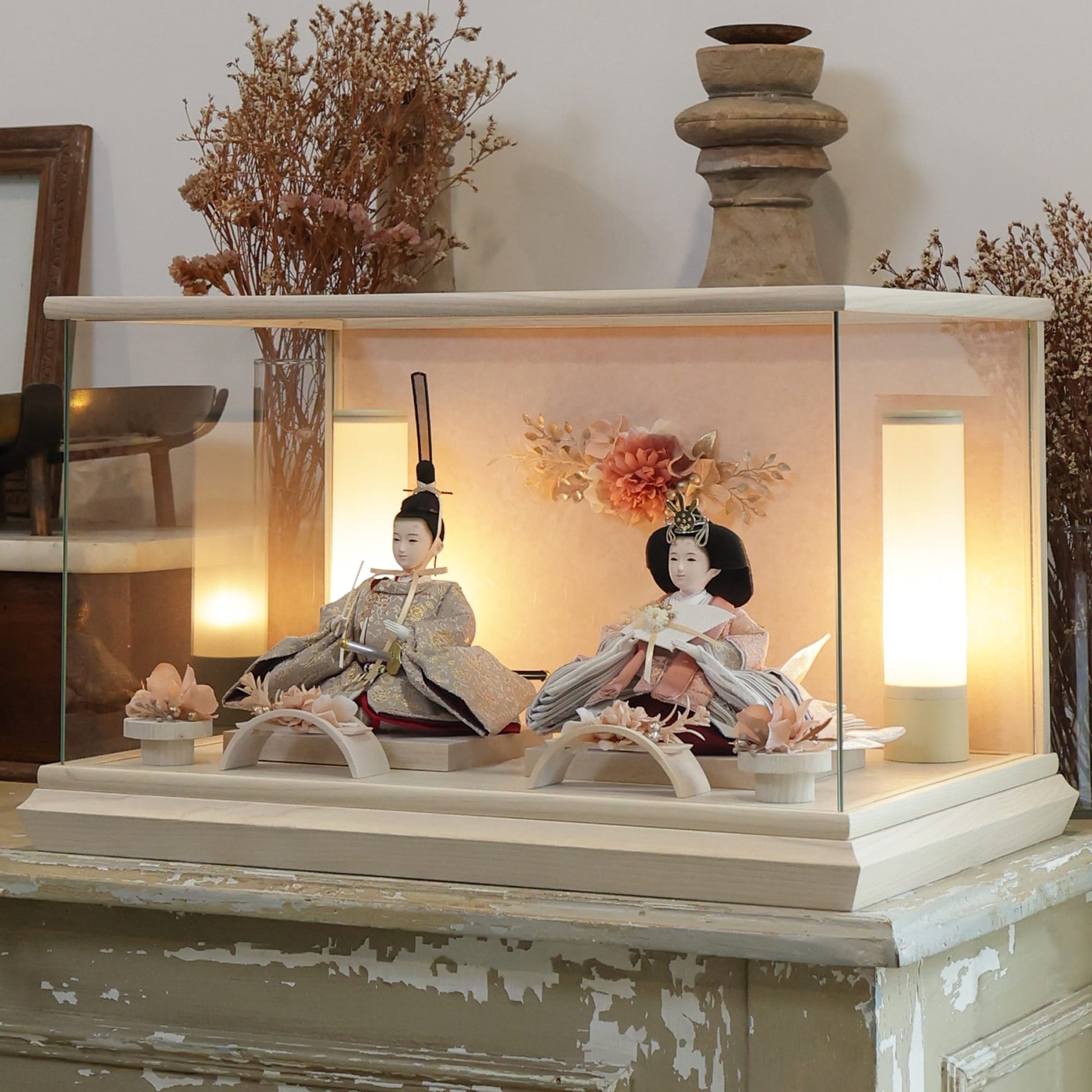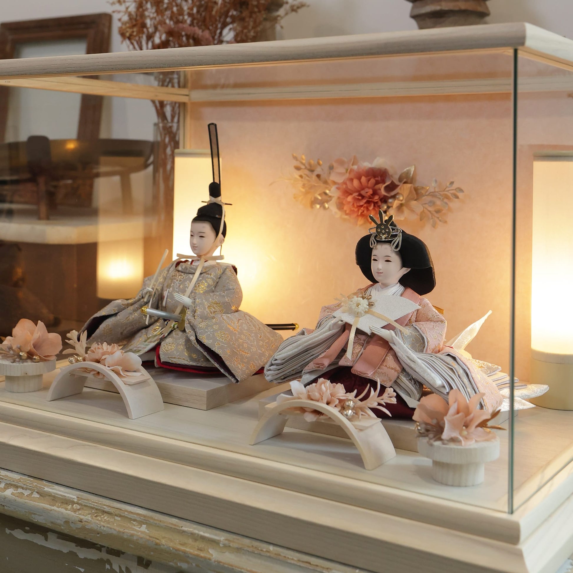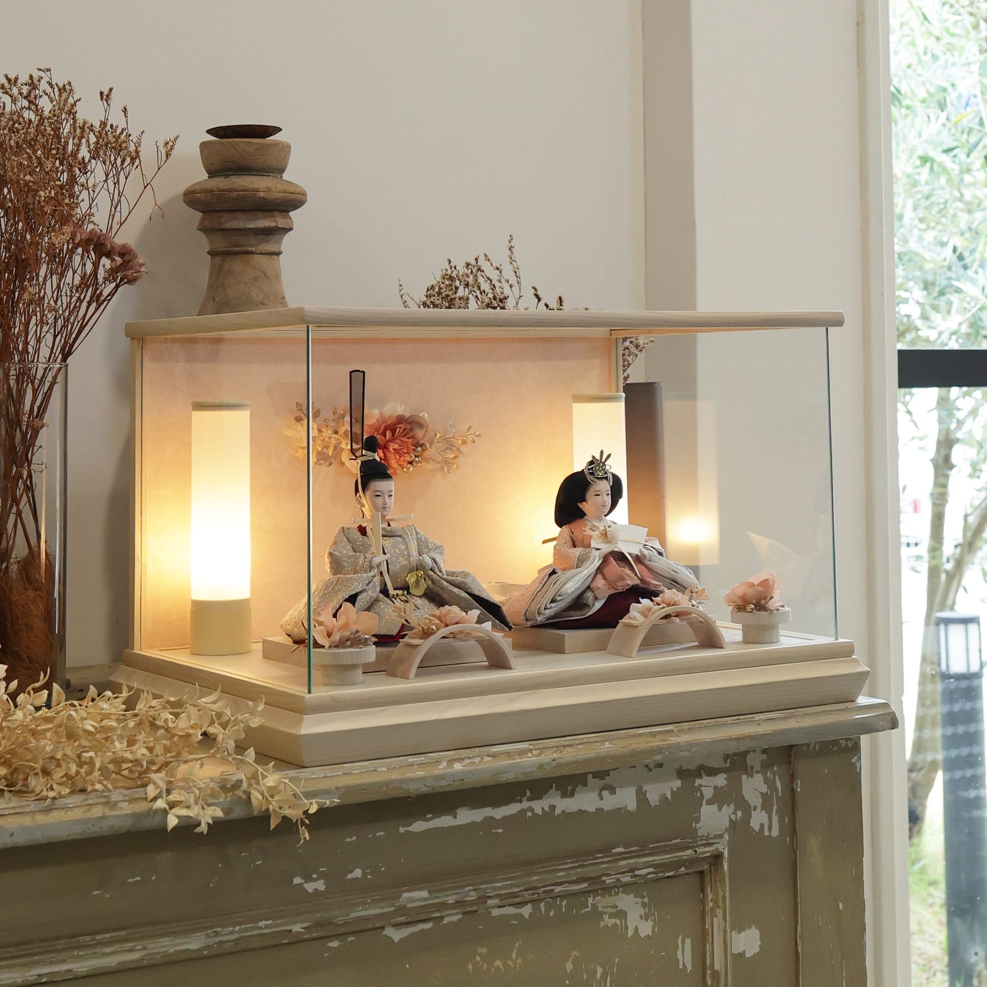 通常2mm厚が一般的な中、当店ではより高品質なAGC製3mmガラスを採用しています。厚みが増すことで強度と安全性が高まり、透明度の高いクリアな美しさを保ちます。大切な雛人形を守りながら、高級感のある見栄えを実現しています。