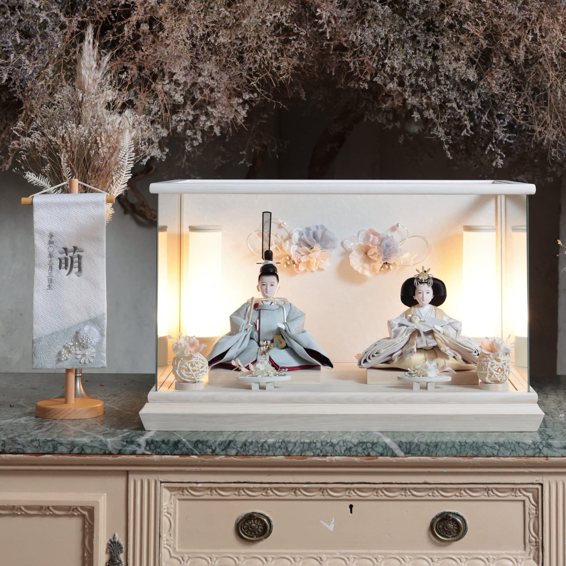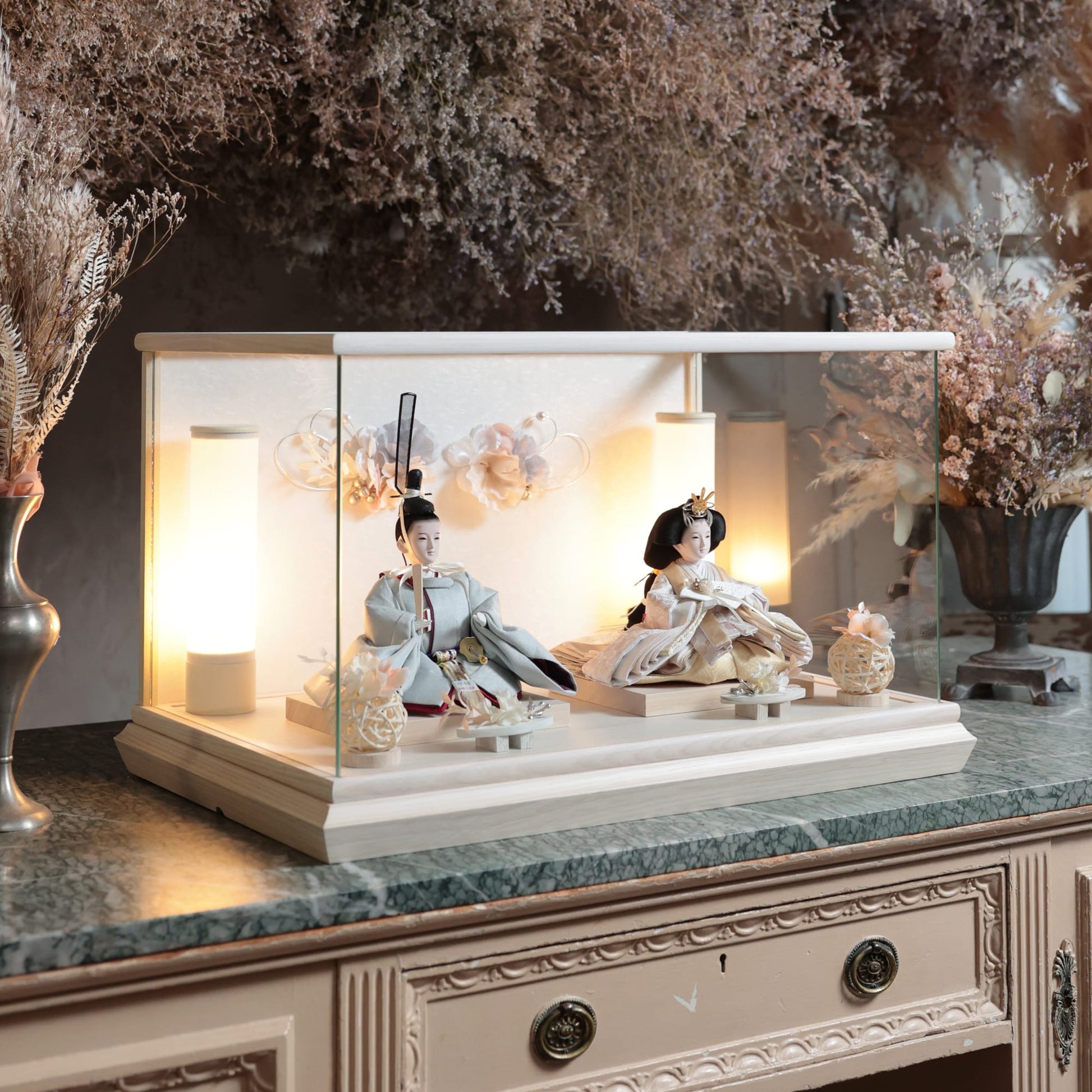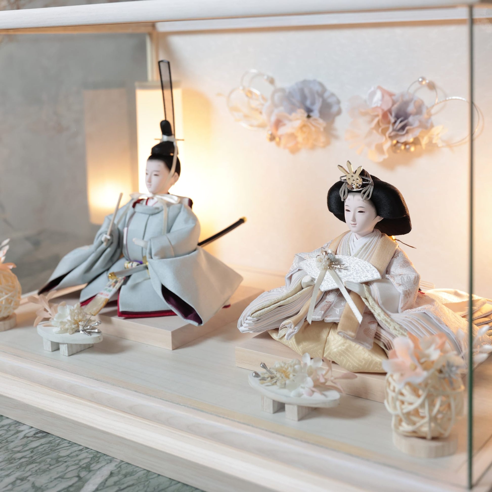 通常2mm厚が一般的な中、当店ではより高品質なAGC製3mmガラスを採用しています。厚みが増すことで強度と安全性が高まり、透明度の高いクリアな美しさを保ちます。大切な雛人形を守りながら、高級感のある見栄えを実現しています。