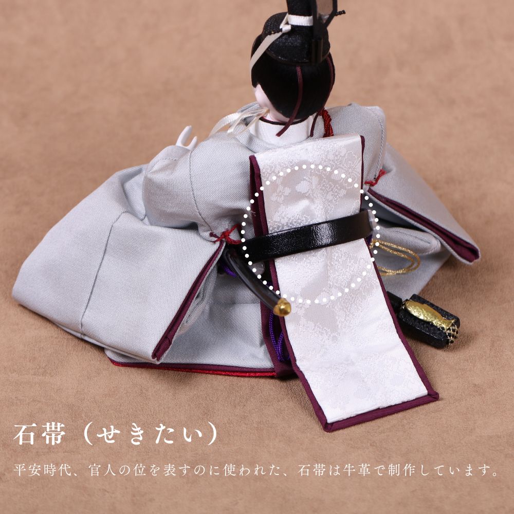 国産の栓(せん)は、美しい木目と温もりある質感が魅力の天然木です。耐久性に優れ、経年とともに味わいを深めます。台座や屏風などに使用することで、自然素材ならではの落ち着いた風合いと上質感を演出し、雛人形全体をより品格ある印象に仕上げます。