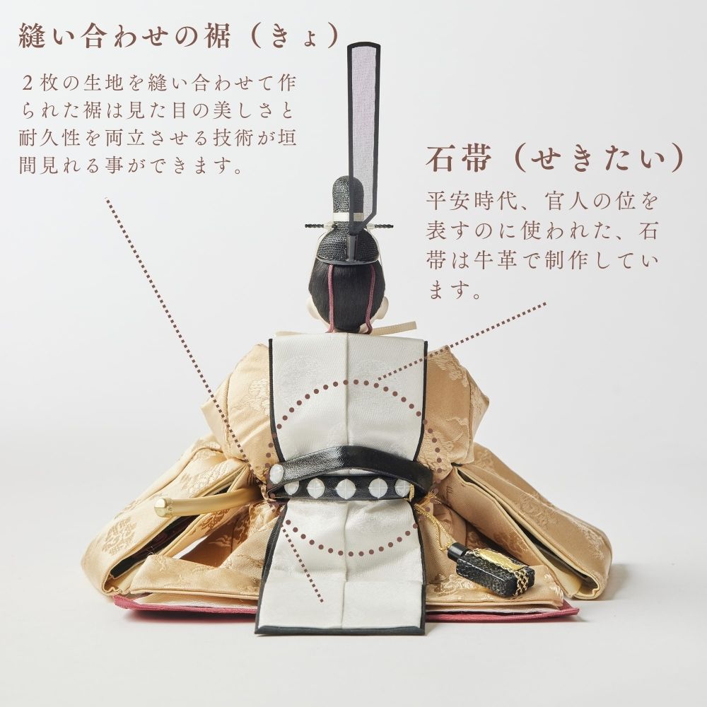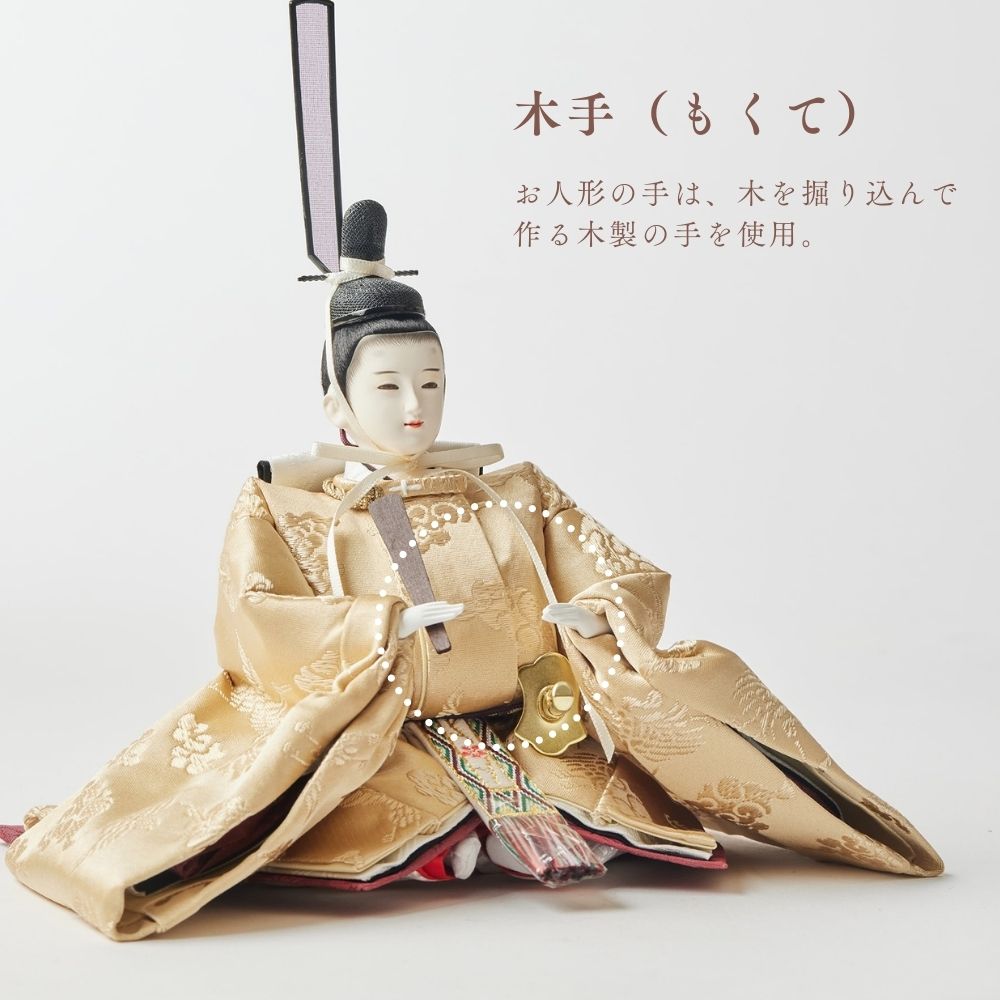 国産の栓(せん)は、美しい木目と温もりある質感が魅力の天然木です。耐久性に優れ、経年とともに味わいを深めます。台座や屏風などに使用することで、自然素材ならではの落ち着いた風合いと上質感を演出し、雛人形全体をより品格ある印象に仕上げます。