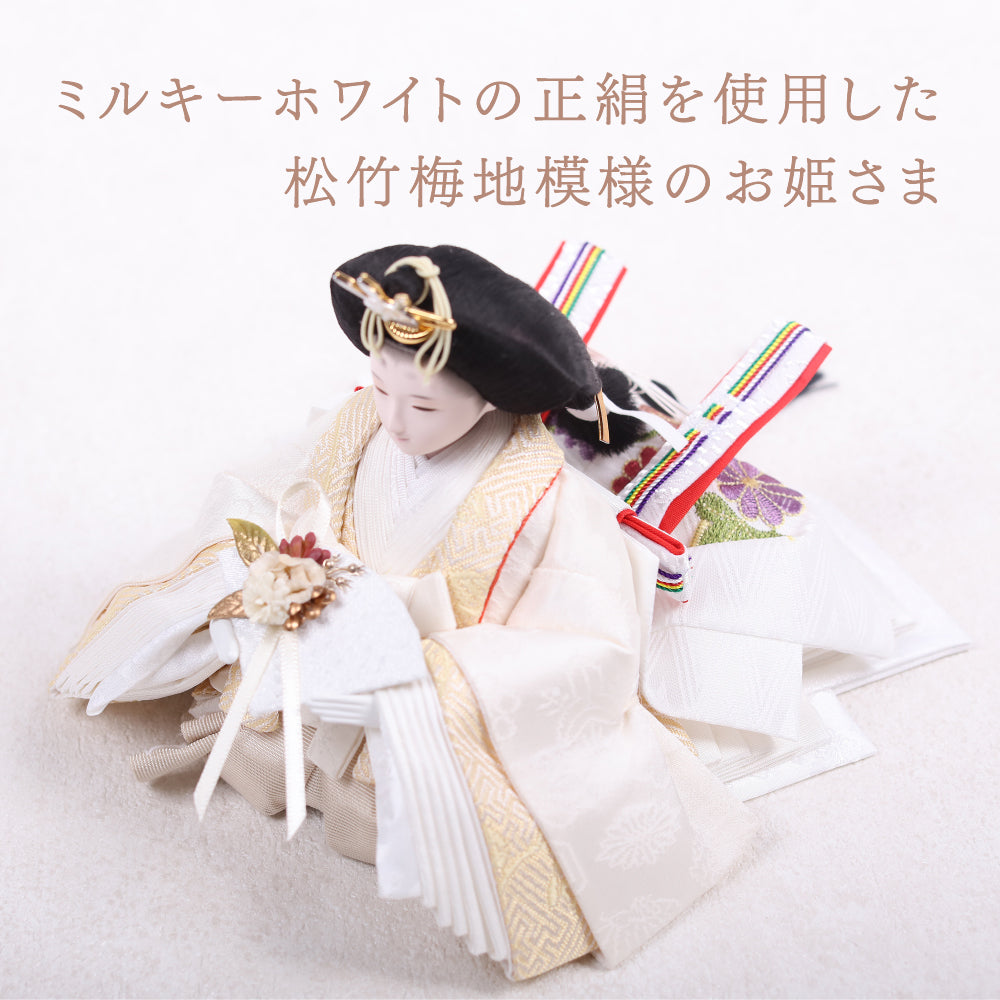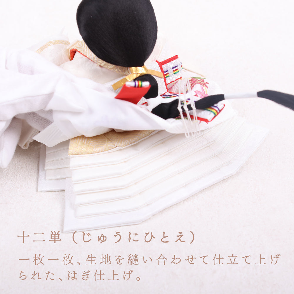 正絹は、100%絹から作られた生地で、「本絹」とも呼ばれます。蚕の繭を原料にし、複雑な工程を経て製造されます。絹糸を織って生地に仕上げることで、独特の光沢と滑らかな質感が生まれ、高級感のあるお人形が完成します。正絹は伝統的な工芸品に広く用いられ、その美しさが際立っています。
