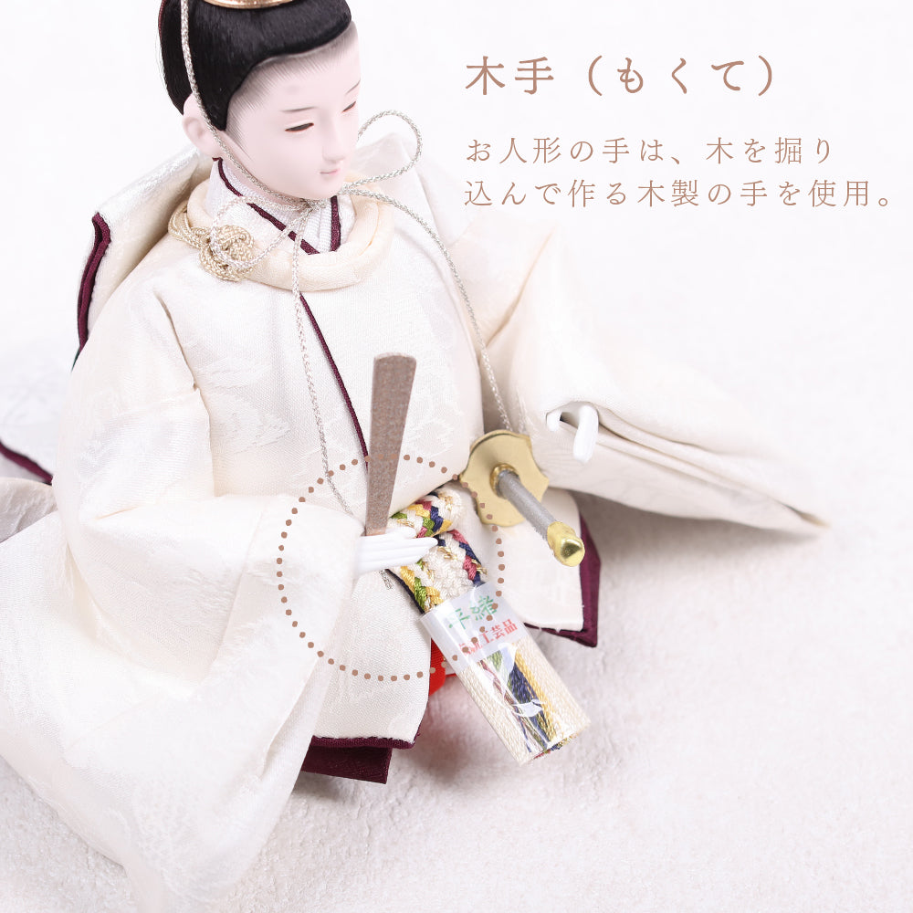 国産の栓(せん)は、美しい木目と温もりある質感が魅力の天然木です。耐久性に優れ、経年とともに味わいを深めます。台座や屏風などに使用することで、自然素材ならではの落ち着いた風合いと上質感を演出し、雛人形全体をより品格ある印象に仕上げます。