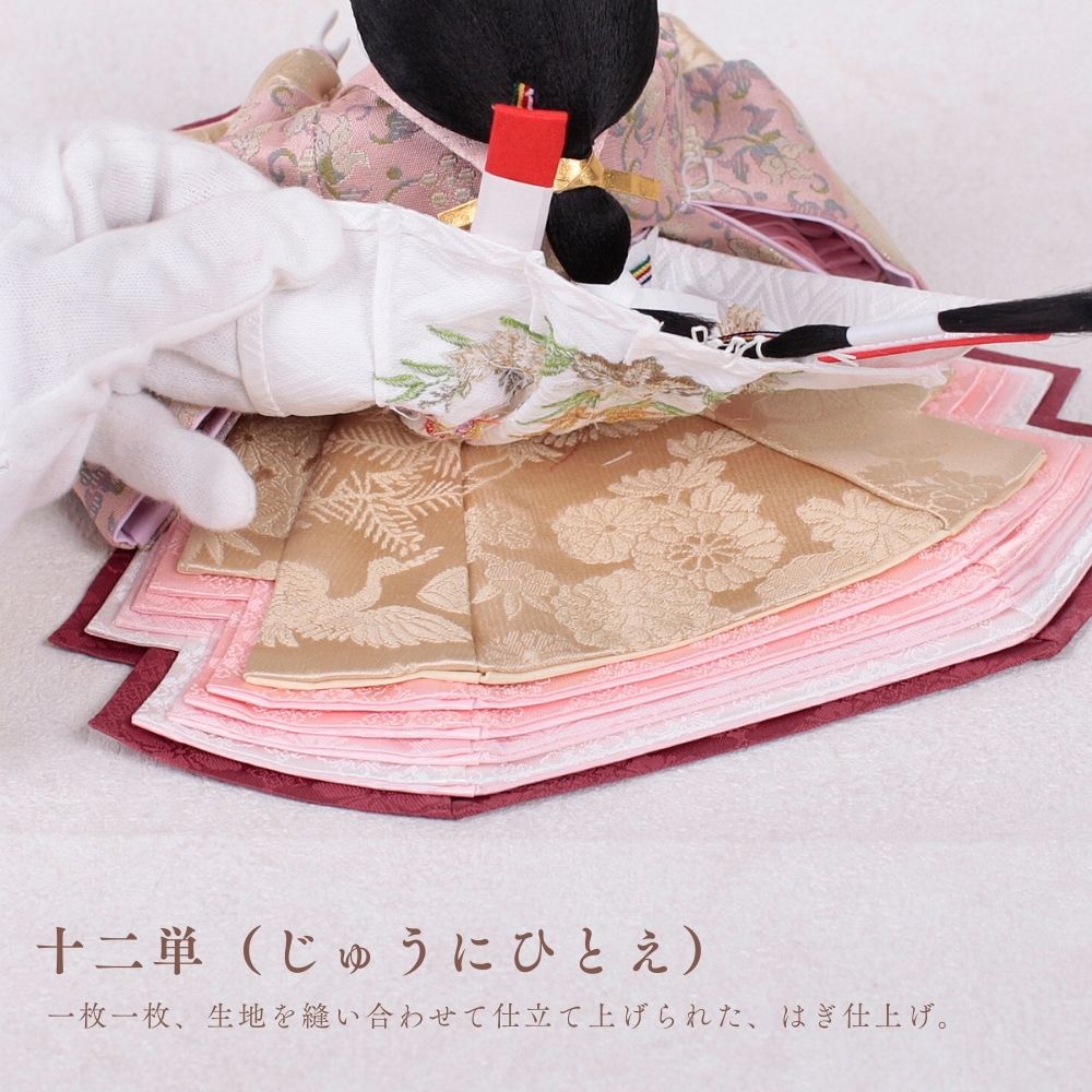 正絹は、100%絹から作られた生地で、「本絹」とも呼ばれます。蚕の繭を原料にし、複雑な工程を経て製造されます。絹糸を織って生地に仕上げることで、独特の光沢と滑らかな質感が生まれ、高級感のあるお人形が完成します。正絹は伝統的な工芸品に広く用いられ、その美しさが際立っています。