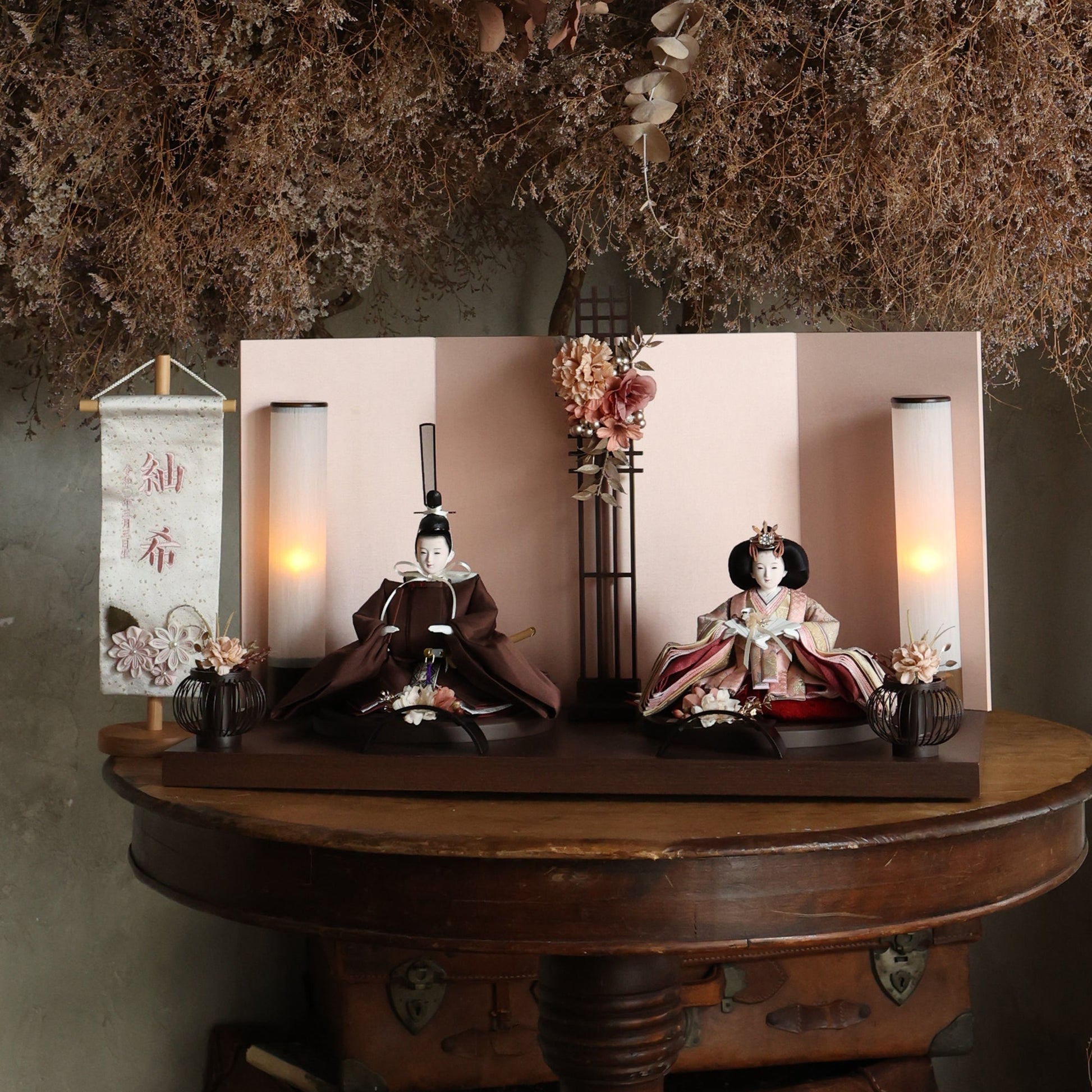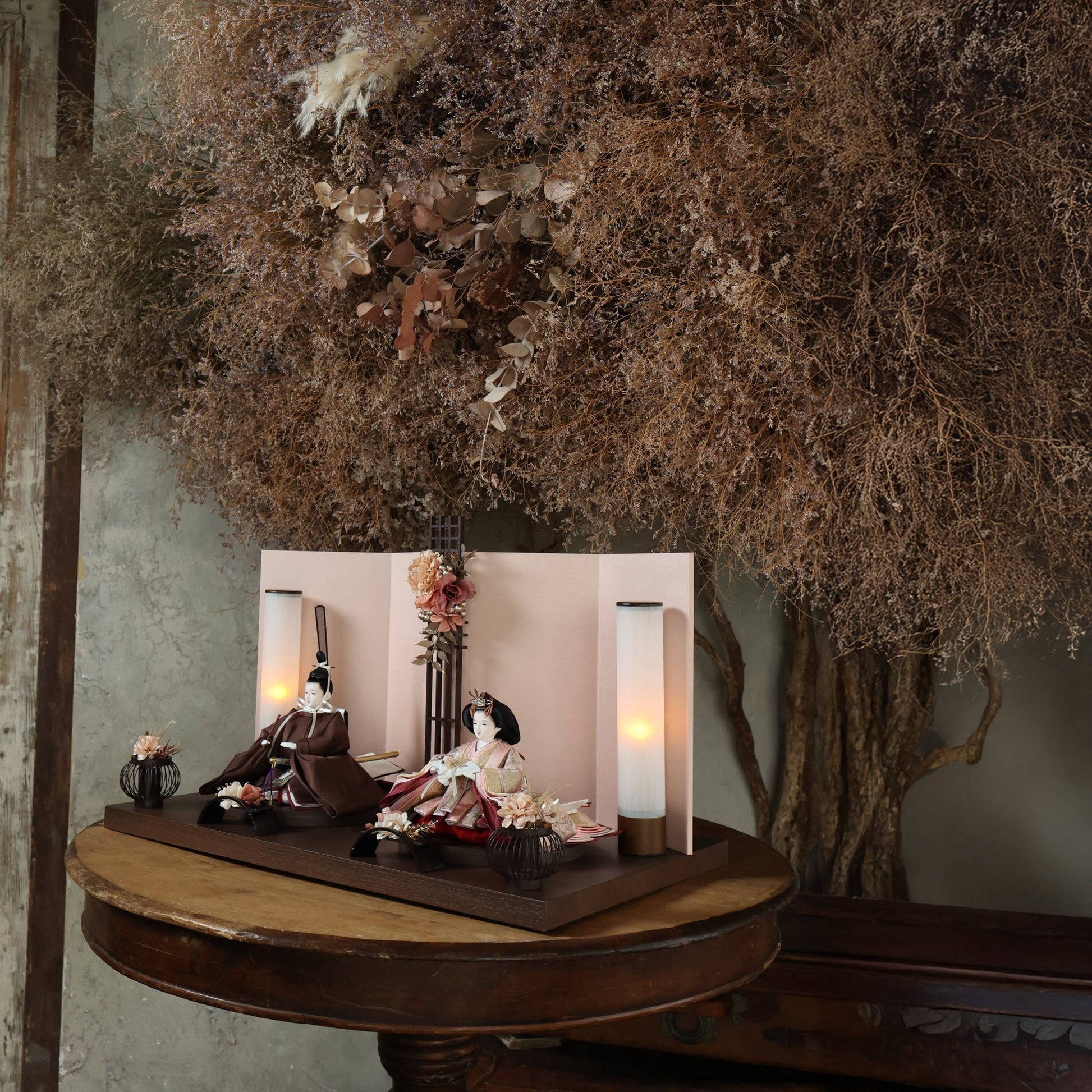 国産の栓(せん)は、美しい木目と温もりある質感が魅力の天然木です。耐久性に優れ、経年とともに味わいを深めます。台座や屏風などに使用することで、自然素材ならではの落ち着いた風合いと上質感を演出し、雛人形全体をより品格ある印象に仕上げます。