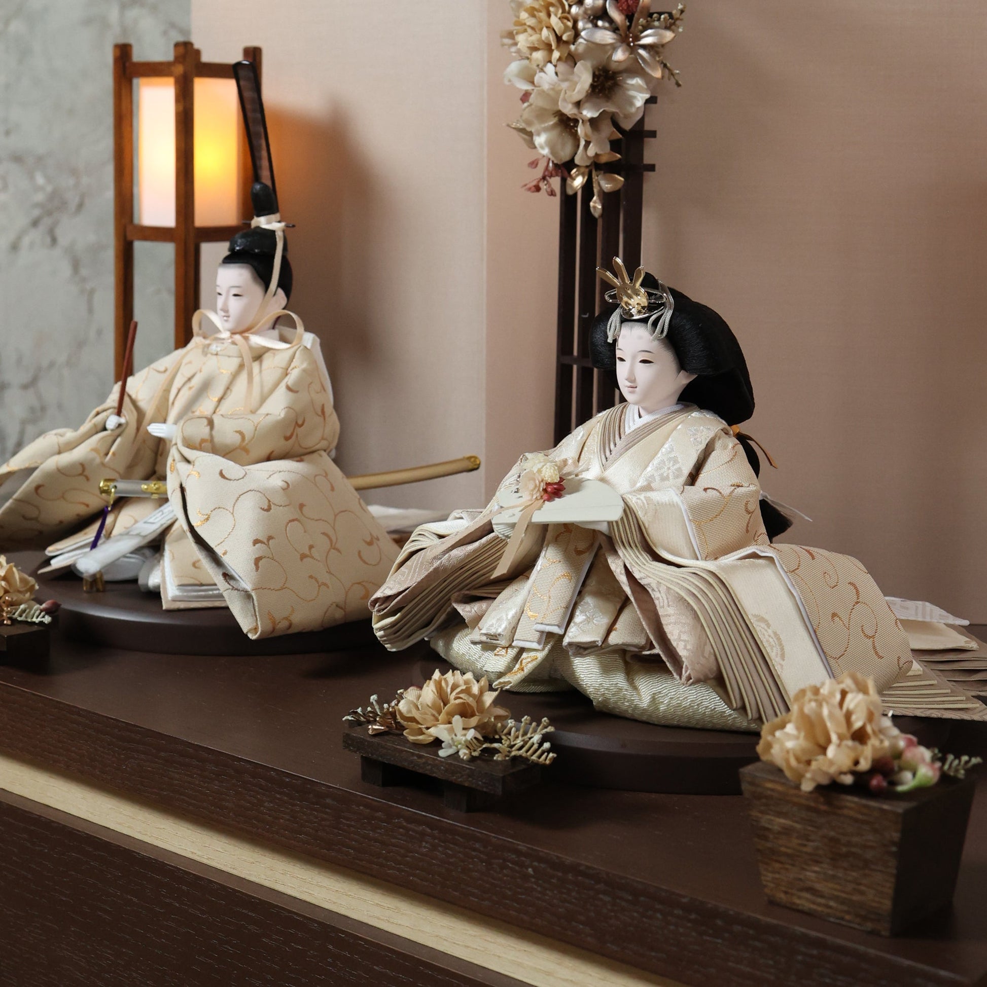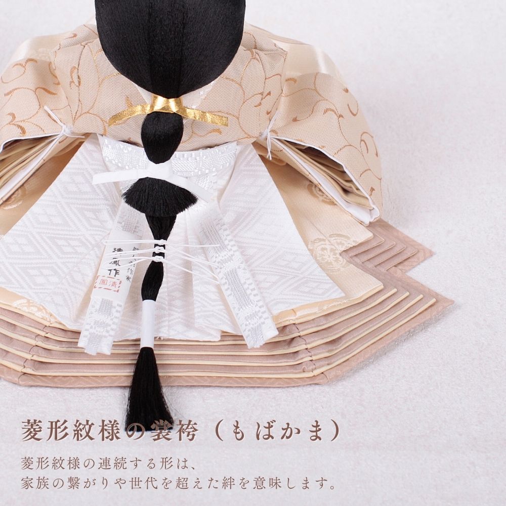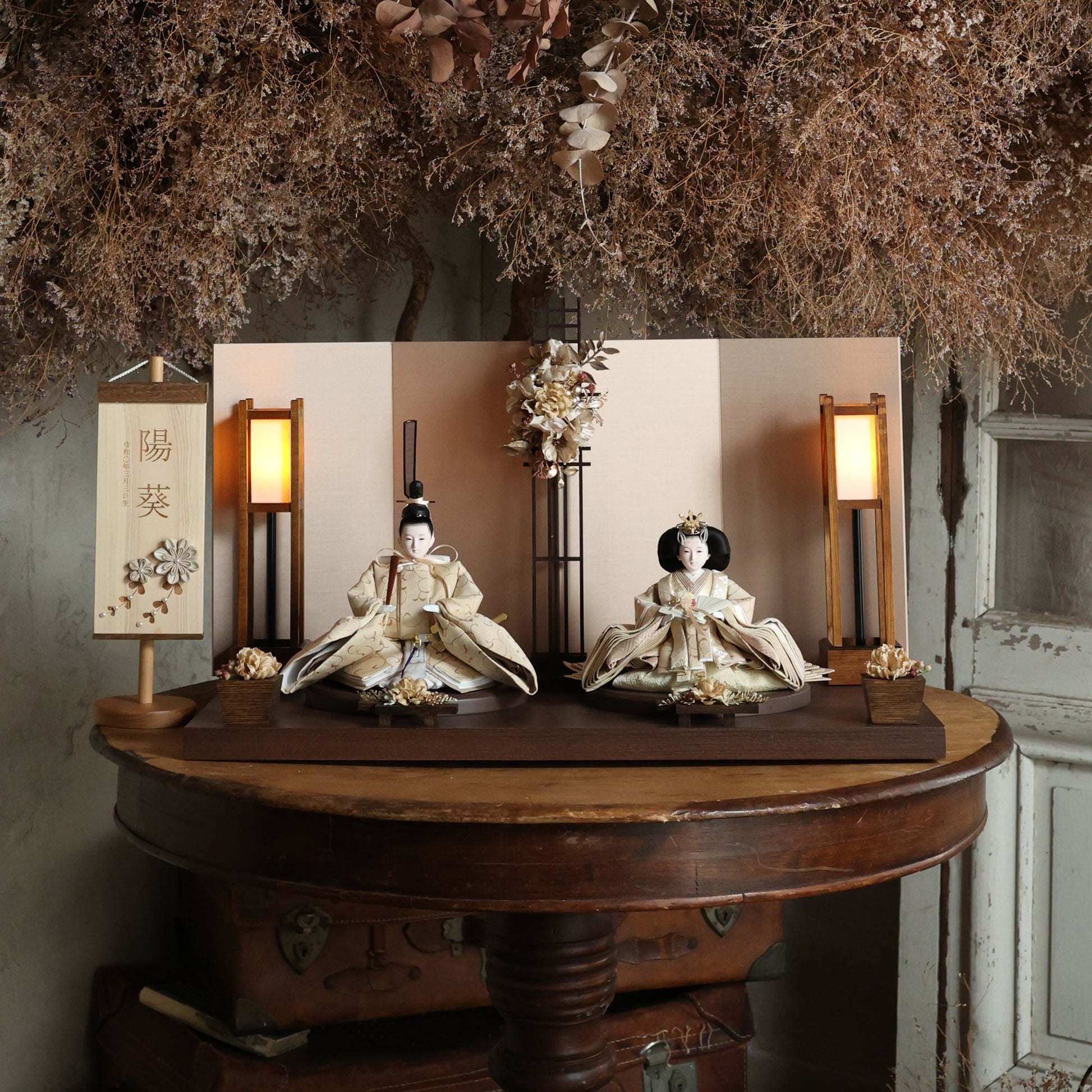 国産の栓(せん)は、美しい木目と温もりある質感が魅力の天然木です。耐久性に優れ、経年とともに味わいを深めます。台座や屏風などに使用することで、自然素材ならではの落ち着いた風合いと上質感を演出し、雛人形全体をより品格ある印象に仕上げます。