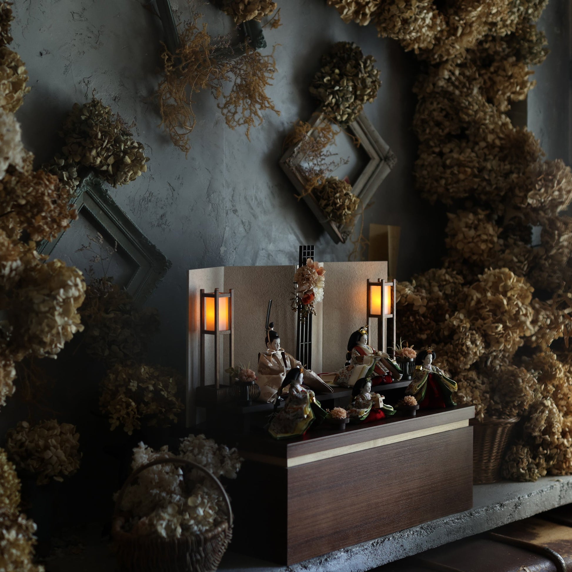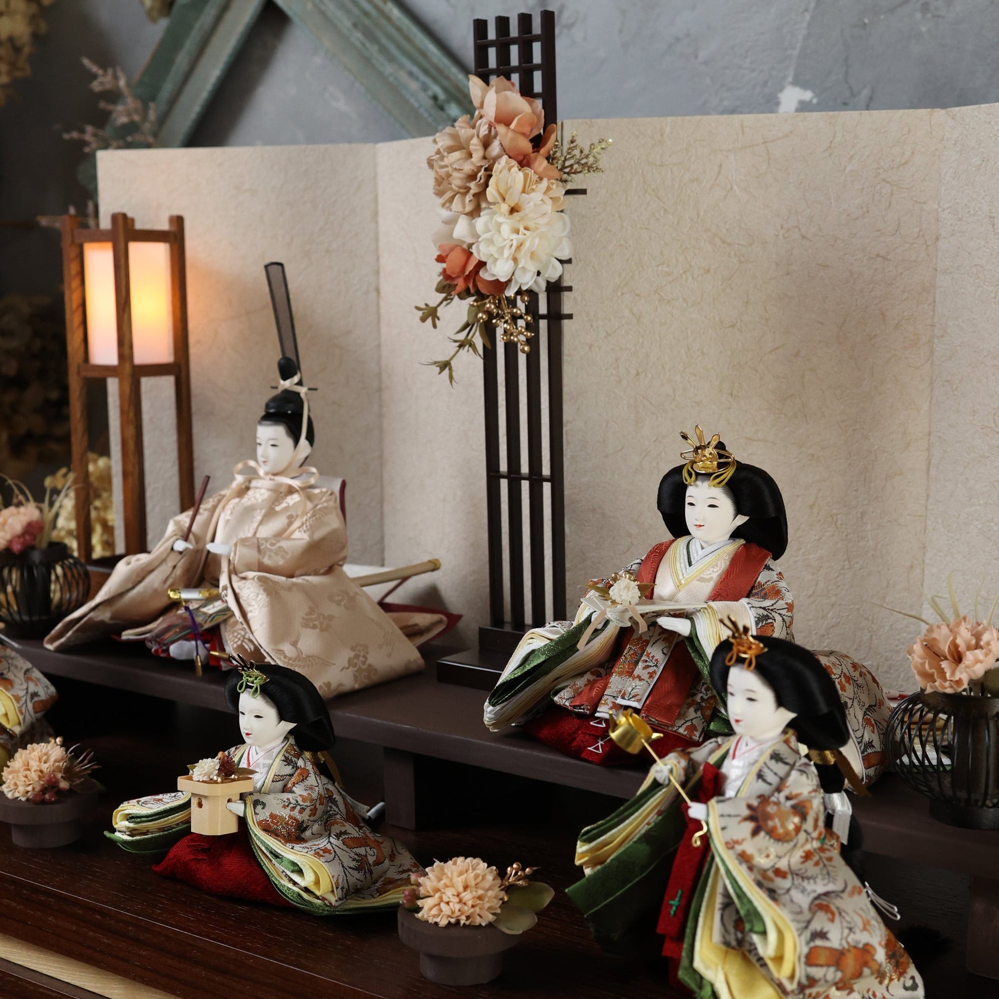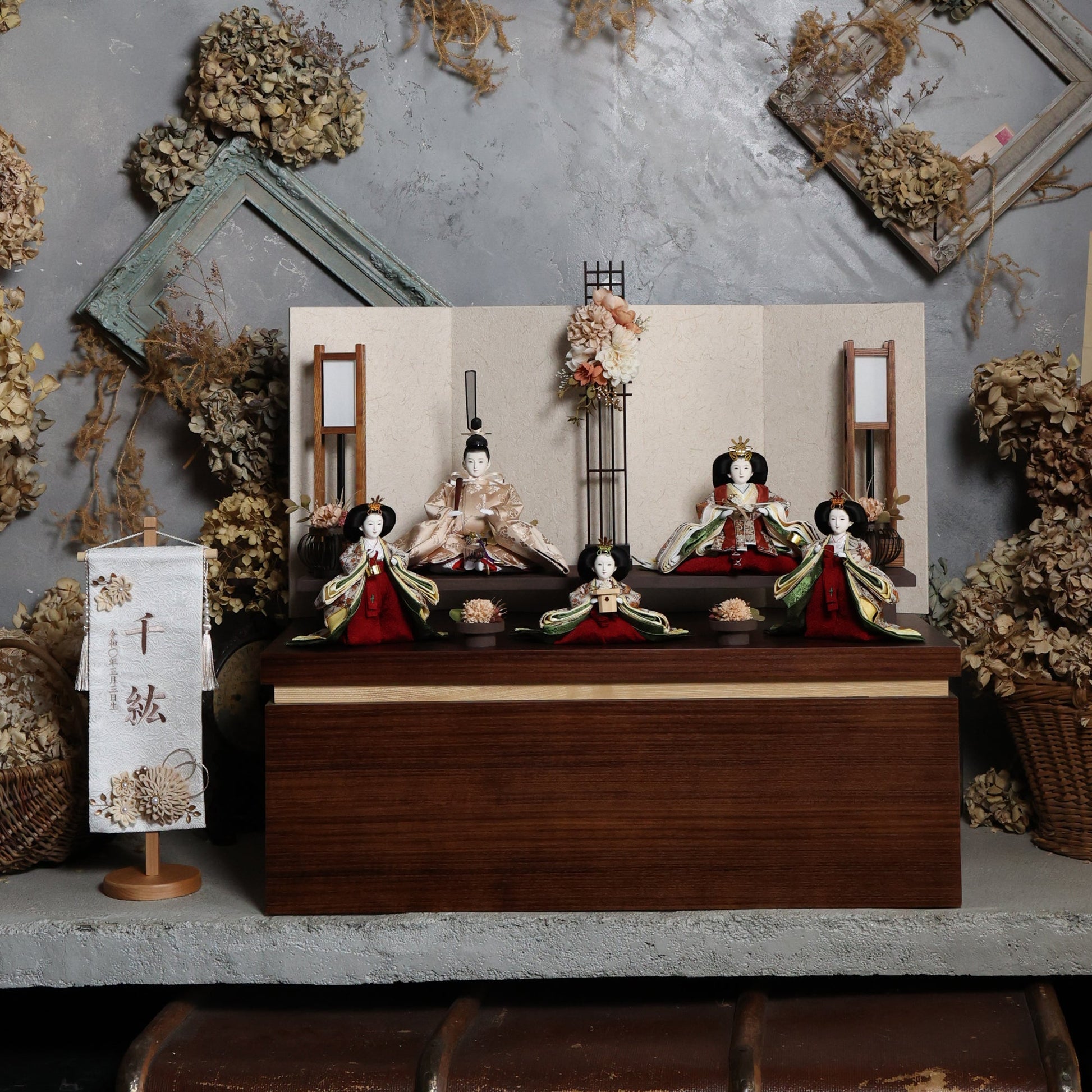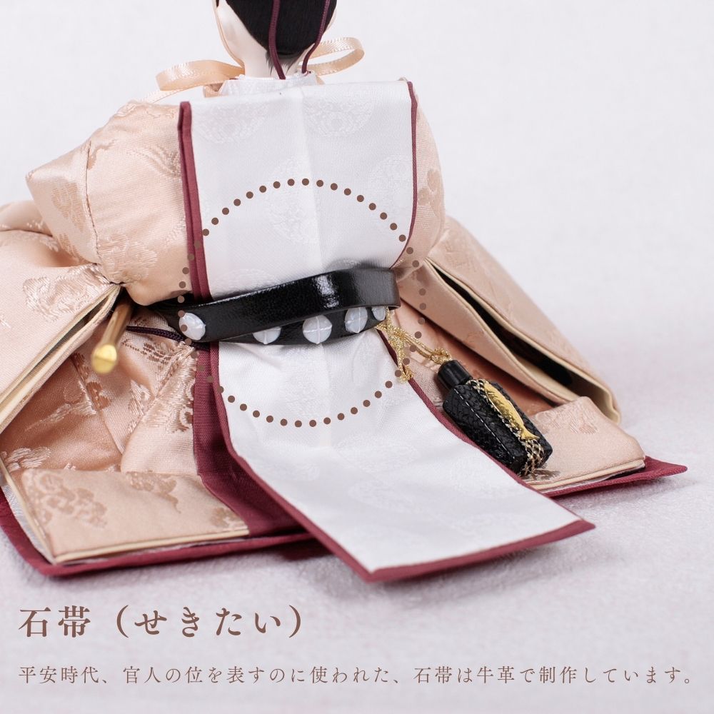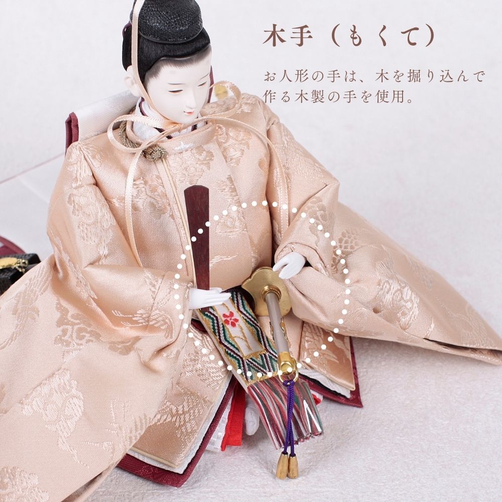 国産の栓(せん)は、美しい木目と温もりある質感が魅力の天然木です。耐久性に優れ、経年とともに味わいを深めます。台座や屏風などに使用することで、自然素材ならではの落ち着いた風合いと上質感を演出し、雛人形全体をより品格ある印象に仕上げます。