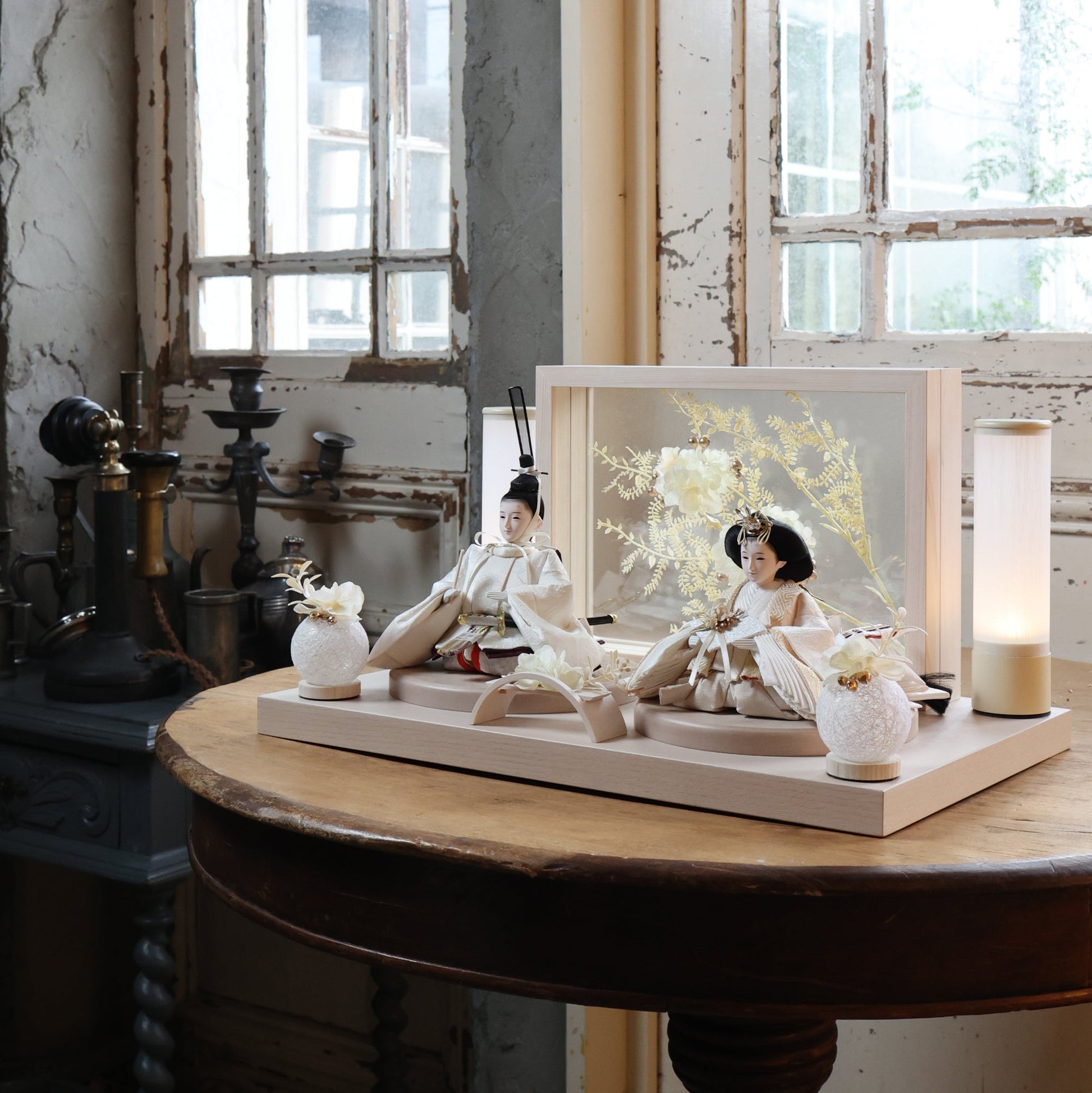 フレームには、純白からやわらかく色づくハイドランジア、優しい光をまとうクリームホワイトのダリア、そして穏やかなぬくもりを添えるブロッサムをあしらいました。白のグラデーションが象徴するのは、無垢な心と新しい門出。ひとつひとつの花が重なり合うように、たくさんの愛に包まれて、やさしくまっすぐに育っていってほしいという願いを込めています。