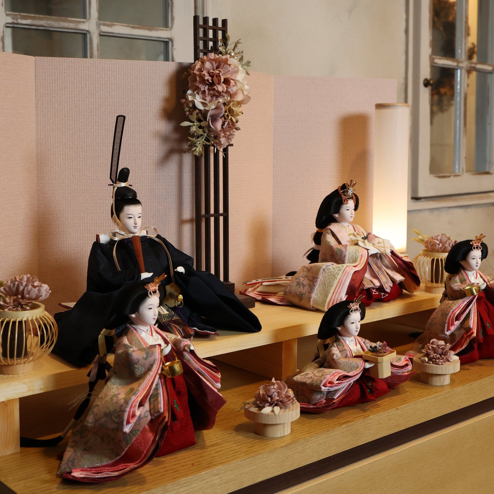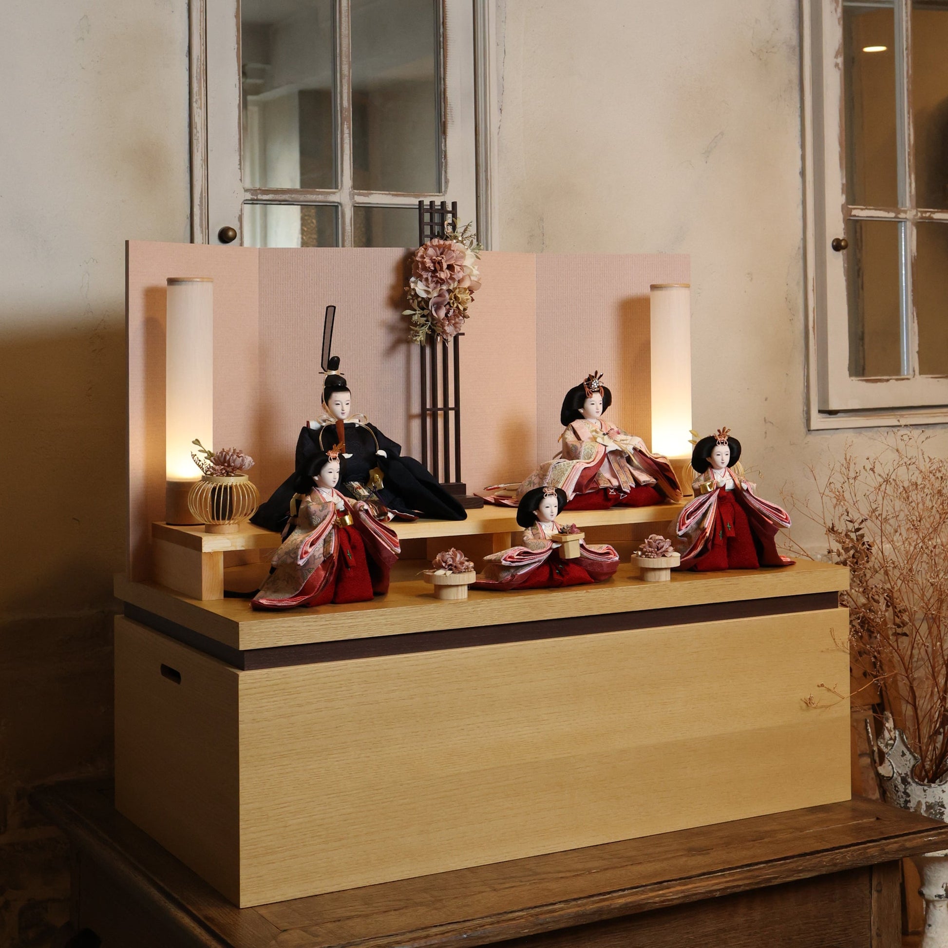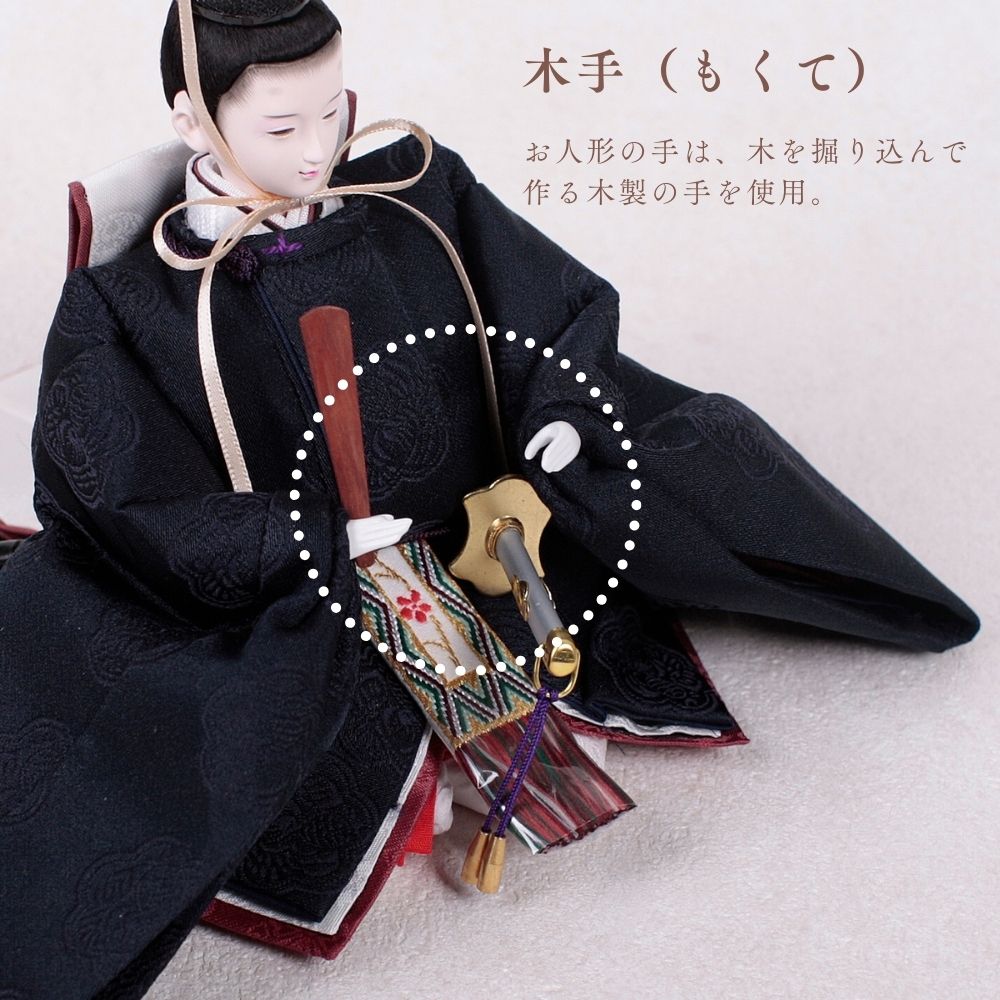 国産の栓(せん)は、美しい木目と温もりある質感が魅力の天然木です。耐久性に優れ、経年とともに味わいを深めます。台座や屏風などに使用することで、自然素材ならではの落ち着いた風合いと上質感を演出し、雛人形全体をより品格ある印象に仕上げます。