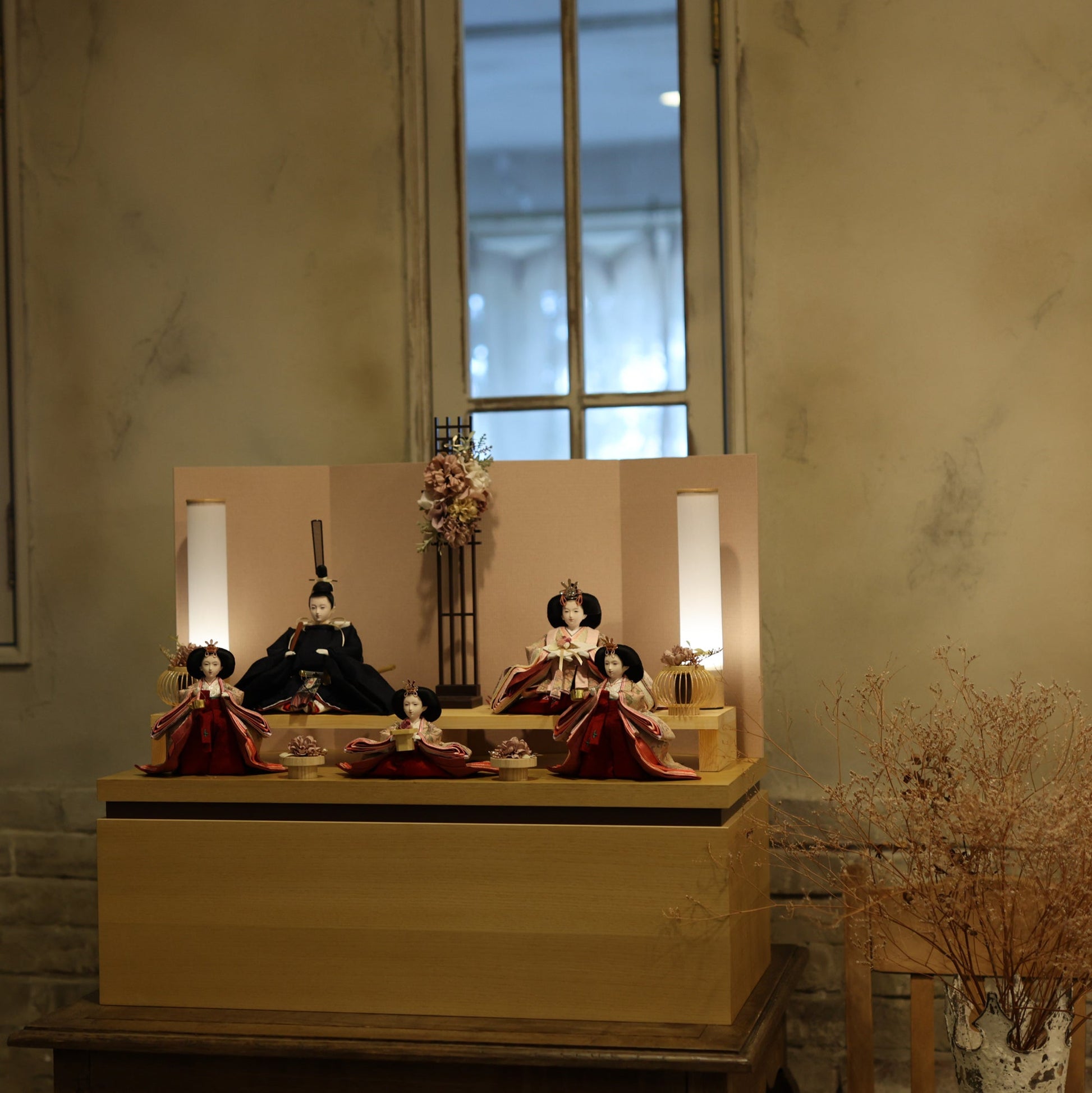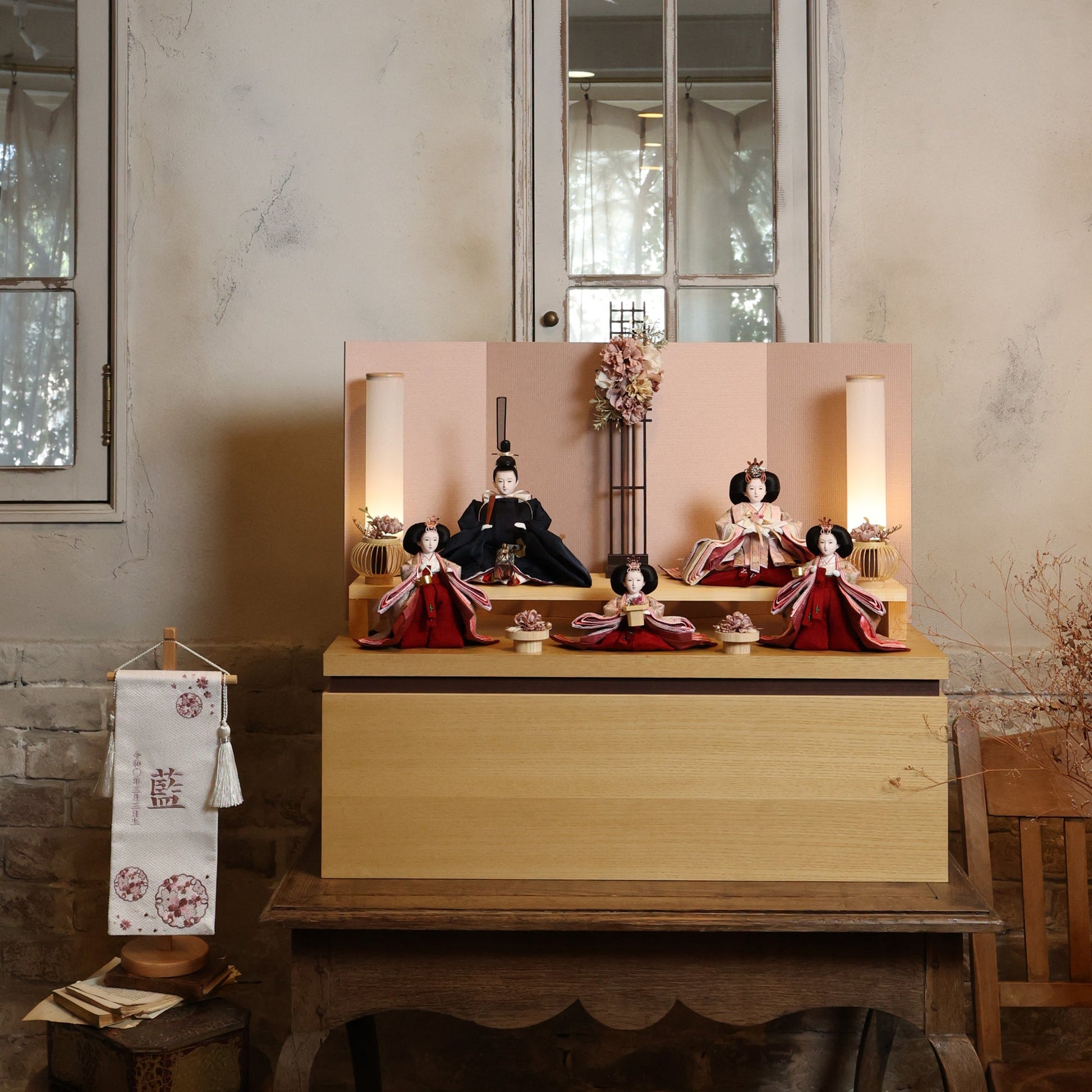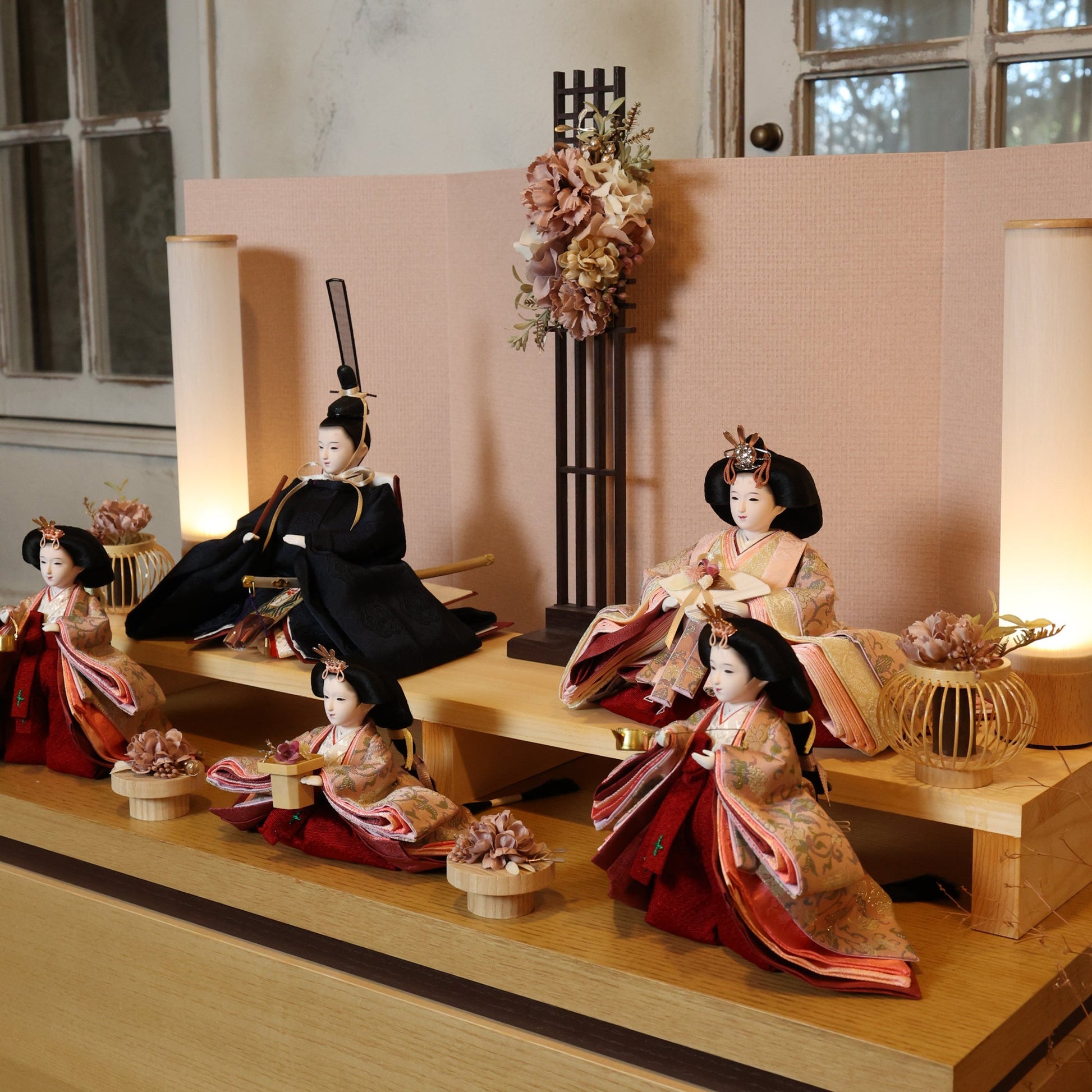 国産の栓(せん)は、美しい木目と温もりある質感が魅力の天然木です。耐久性に優れ、経年とともに味わいを深めます。台座や屏風などに使用することで、自然素材ならではの落ち着いた風合いと上質感を演出し、雛人形全体をより品格ある印象に仕上げます。