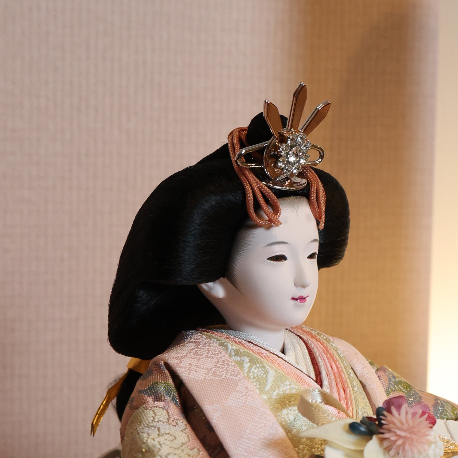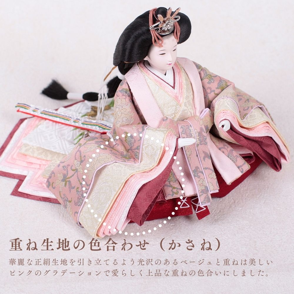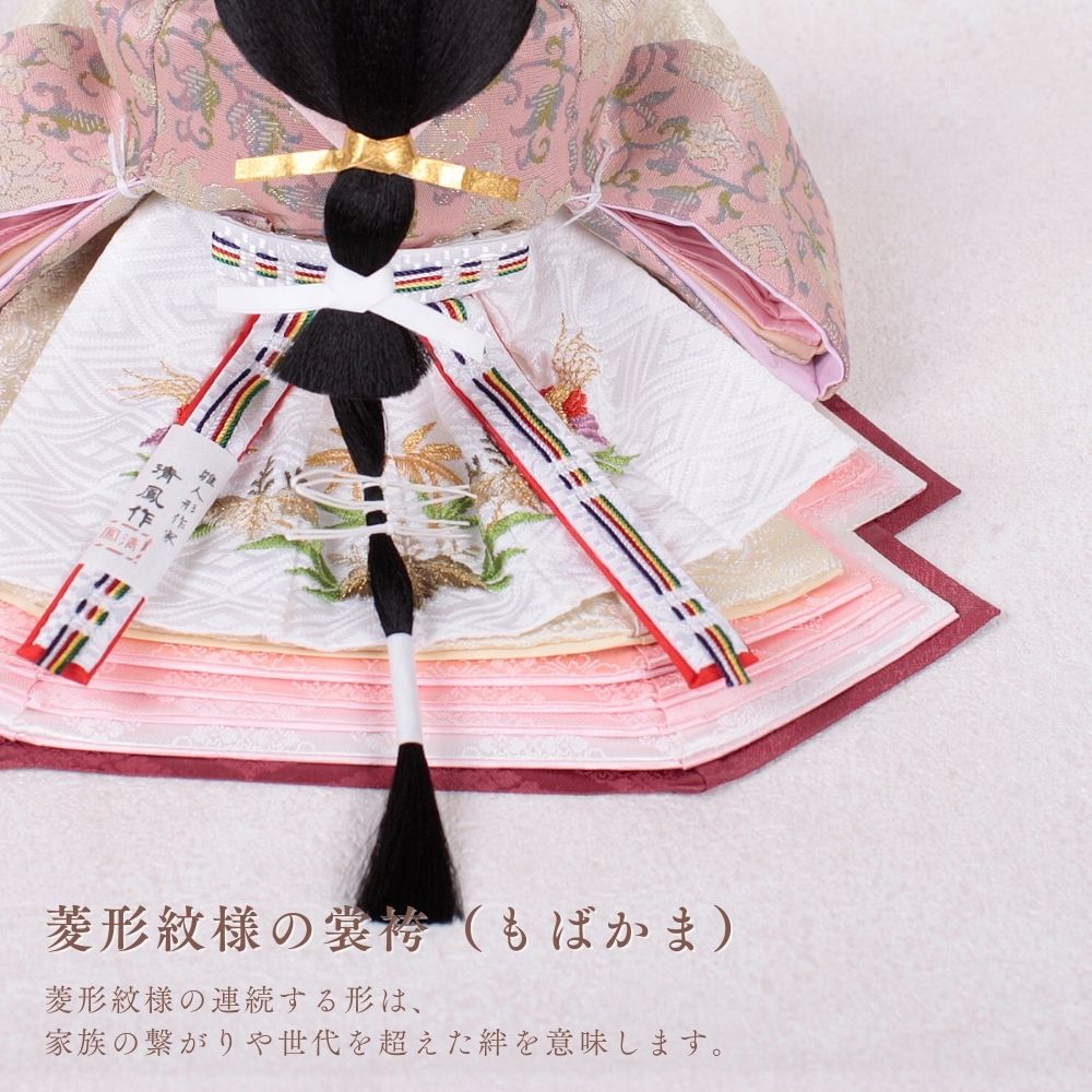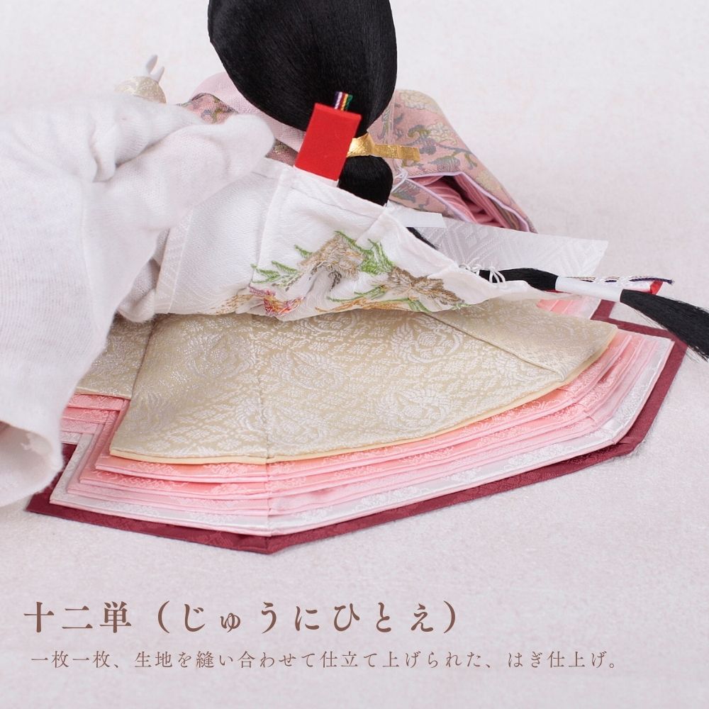 正絹は、100%絹から作られた生地で、「本絹」とも呼ばれます。蚕の繭を原料にし、複雑な工程を経て製造されます。絹糸を織って生地に仕上げることで、独特の光沢と滑らかな質感が生まれ、高級感のあるお人形が完成します。正絹は伝統的な工芸品に広く用いられ、その美しさが際立っています。