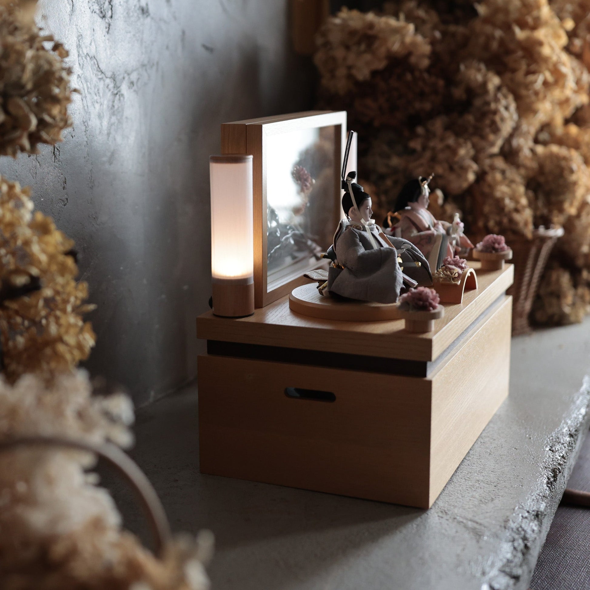 国産の栓(せん)は、美しい木目と温もりある質感が魅力の天然木です。耐久性に優れ、経年とともに味わいを深めます。台座や屏風などに使用することで、自然素材ならではの落ち着いた風合いと上質感を演出し、雛人形全体をより品格ある印象に仕上げます。