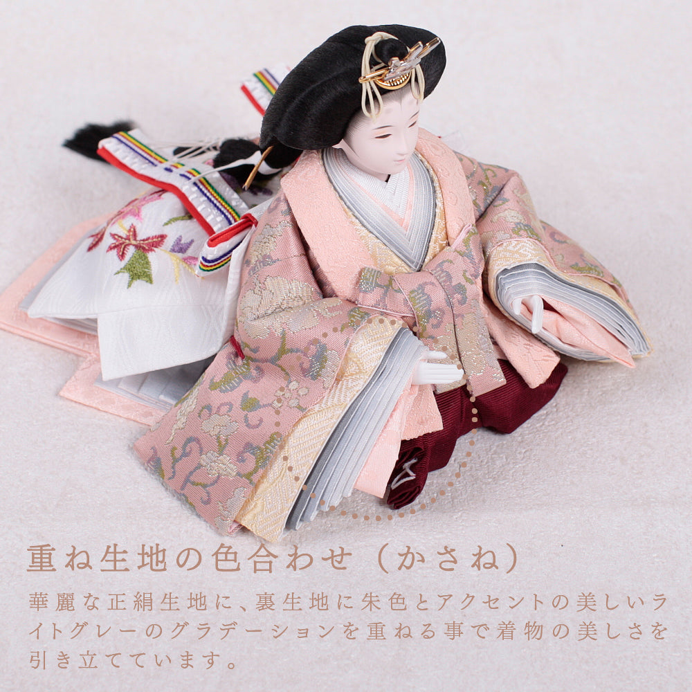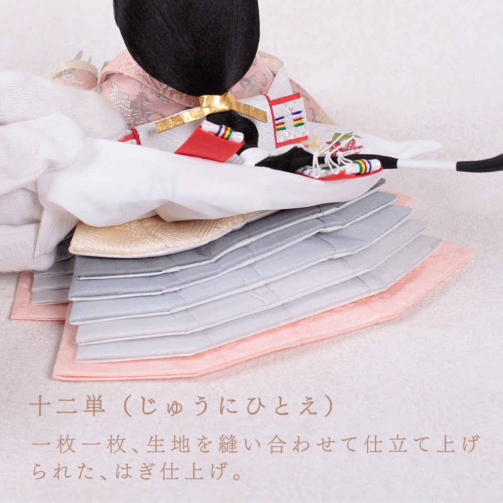 正絹は、100%絹から作られた生地で、「本絹」とも呼ばれます。蚕の繭を原料にし、複雑な工程を経て製造されます。絹糸を織って生地に仕上げることで、独特の光沢と滑らかな質感が生まれ、高級感のあるお人形が完成します。正絹は伝統的な工芸品に広く用いられ、その美しさが際立っています。