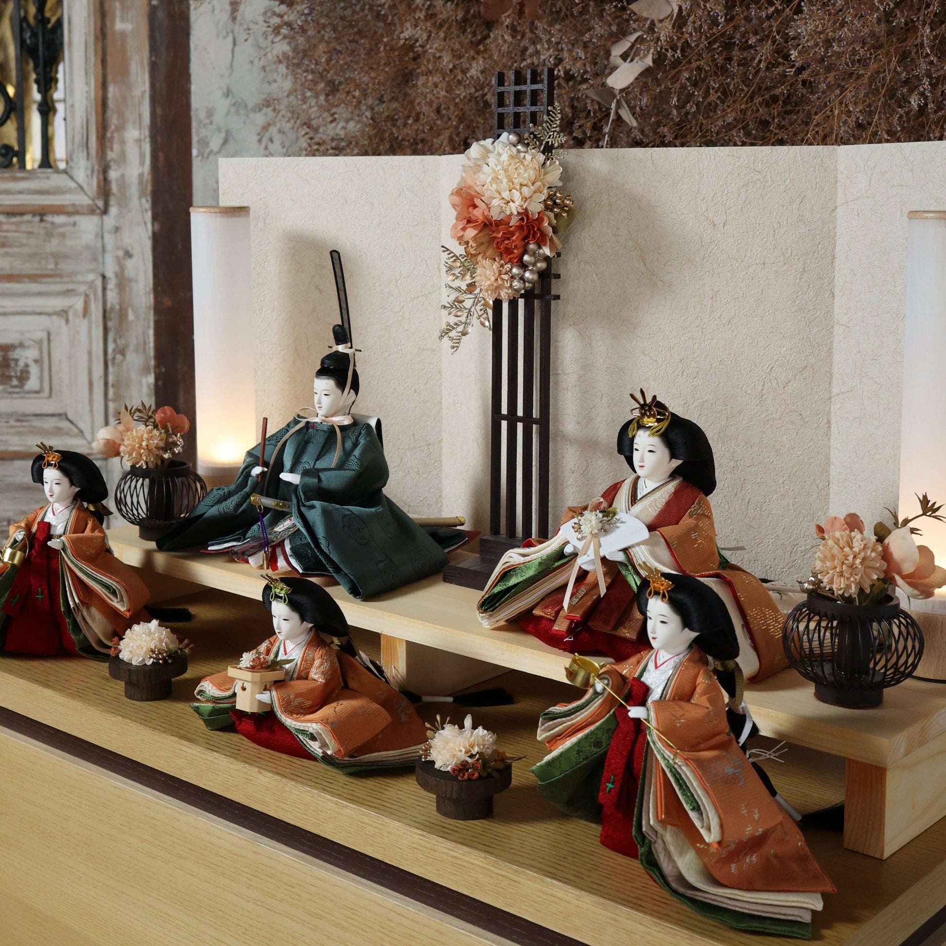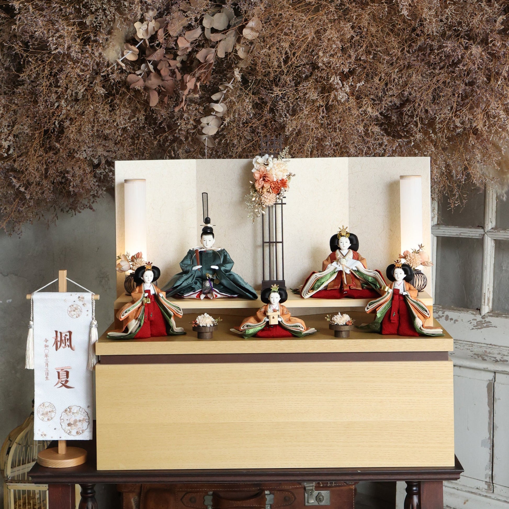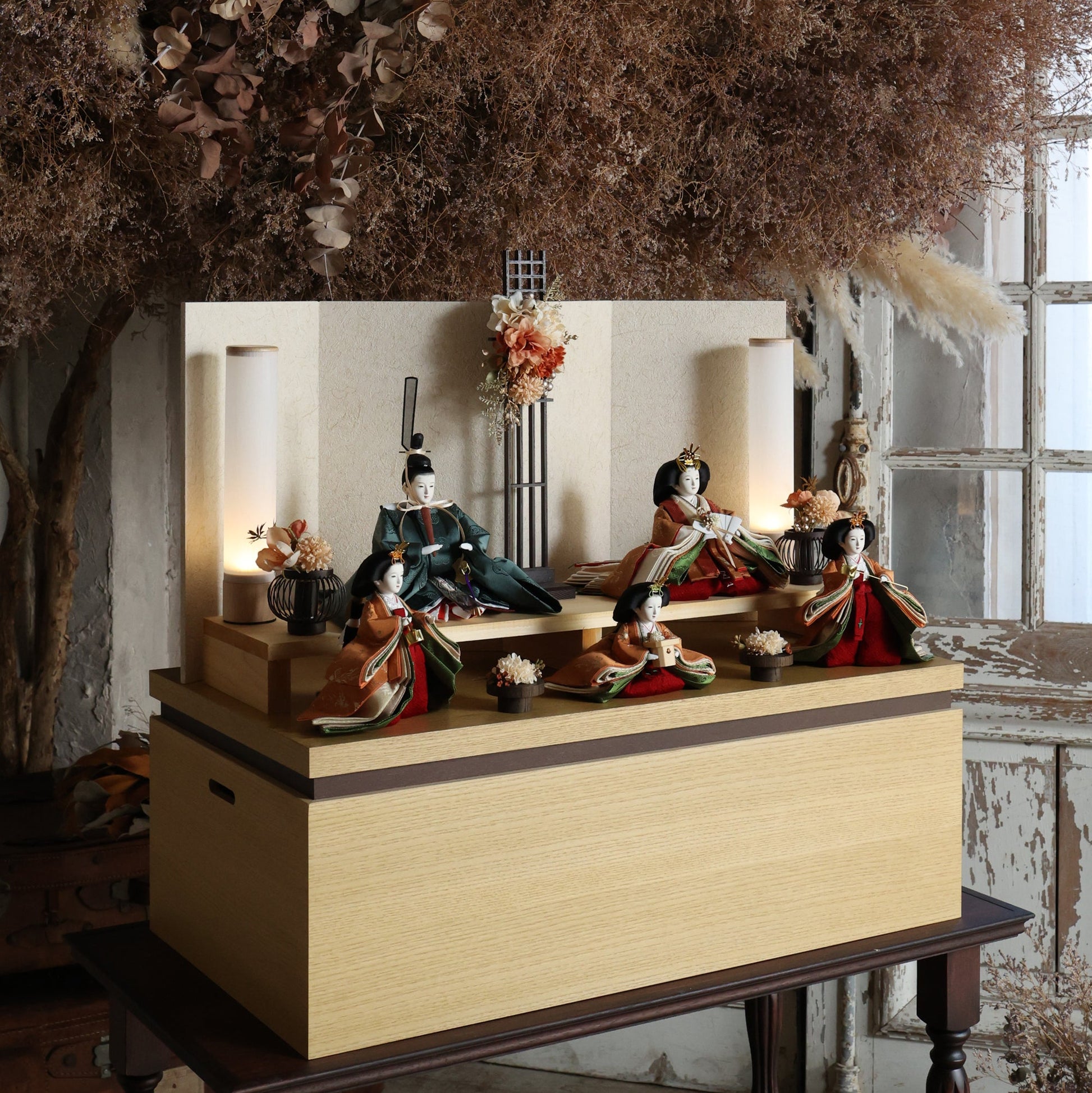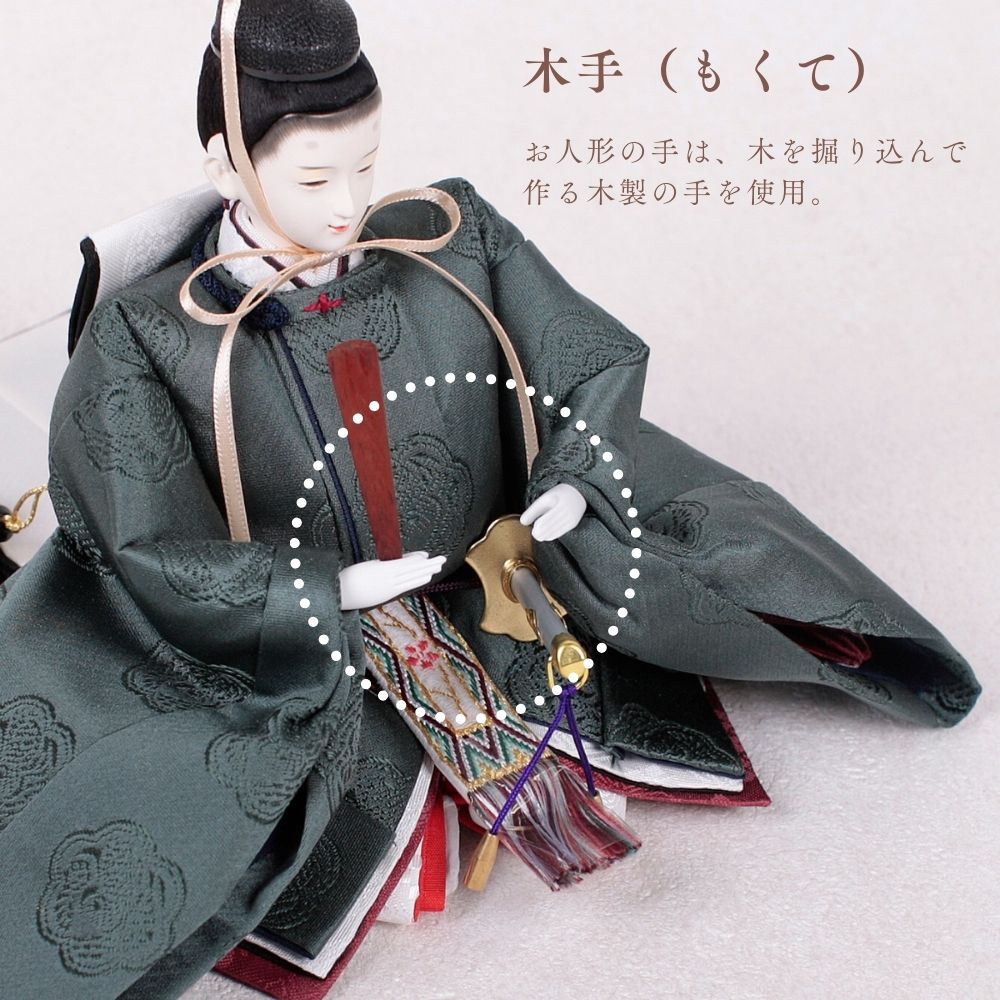 国産の栓(せん)は、美しい木目と温もりある質感が魅力の天然木です。耐久性に優れ、経年とともに味わいを深めます。台座や屏風などに使用することで、自然素材ならではの落ち着いた風合いと上質感を演出し、雛人形全体をより品格ある印象に仕上げます。