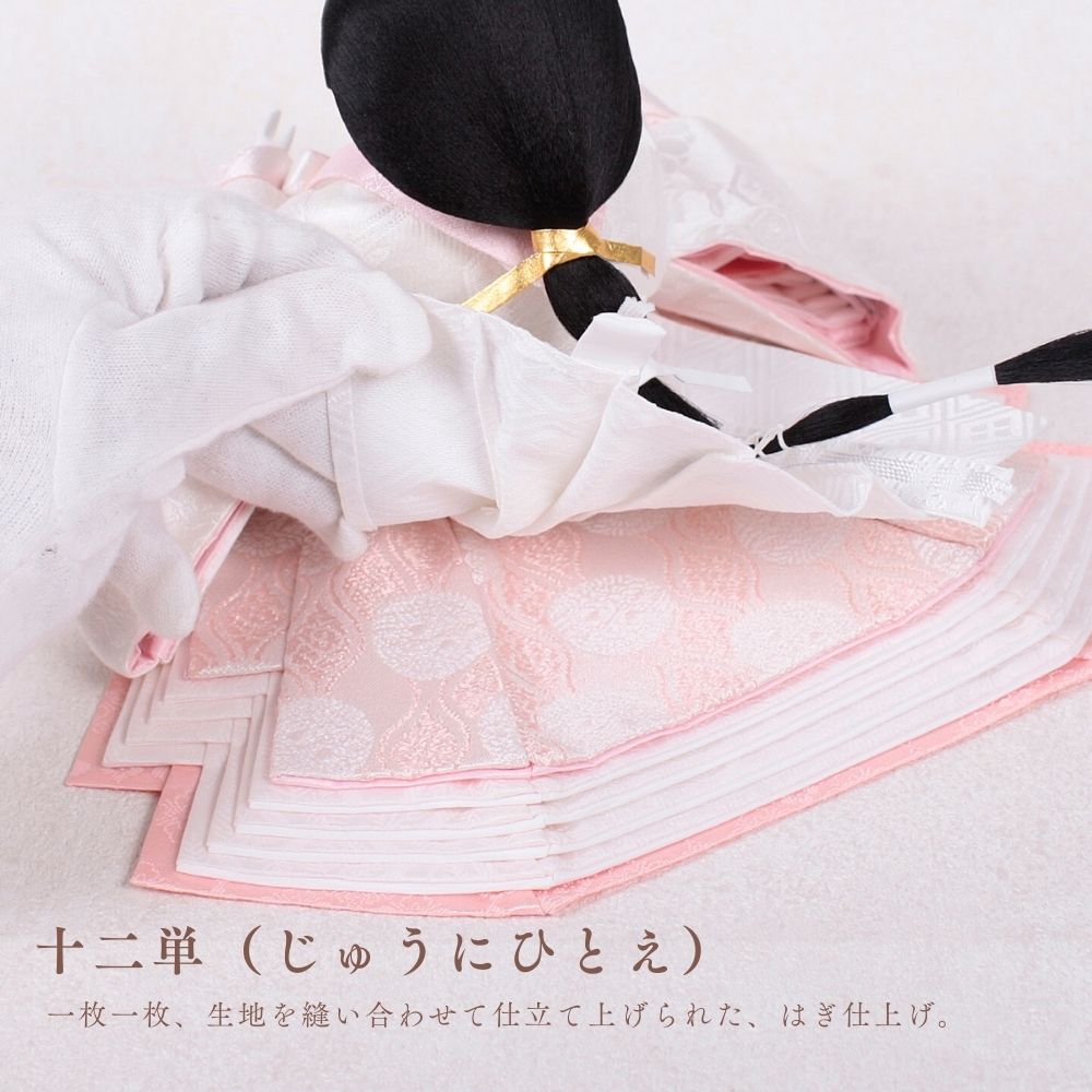 正絹は、100%絹から作られた生地で、「本絹」とも呼ばれます。蚕の繭を原料にし、複雑な工程を経て製造されます。絹糸を織って生地に仕上げることで、独特の光沢と滑らかな質感が生まれ、高級感のあるお人形が完成します。正絹は伝統的な工芸品に広く用いられ、その美しさが際立っています。