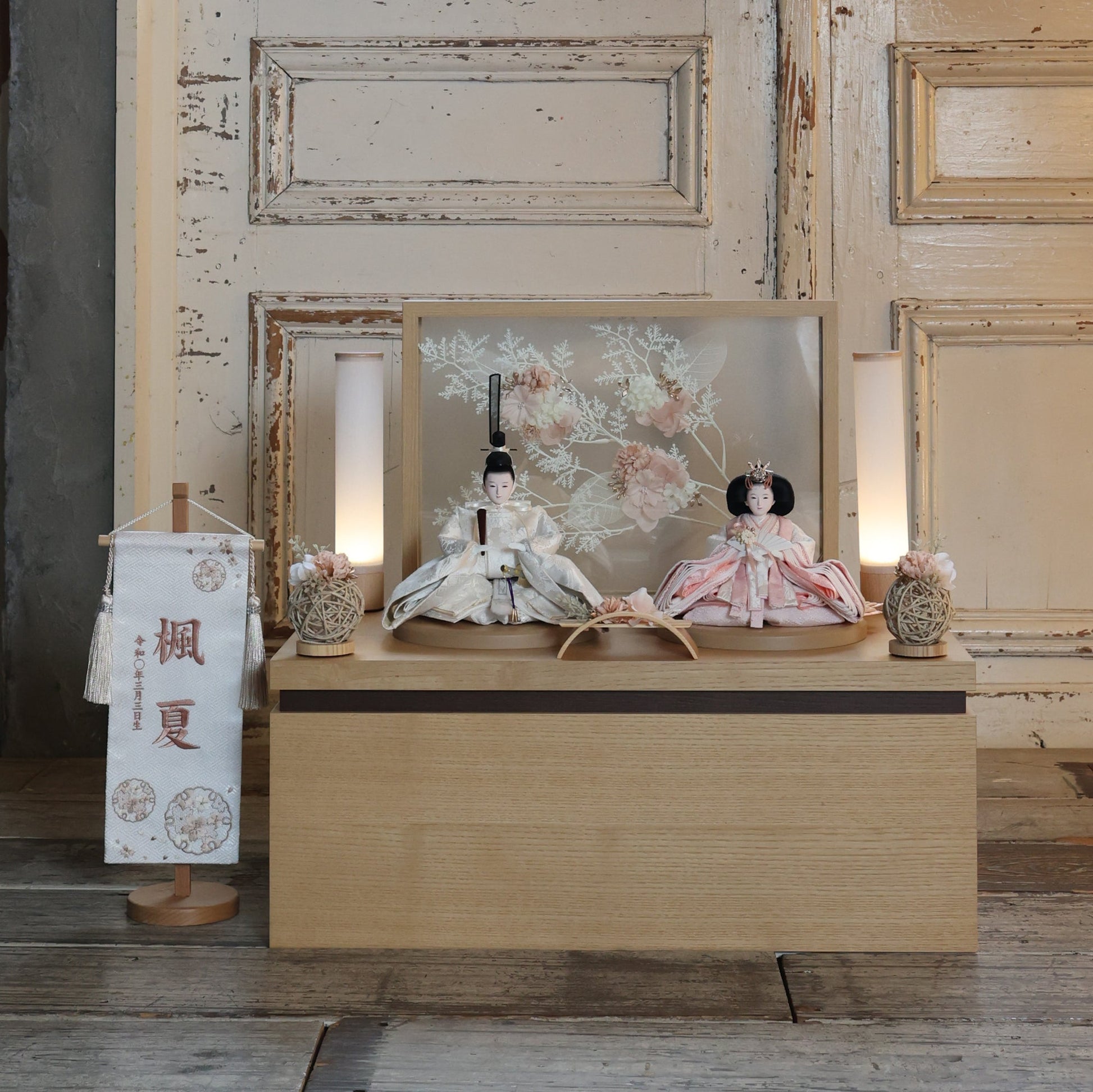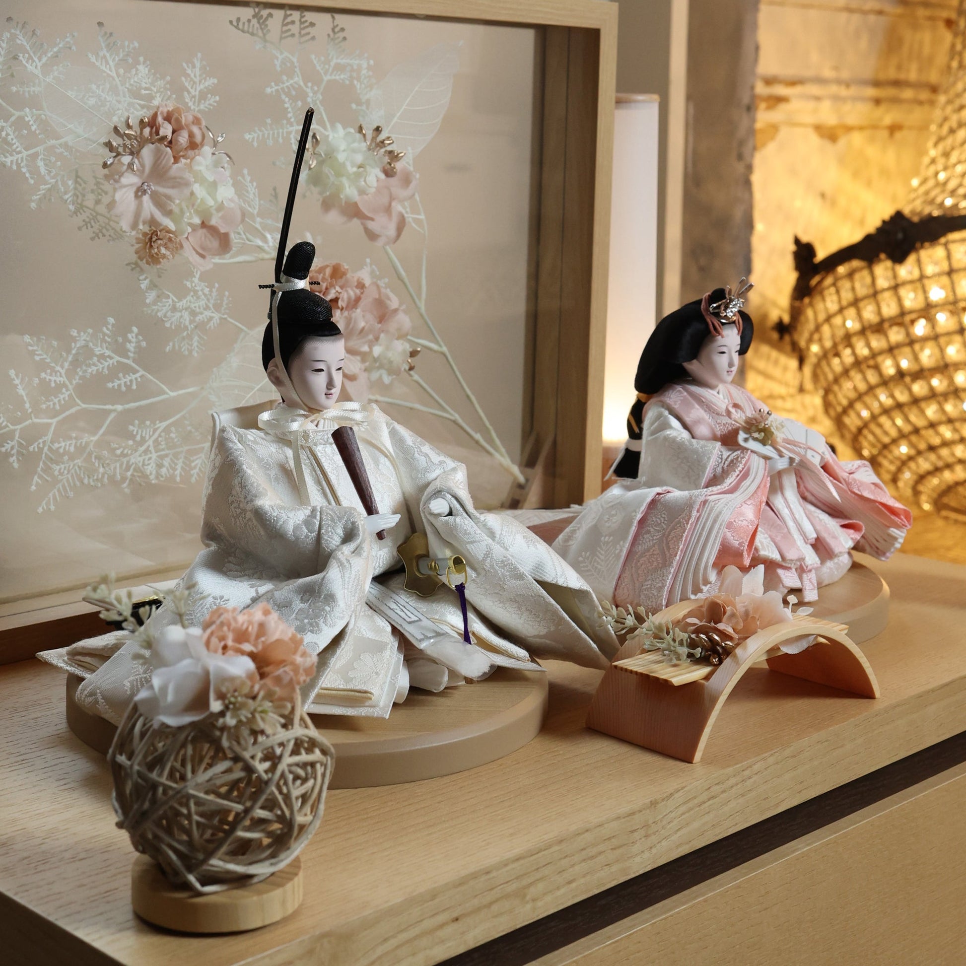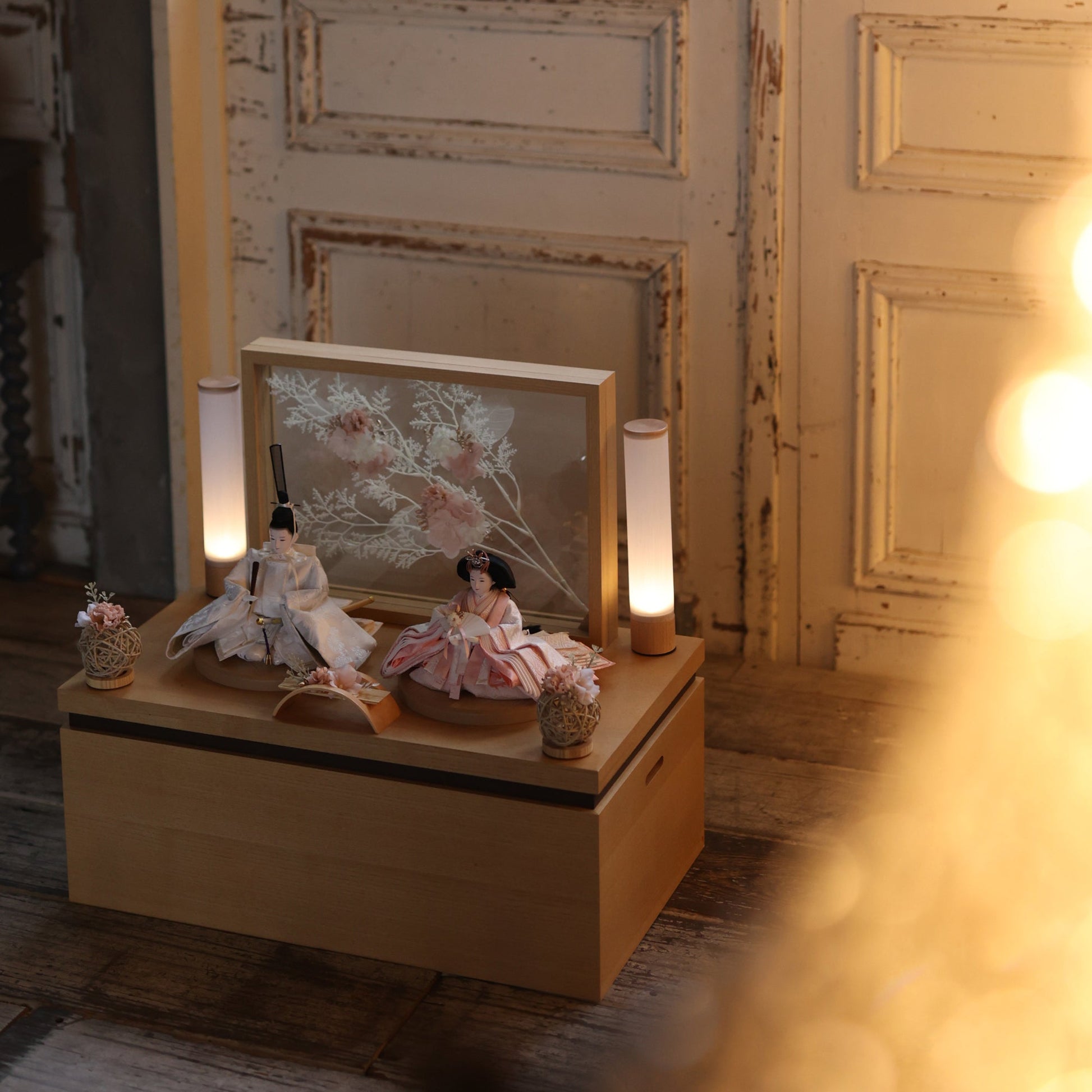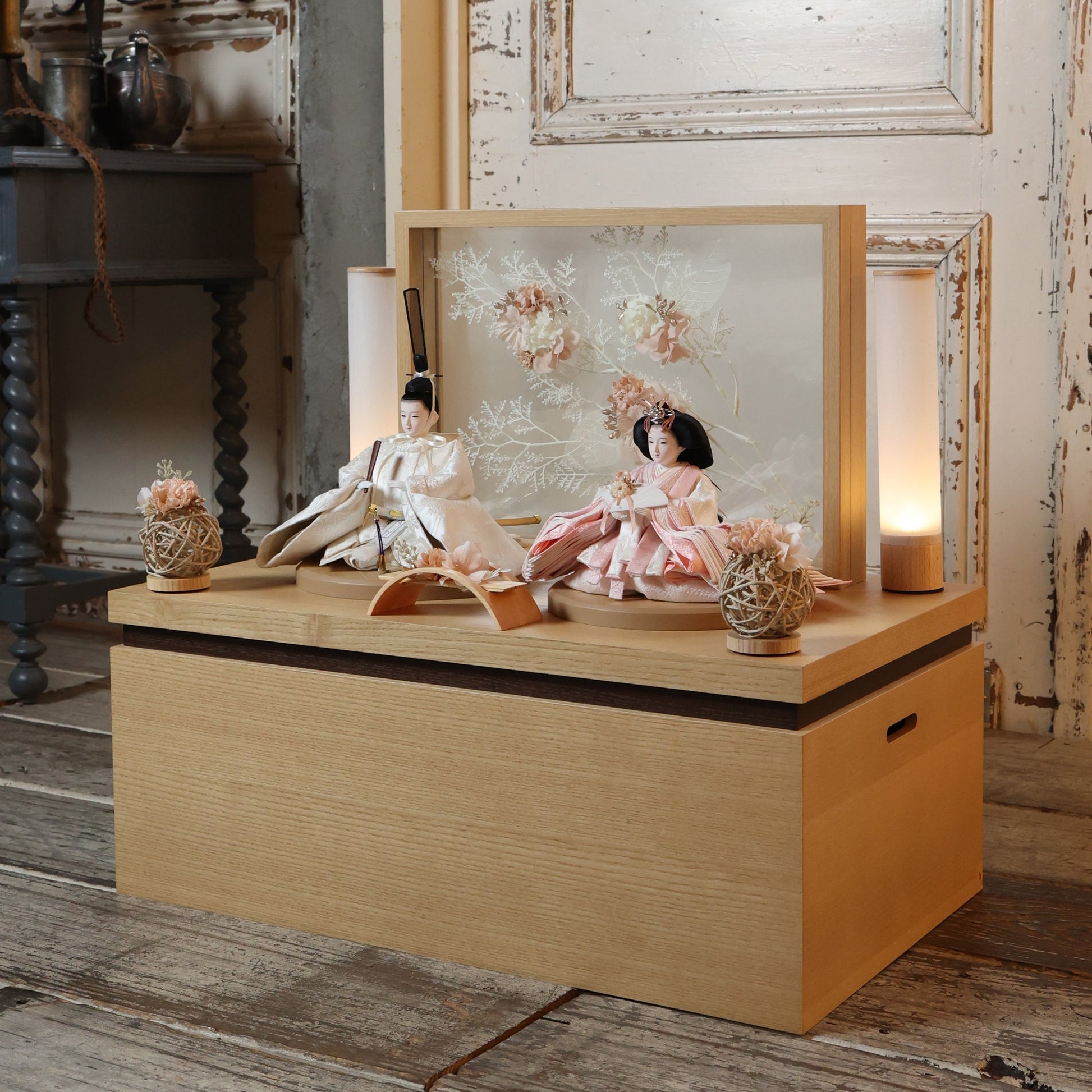 国産の栓(せん)は、美しい木目と温もりある質感が魅力の天然木です。耐久性に優れ、経年とともに味わいを深めます。台座や屏風などに使用することで、自然素材ならではの落ち着いた風合いと上質感を演出し、雛人形全体をより品格ある印象に仕上げます。