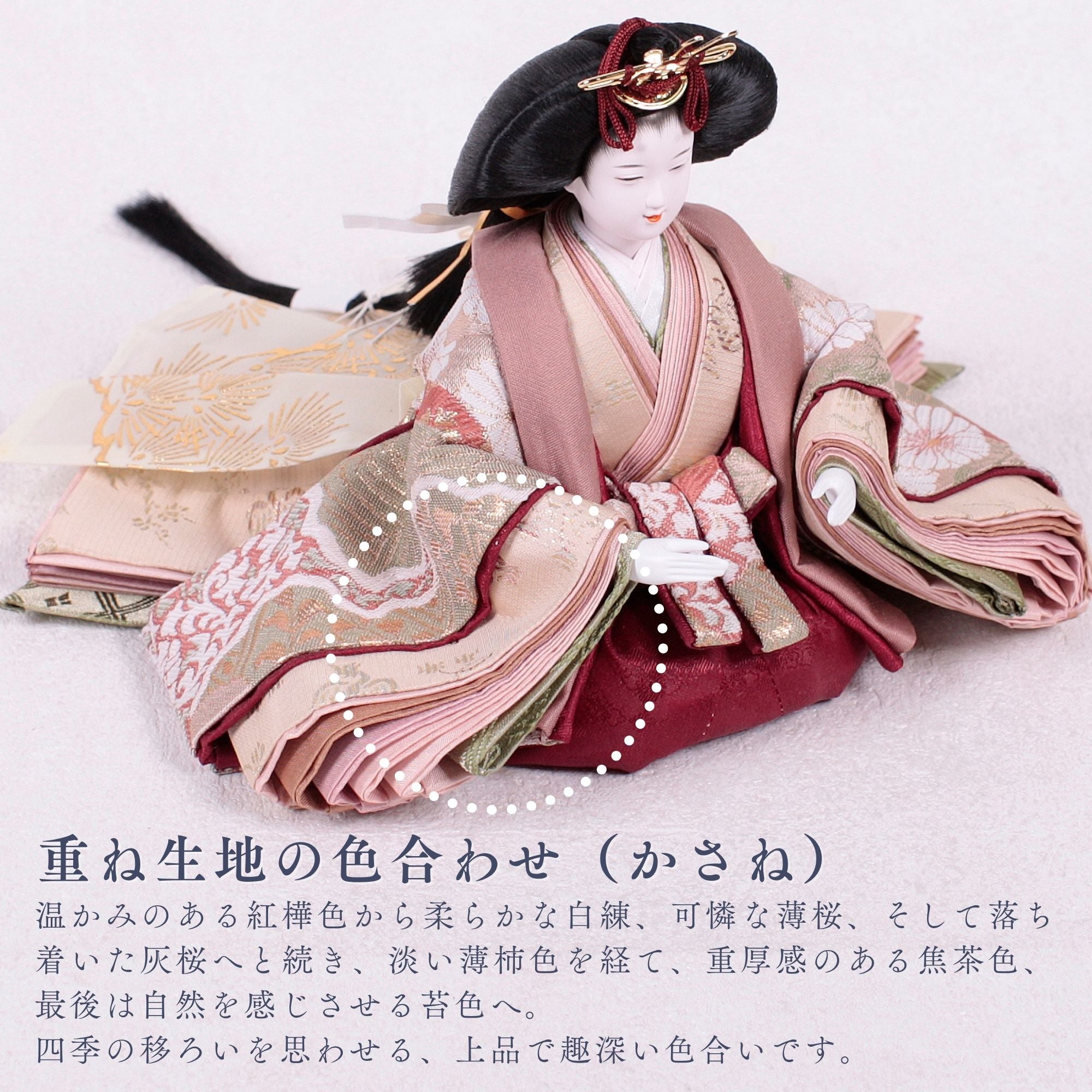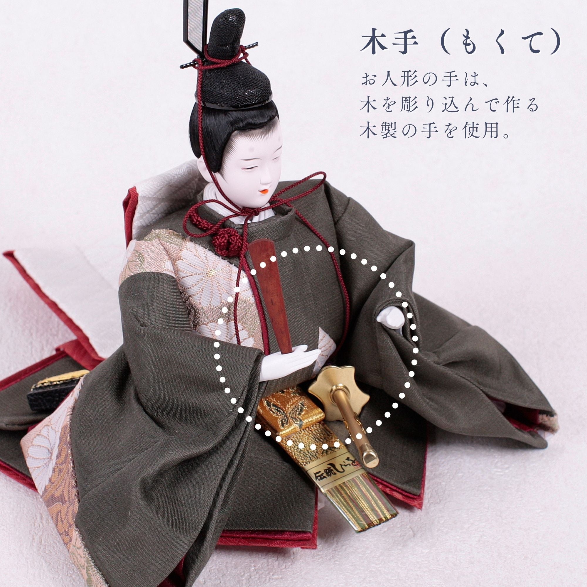 国産の栓(せん)は、美しい木目と温もりある質感が魅力の天然木です。耐久性に優れ、経年とともに味わいを深めます。台座や屏風などに使用することで、自然素材ならではの落ち着いた風合いと上質感を演出し、雛人形全体をより品格ある印象に仕上げます。