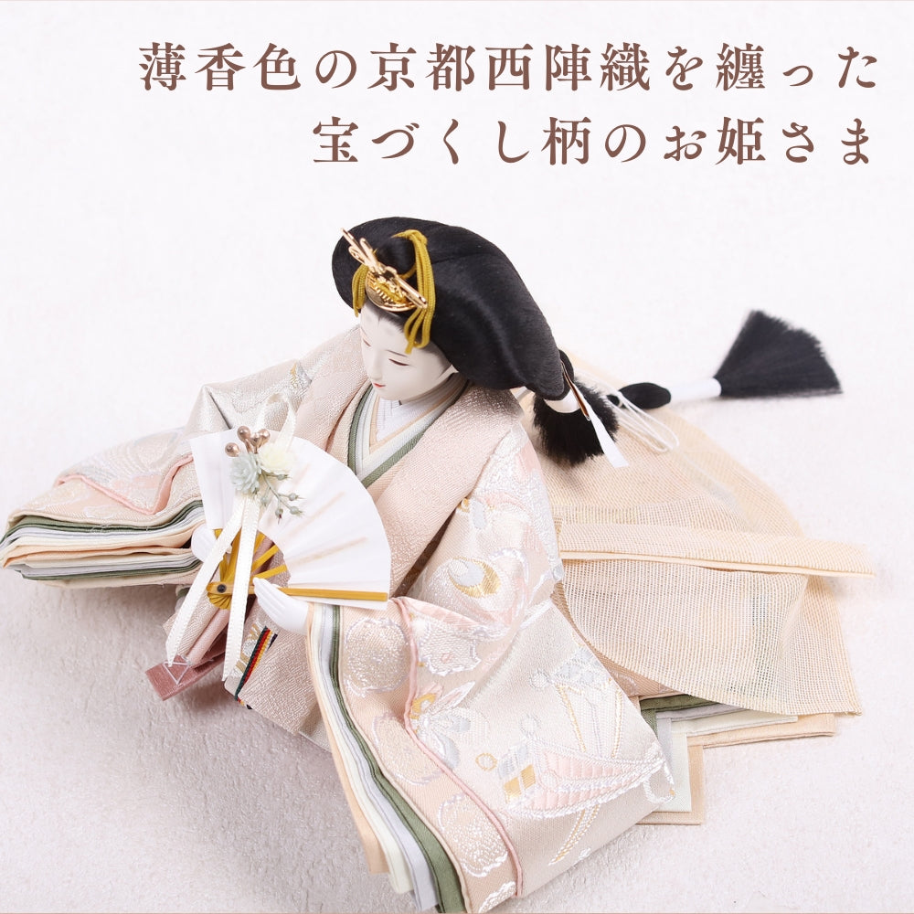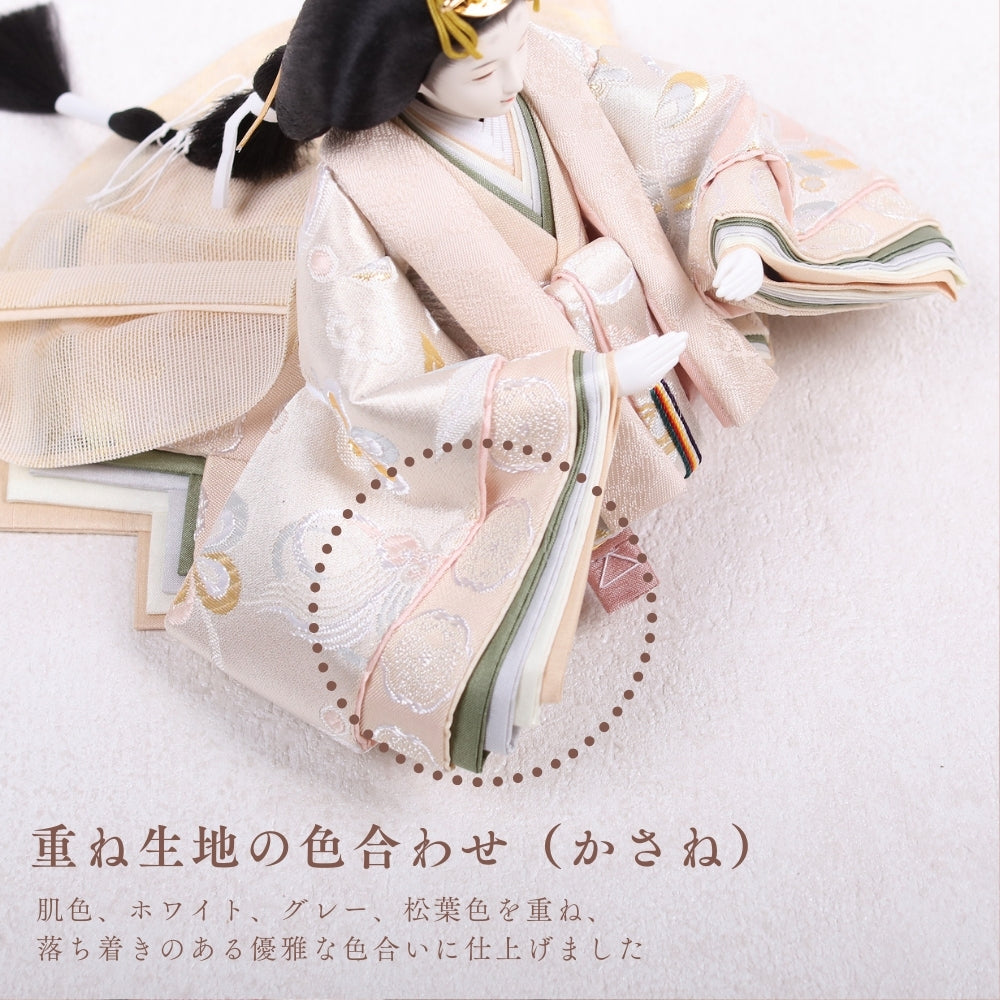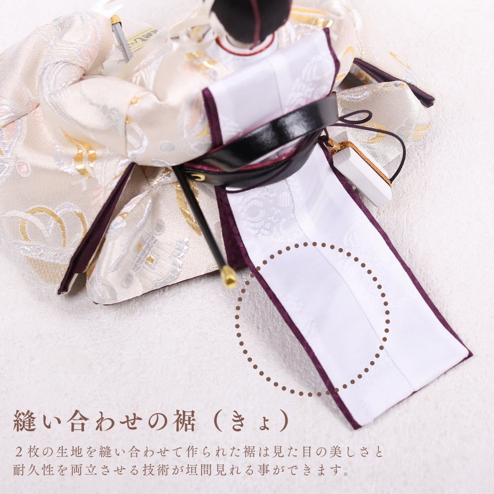 国産の栓(せん)は、美しい木目と温もりある質感が魅力の天然木です。耐久性に優れ、経年とともに味わいを深めます。台座や屏風などに使用することで、自然素材ならではの落ち着いた風合いと上質感を演出し、雛人形全体をより品格ある印象に仕上げます。
