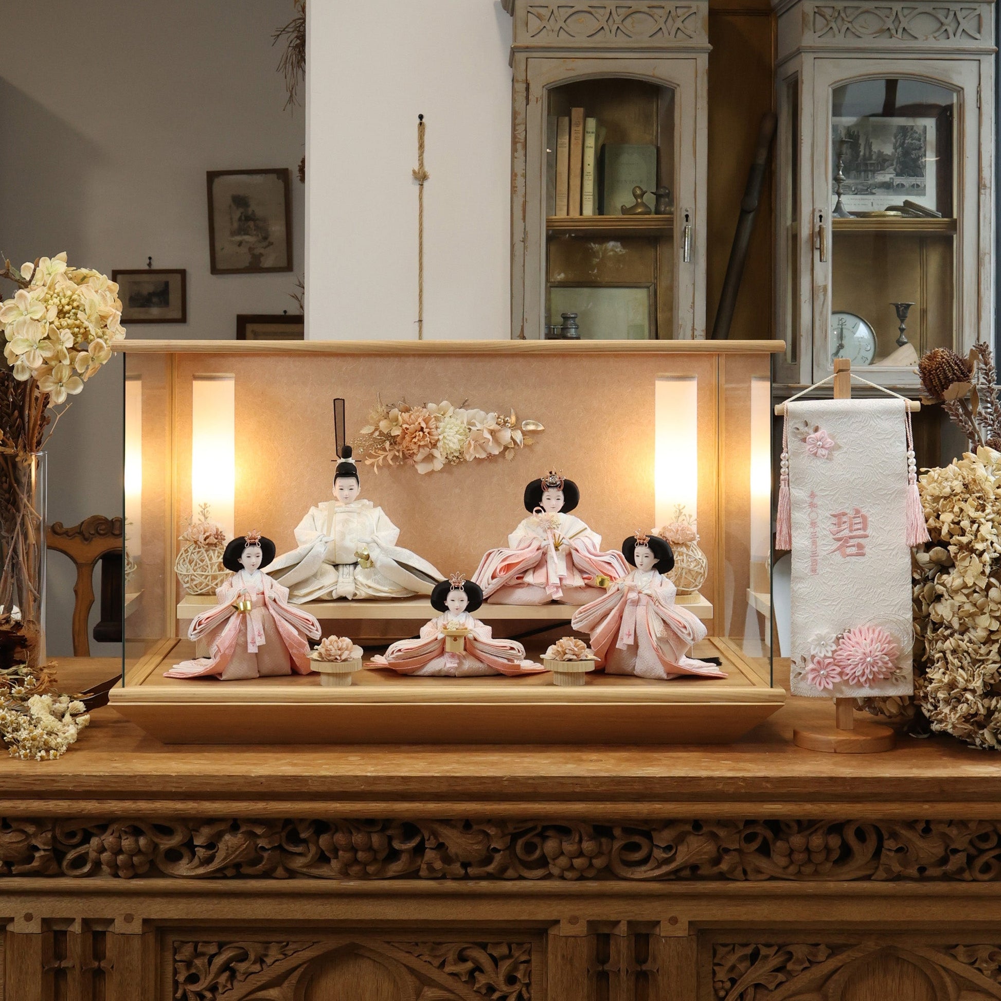 通常2mm厚が一般的な中、当店ではより高品質なAGC製3mmガラスを採用しています。厚みが増すことで強度と安全性が高まり、透明度の高いクリアな美しさを保ちます。大切な雛人形を守りながら、高級感のある見栄えを実現しています。