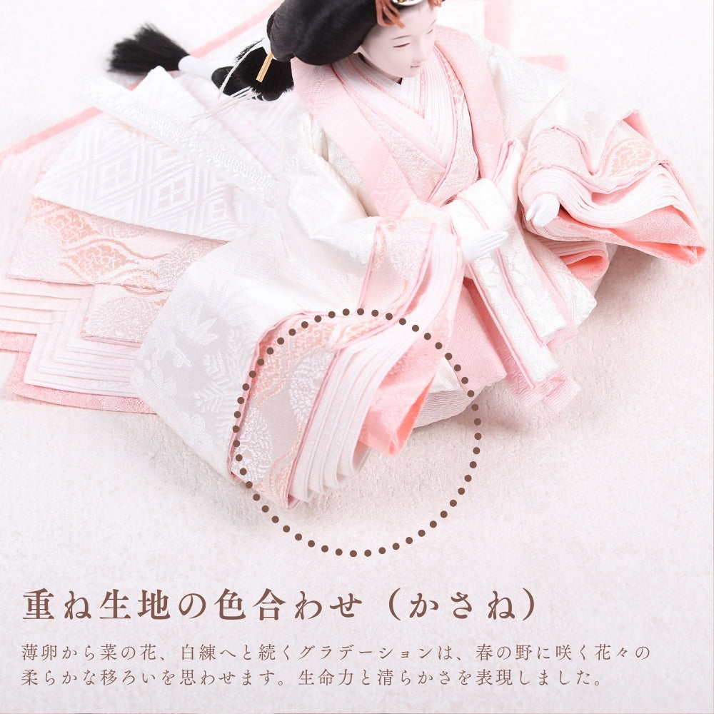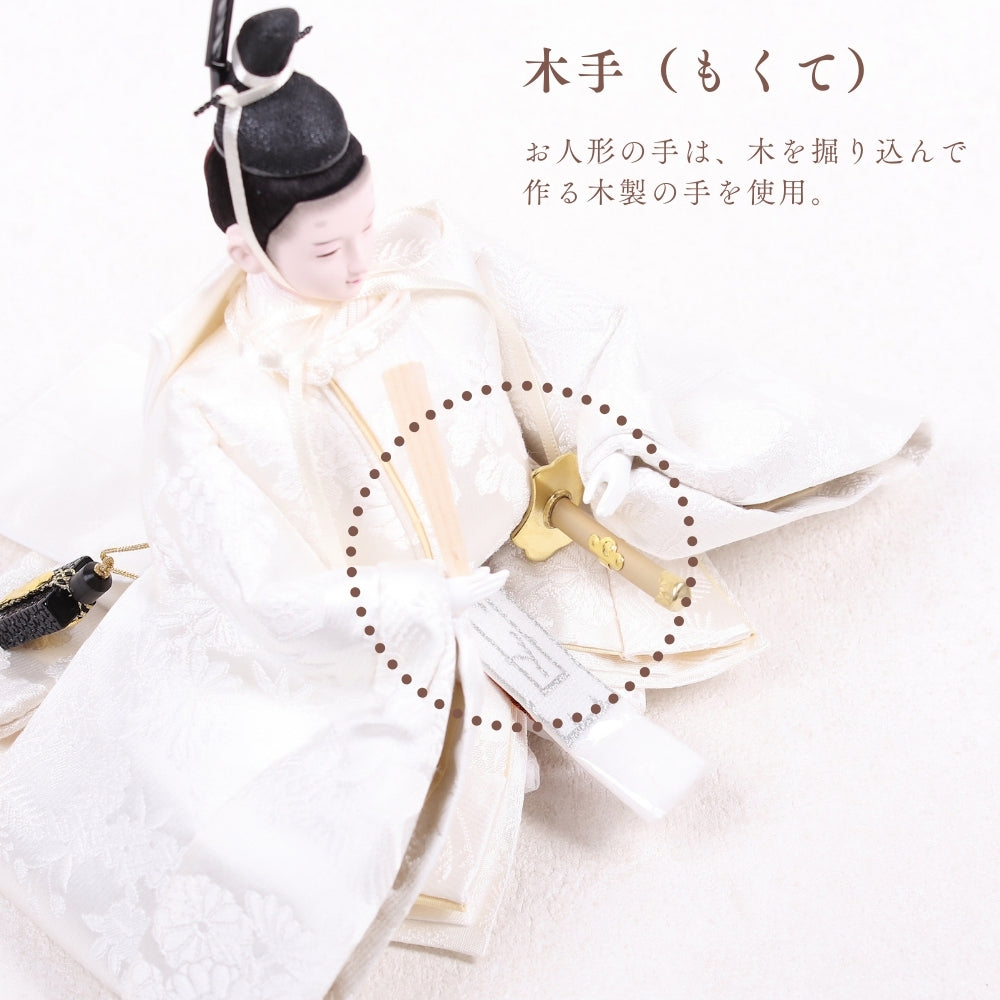 国産の栓(せん)は、美しい木目と温もりある質感が魅力の天然木です。耐久性に優れ、経年とともに味わいを深めます。台座や屏風などに使用することで、自然素材ならではの落ち着いた風合いと上質感を演出し、雛人形全体をより品格ある印象に仕上げます。