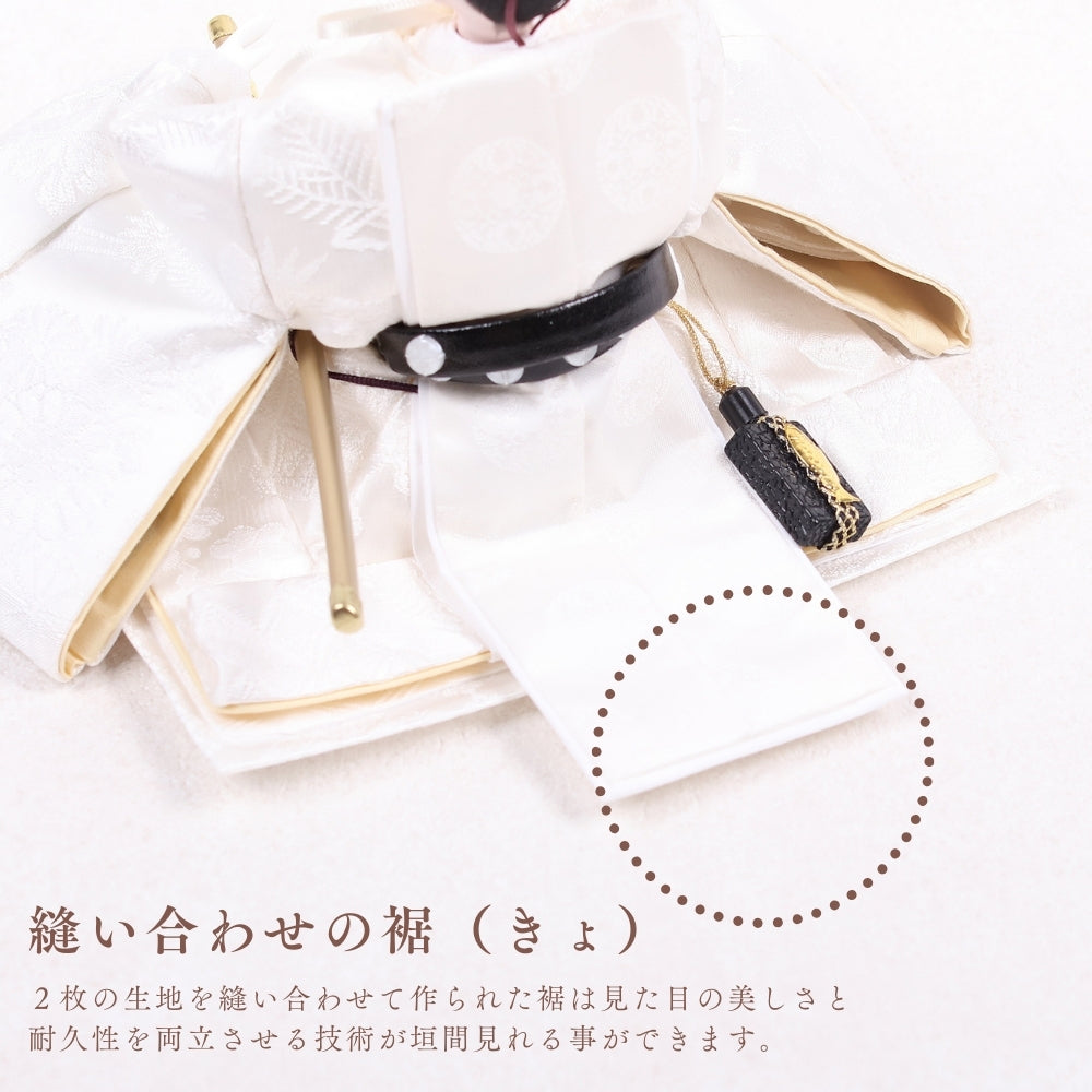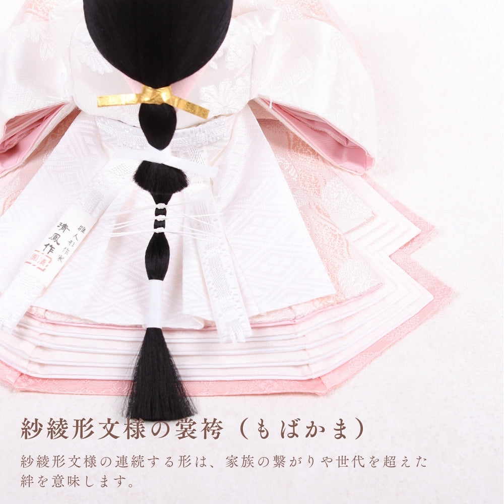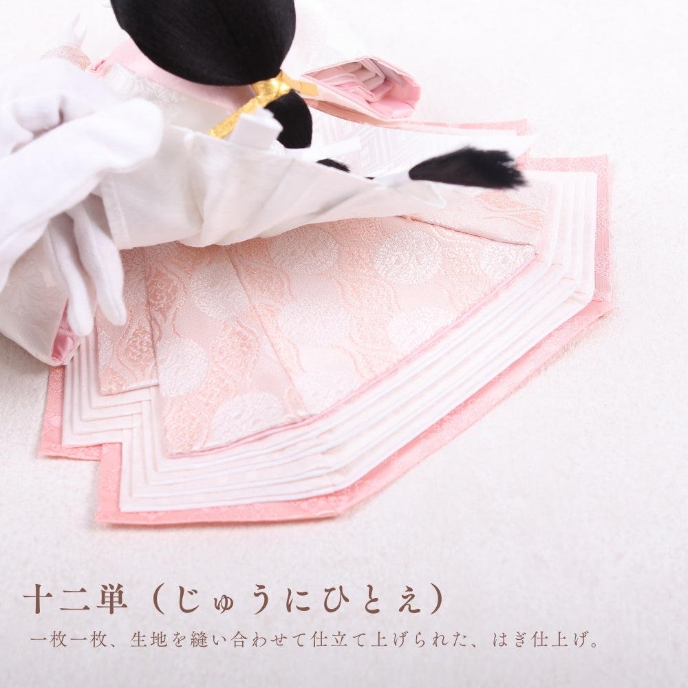 正絹は、100%絹から作られた生地で、「本絹」とも呼ばれます。蚕の繭を原料にし、複雑な工程を経て製造されます。絹糸を織って生地に仕上げることで、独特の光沢と滑らかな質感が生まれ、高級感のあるお人形が完成します。正絹は伝統的な工芸品に広く用いられ、その美しさが際立っています。