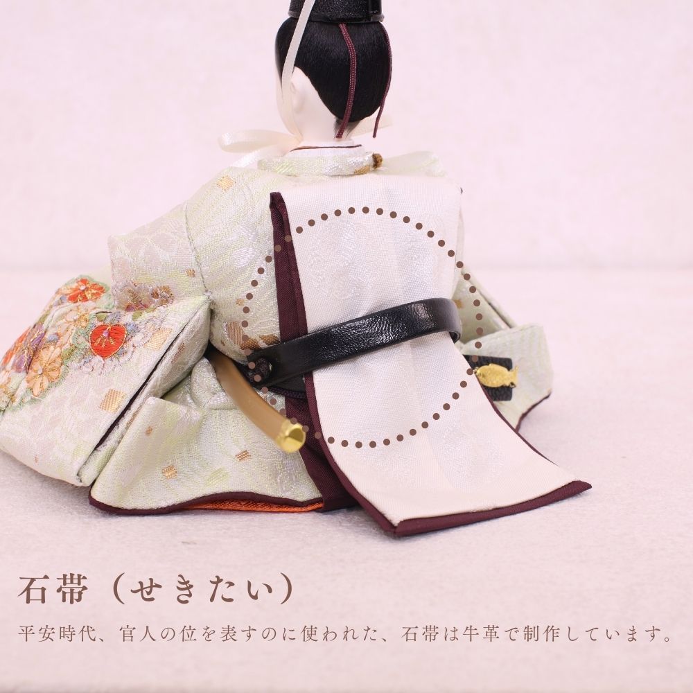 国産の栓(せん)は、美しい木目と温もりある質感が魅力の天然木です。耐久性に優れ、経年とともに味わいを深めます。台座や屏風などに使用することで、自然素材ならではの落ち着いた風合いと上質感を演出し、雛人形全体をより品格ある印象に仕上げます。