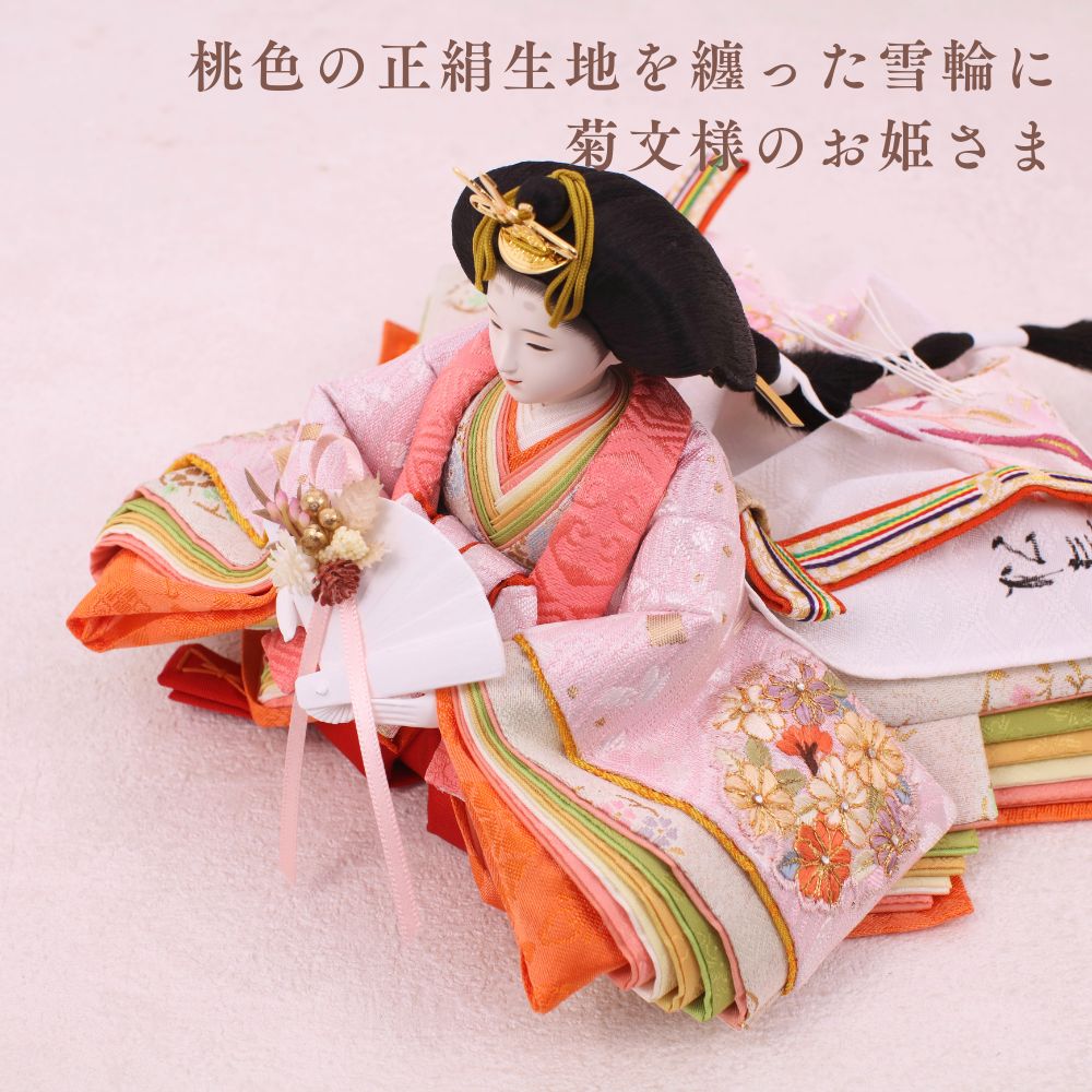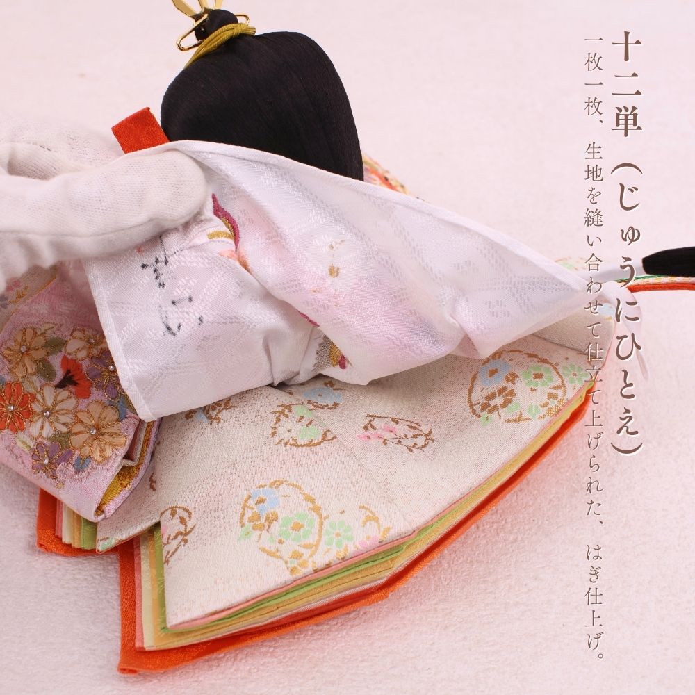 正絹は、100%絹から作られた生地で、「本絹」とも呼ばれます。蚕の繭を原料にし、複雑な工程を経て製造されます。絹糸を織って生地に仕上げることで、独特の光沢と滑らかな質感が生まれ、高級感のあるお人形が完成します。正絹は伝統的な工芸品に広く用いられ、その美しさが際立っています。