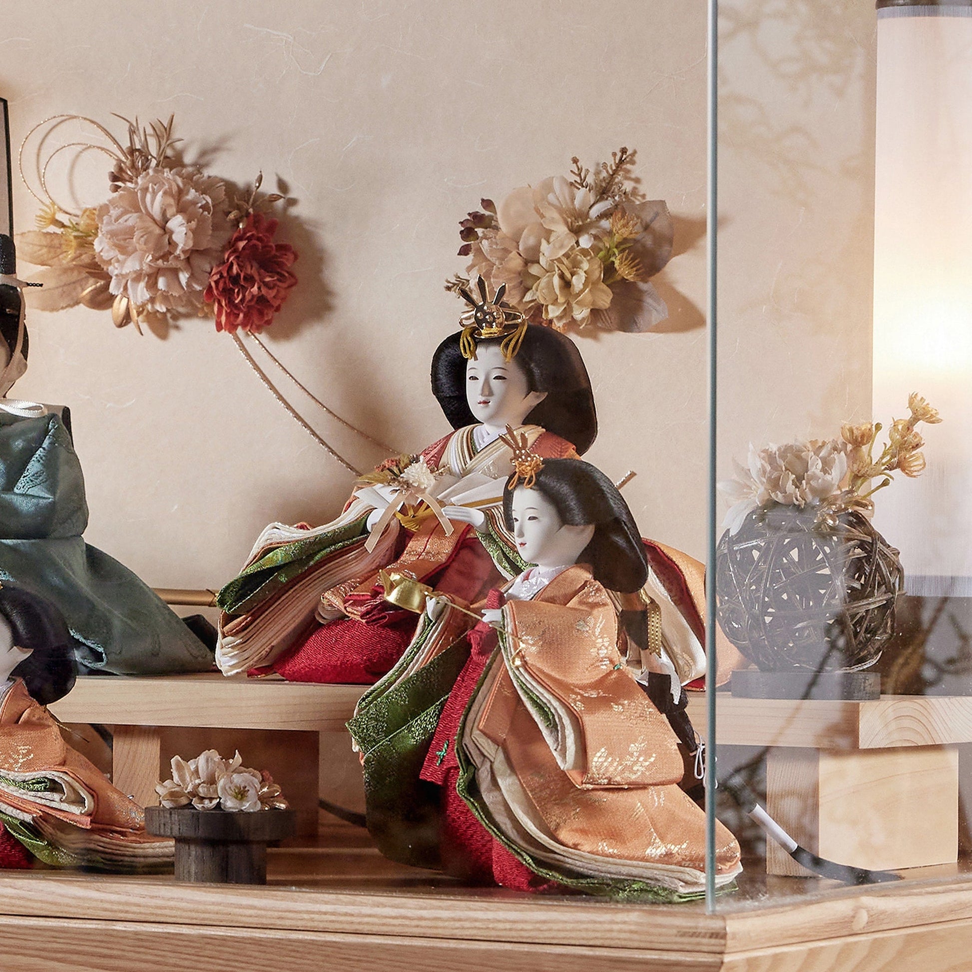 通常2mm厚が一般的な中、当店ではより高品質なAGC製3mmガラスを採用しています。厚みが増すことで強度と安全性が高まり、透明度の高いクリアな美しさを保ちます。大切な雛人形を守りながら、高級感のある見栄えを実現しています。