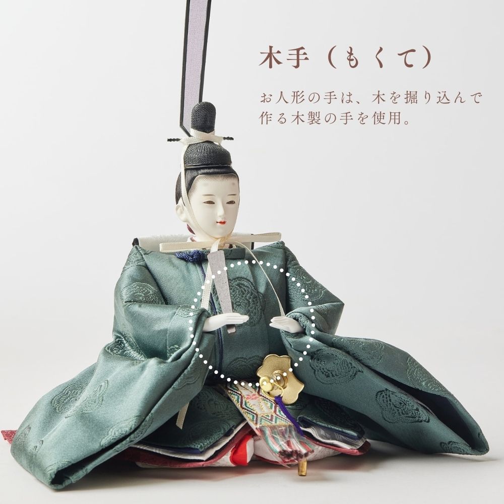 国産の栓(せん)は、美しい木目と温もりある質感が魅力の天然木です。耐久性に優れ、経年とともに味わいを深めます。台座や屏風などに使用することで、自然素材ならではの落ち着いた風合いと上質感を演出し、雛人形全体をより品格ある印象に仕上げます。