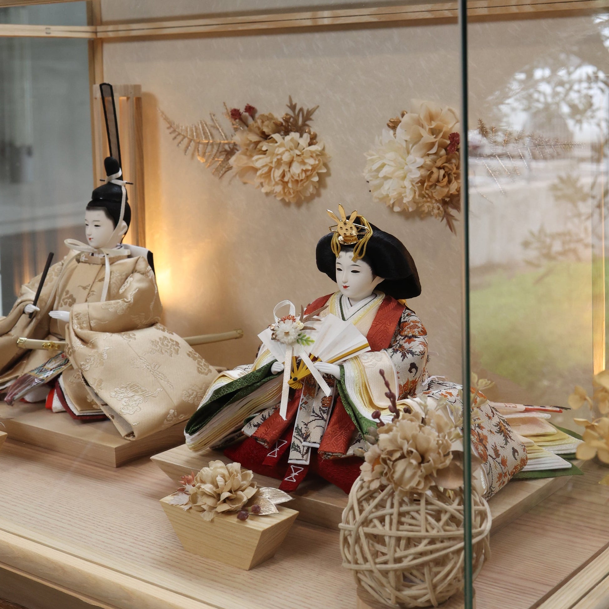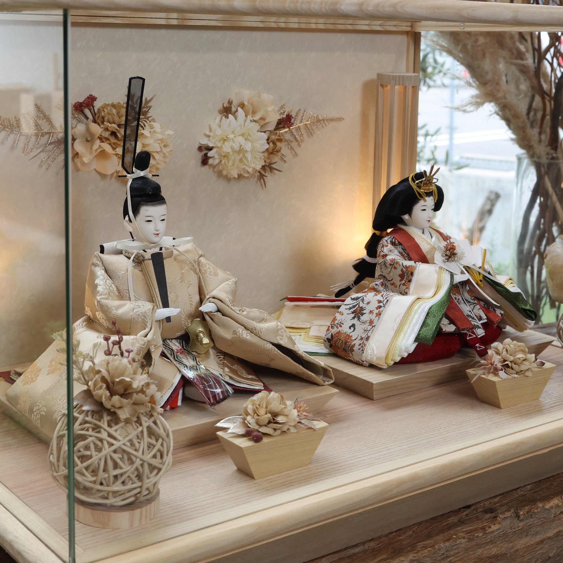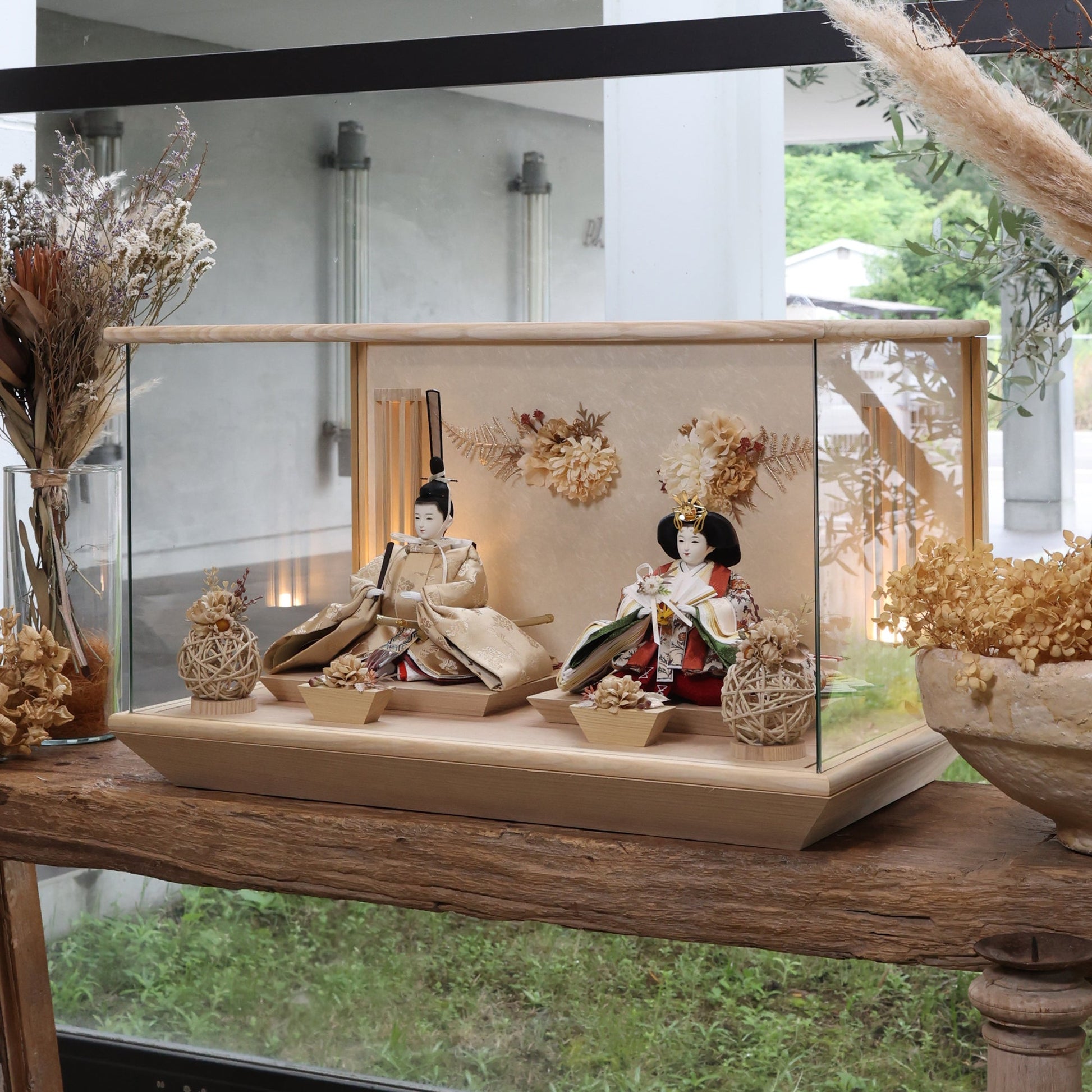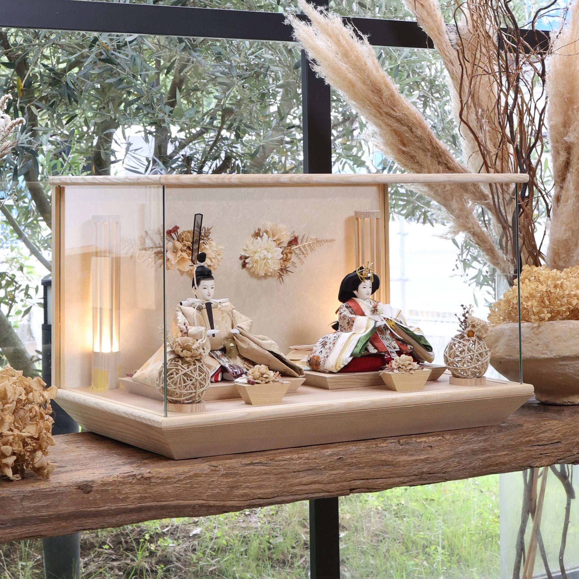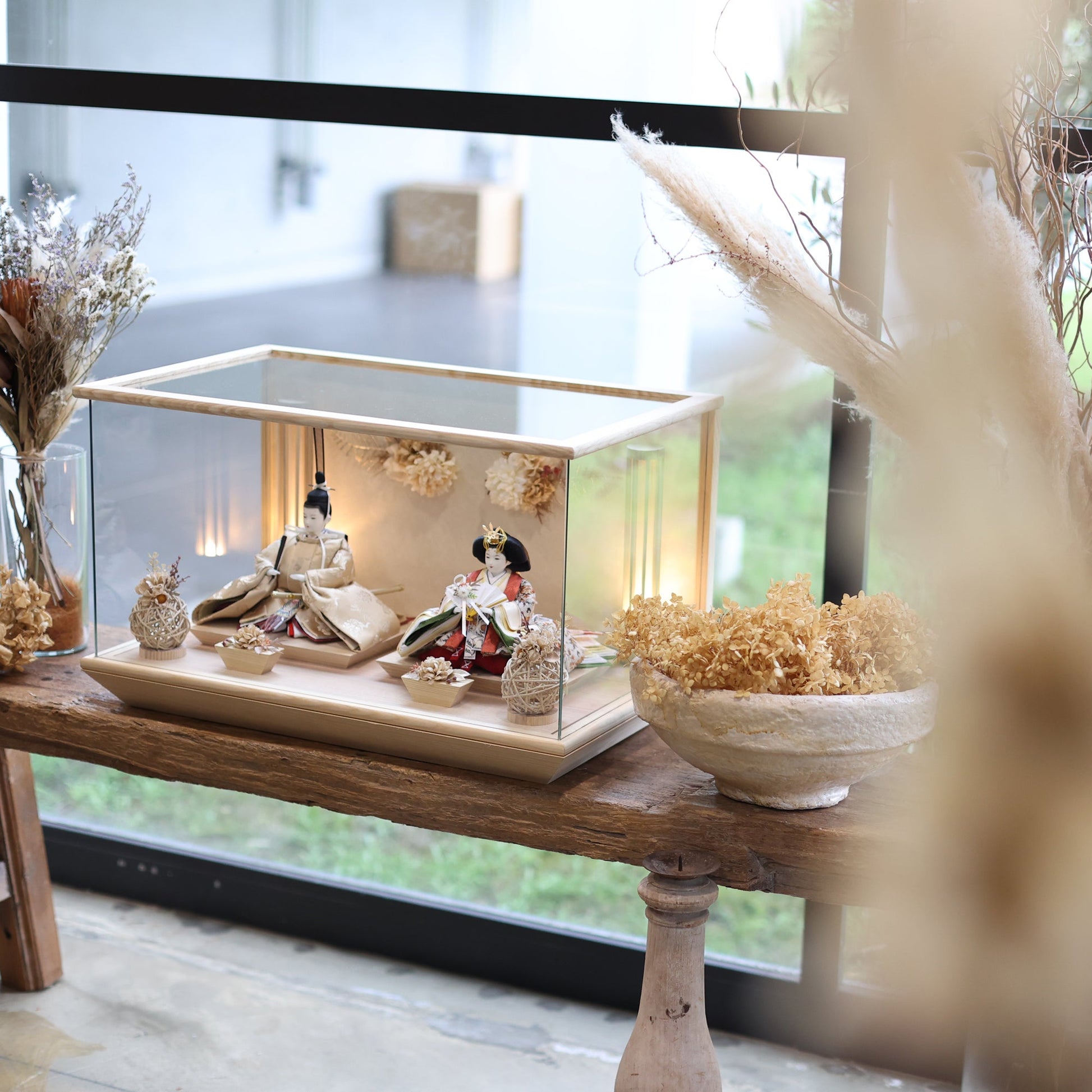 通常2mm厚が一般的な中、当店ではより高品質なAGC製3mmガラスを採用しています。厚みが増すことで強度と安全性が高まり、透明度の高いクリアな美しさを保ちます。大切な雛人形を守りながら、高級感のある見栄えを実現しています。