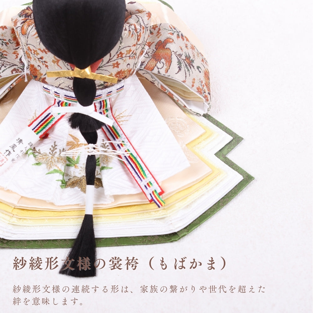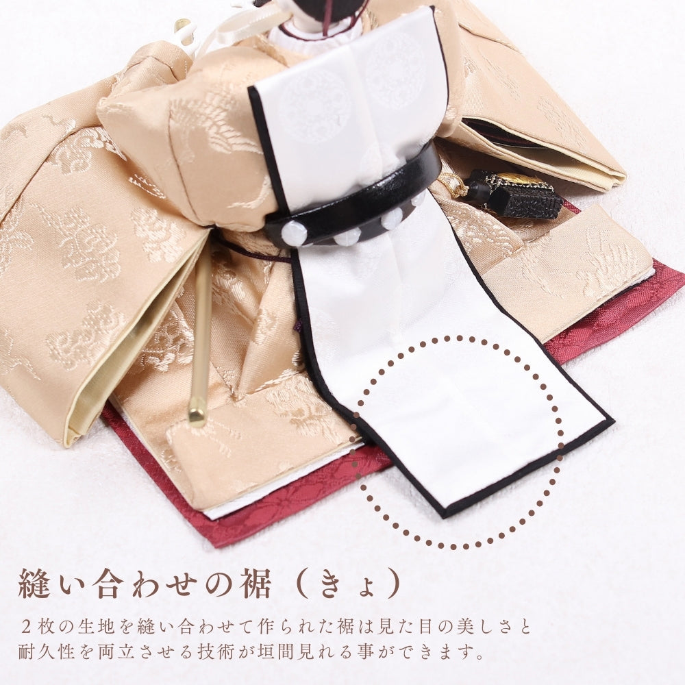 正絹は、100%絹から作られた生地で、「本絹」とも呼ばれます。蚕の繭を原料にし、複雑な工程を経て製造されます。絹糸を織って生地に仕上げることで、独特の光沢と滑らかな質感が生まれ、高級感のあるお人形が完成します。正絹は伝統的な工芸品に広く用いられ、その美しさが際立っています。