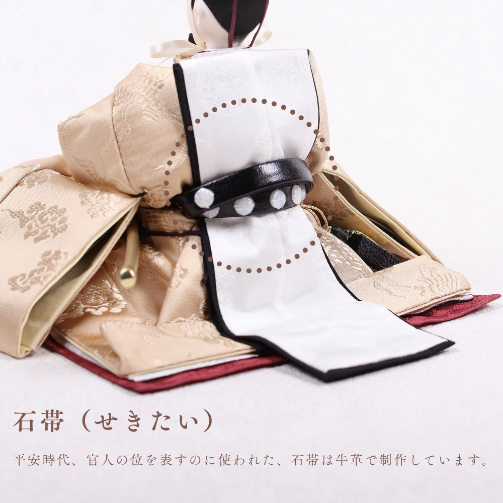 国産の栓(せん)は、美しい木目と温もりある質感が魅力の天然木です。耐久性に優れ、経年とともに味わいを深めます。台座や屏風などに使用することで、自然素材ならではの落ち着いた風合いと上質感を演出し、雛人形全体をより品格ある印象に仕上げます。