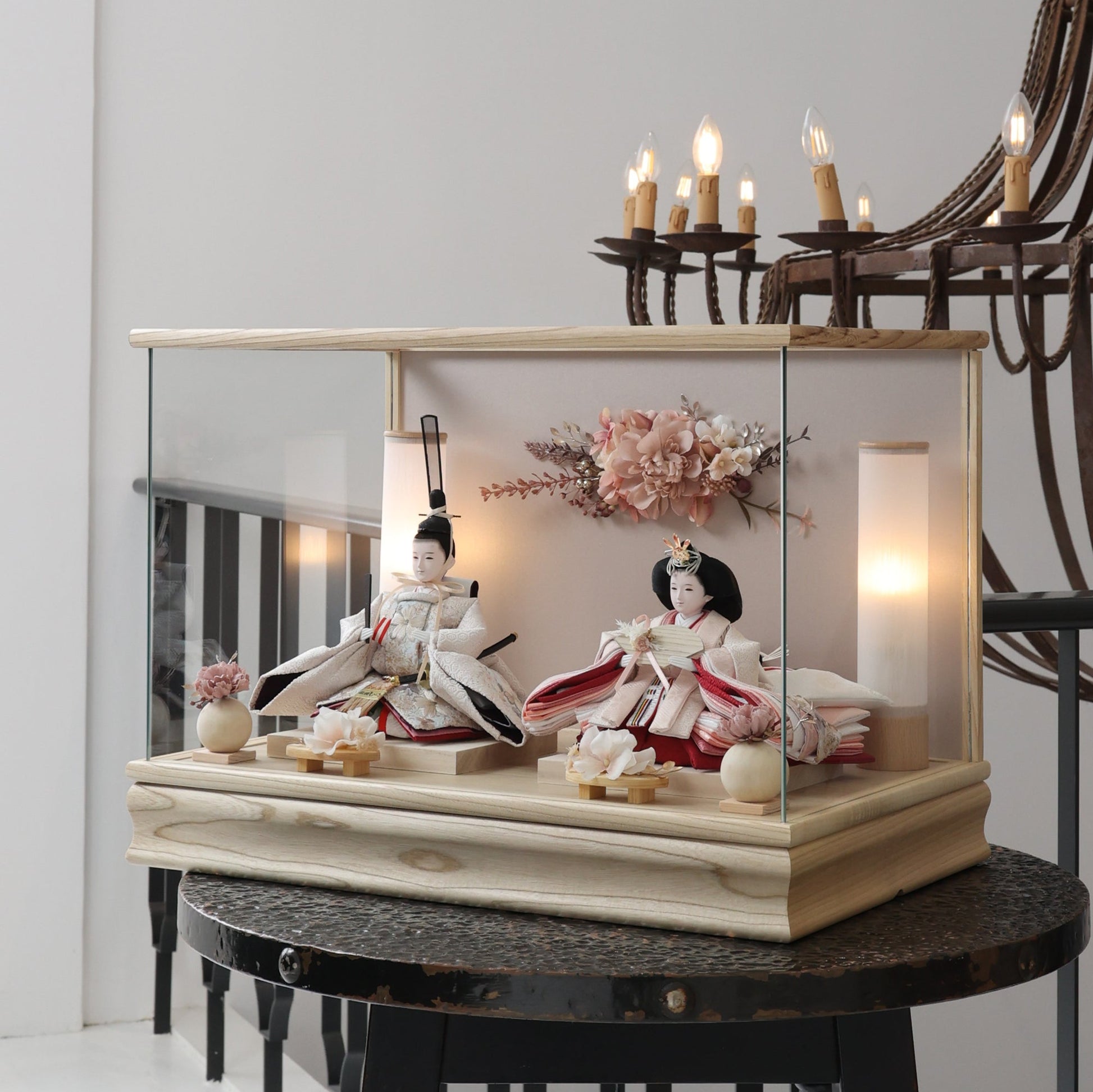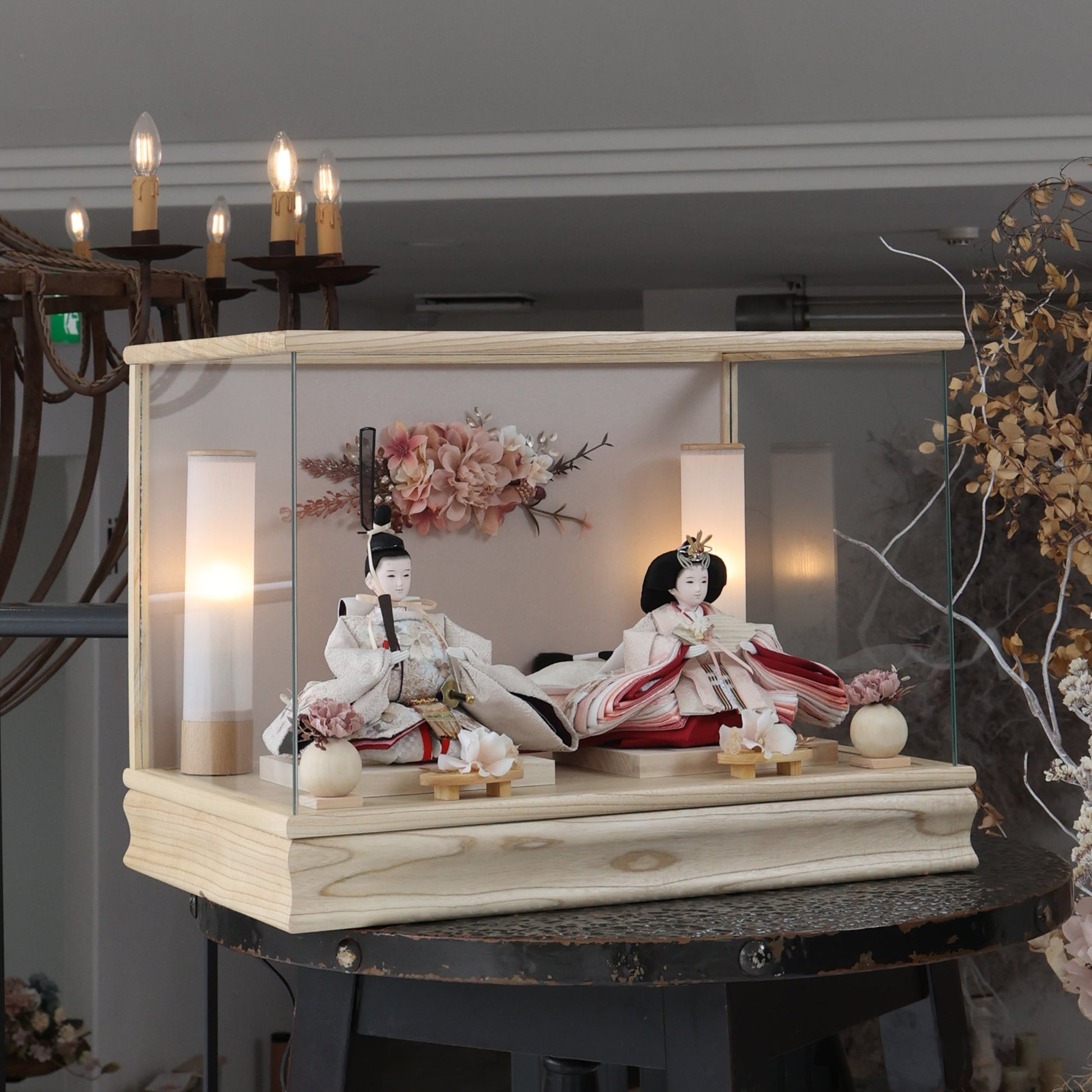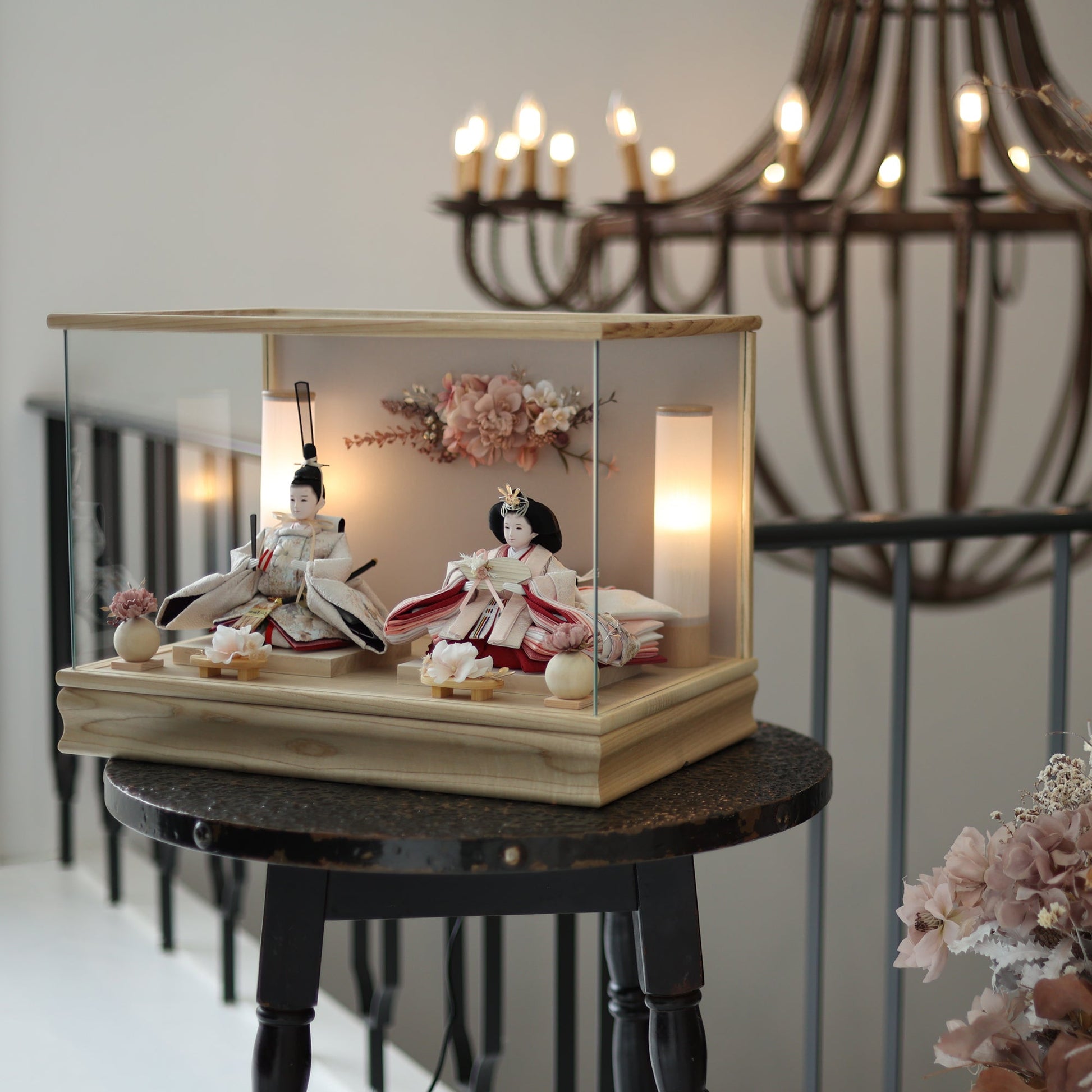 通常2mm厚が一般的な中、当店ではより高品質なAGC製3mmガラスを採用しています。厚みが増すことで強度と安全性が高まり、透明度の高いクリアな美しさを保ちます。大切な雛人形を守りながら、高級感のある見栄えを実現しています。
