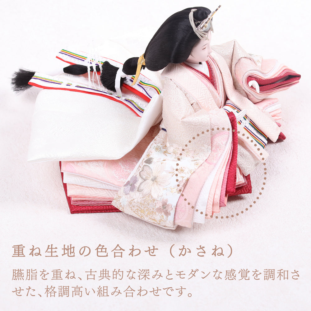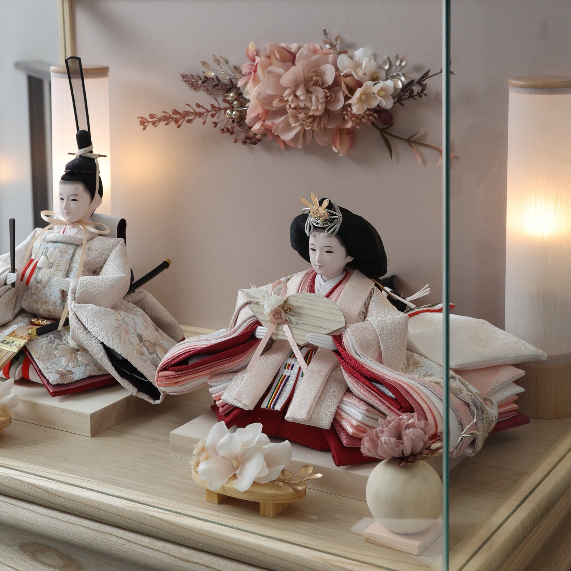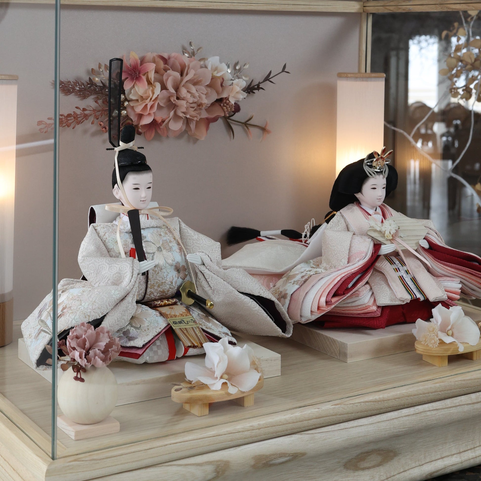通常2mm厚が一般的な中、当店ではより高品質なAGC製3mmガラスを採用しています。厚みが増すことで強度と安全性が高まり、透明度の高いクリアな美しさを保ちます。大切な雛人形を守りながら、高級感のある見栄えを実現しています。