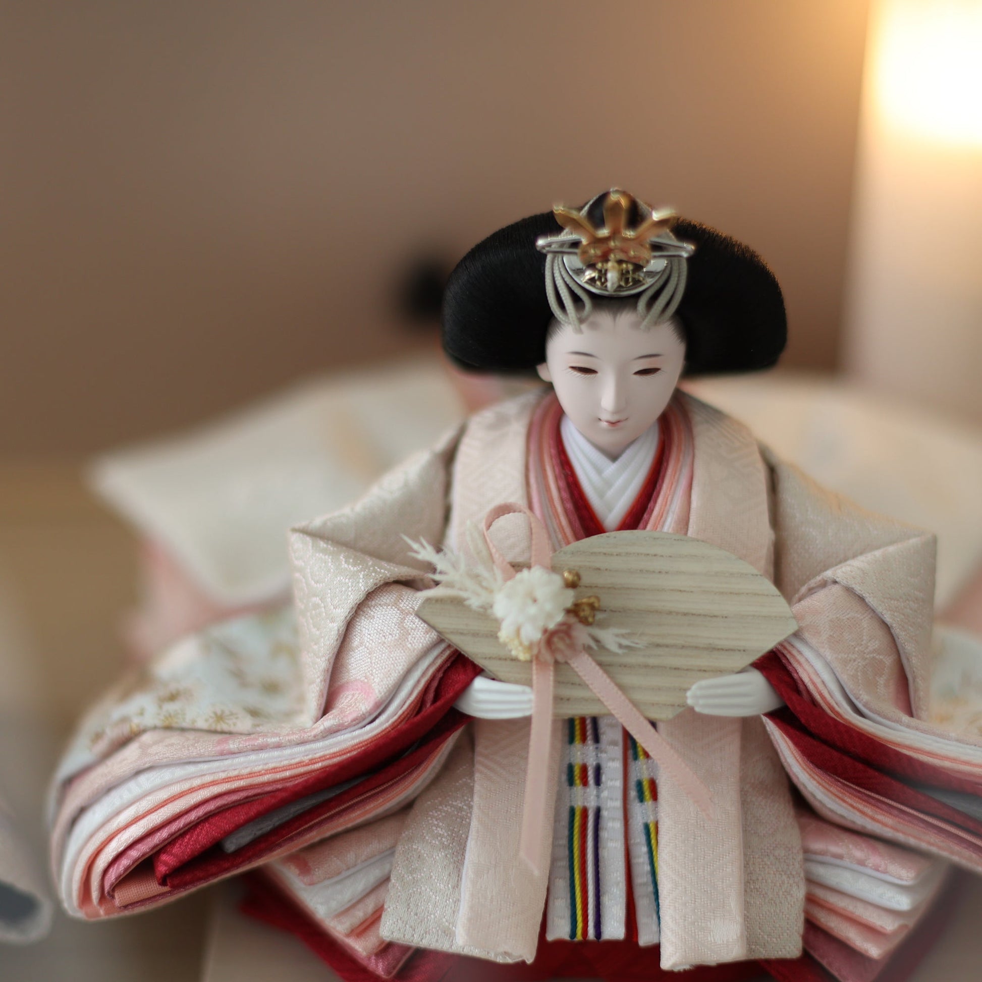 国産の栓(せん)は、美しい木目と温もりある質感が魅力の天然木です。耐久性に優れ、経年とともに味わいを深めます。台座や屏風などに使用することで、自然素材ならではの落ち着いた風合いと上質感を演出し、雛人形全体をより品格ある印象に仕上げます。