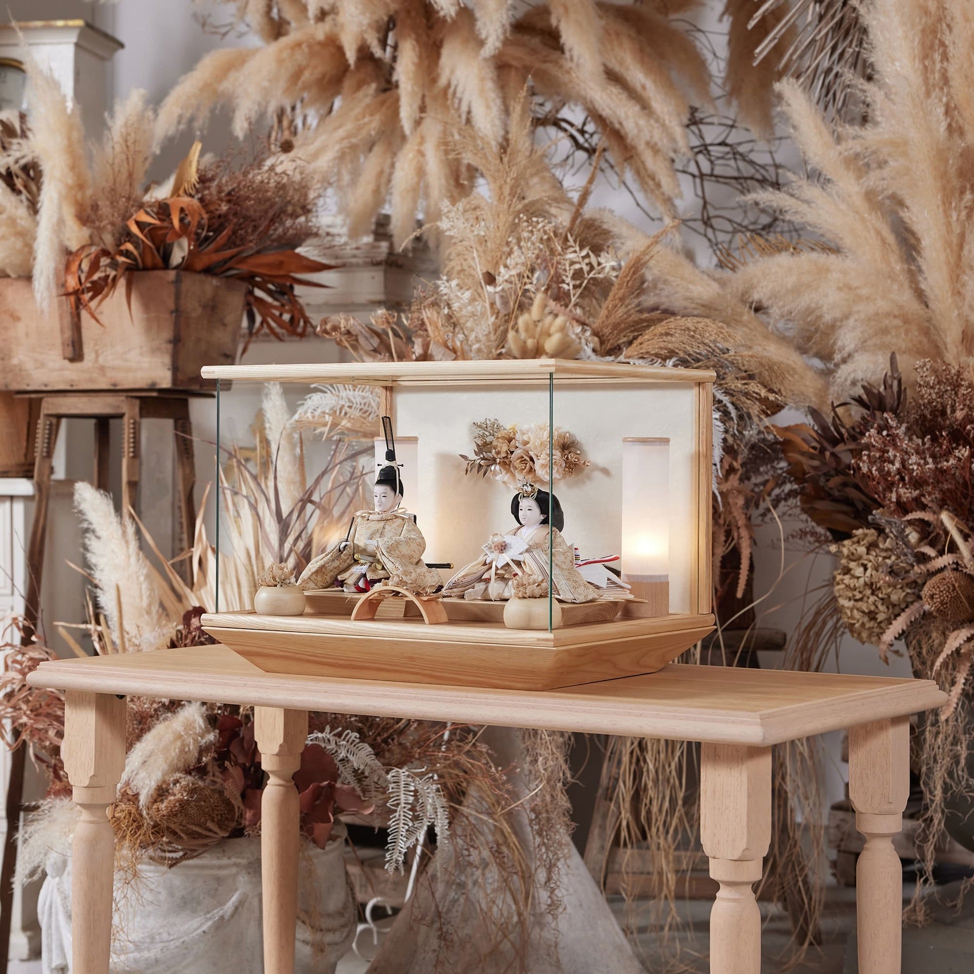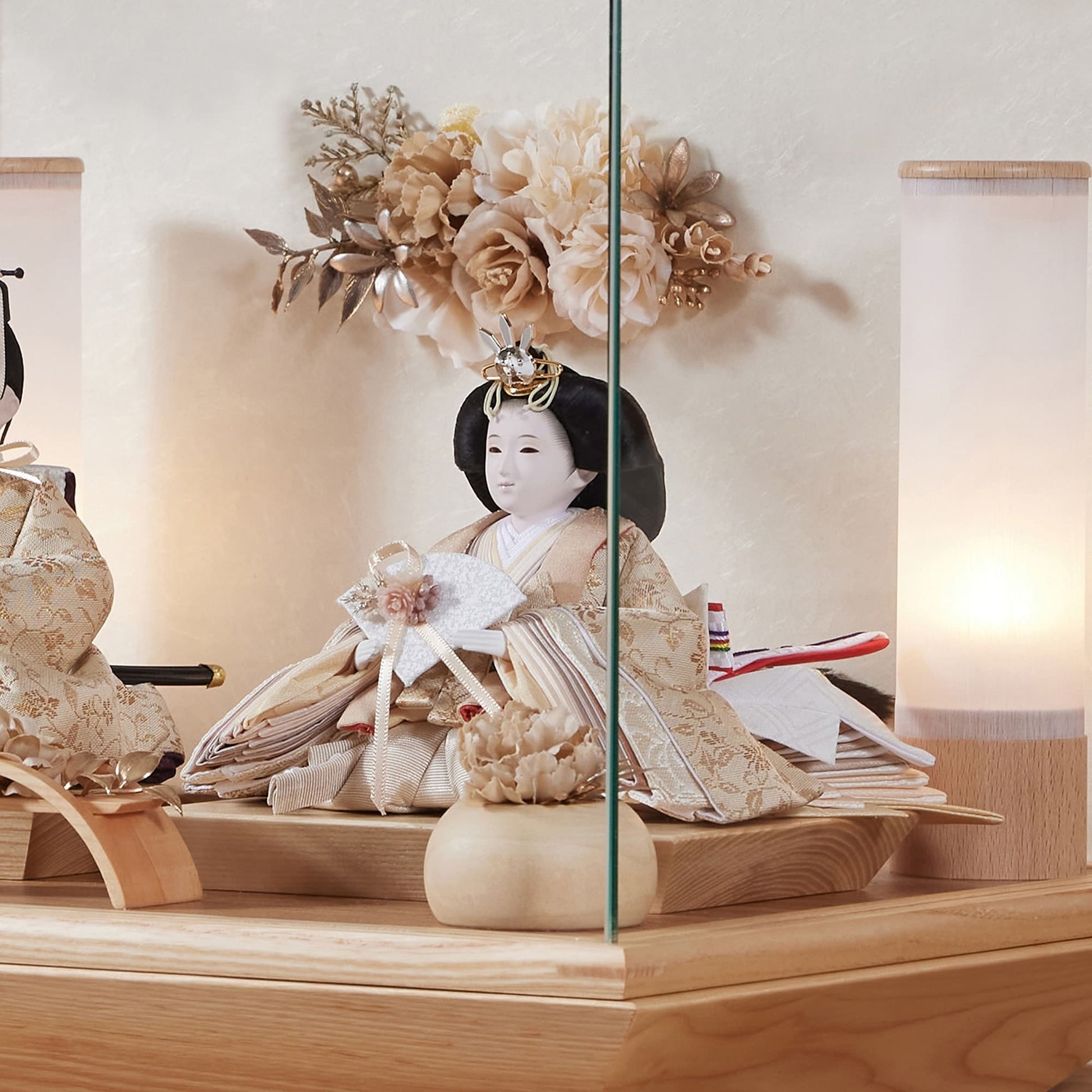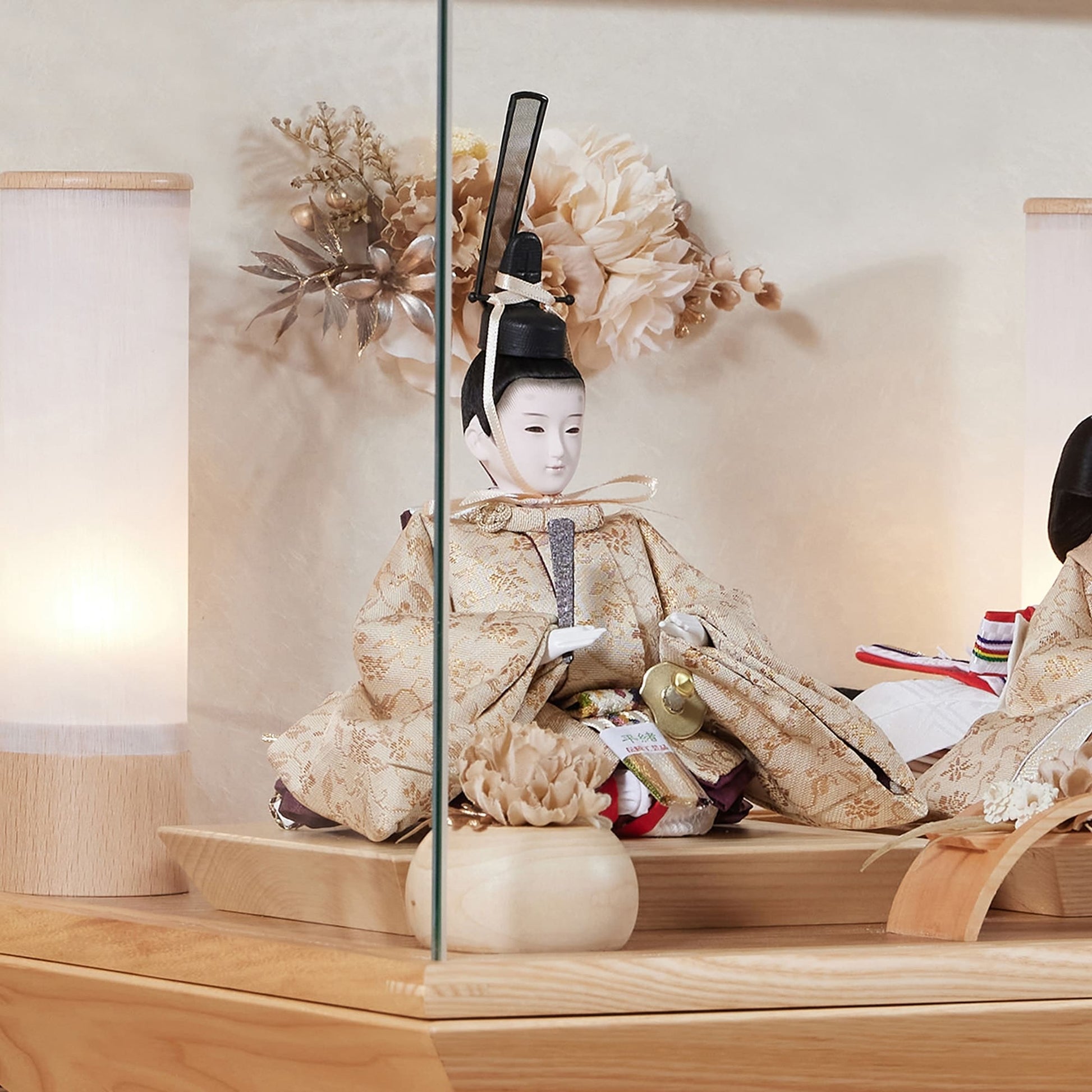 通常2mm厚が一般的な中、当店ではより高品質なAGC製3mmガラスを採用しています。厚みが増すことで強度と安全性が高まり、透明度の高いクリアな美しさを保ちます。大切な雛人形を守りながら、高級感のある見栄えを実現しています。