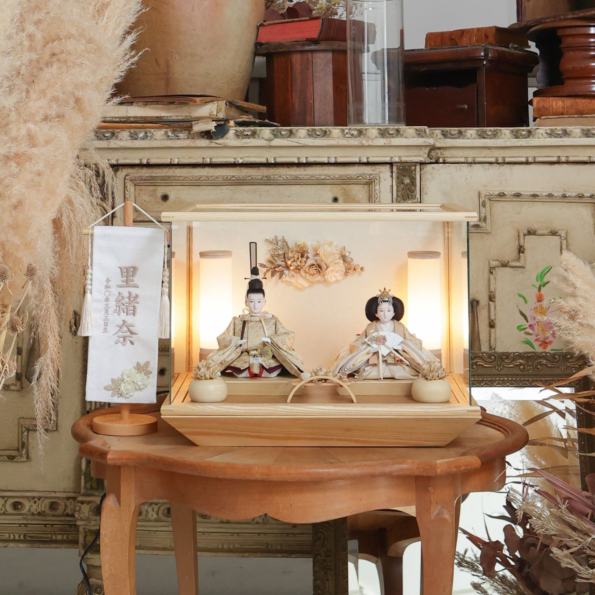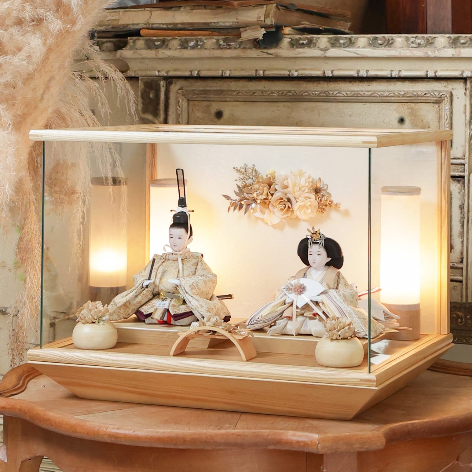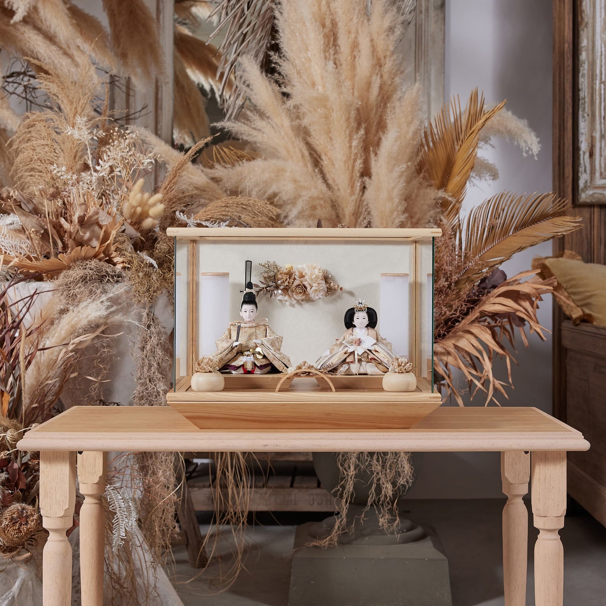 通常2mm厚が一般的な中、当店ではより高品質なAGC製3mmガラスを採用しています。厚みが増すことで強度と安全性が高まり、透明度の高いクリアな美しさを保ちます。大切な雛人形を守りながら、高級感のある見栄えを実現しています。