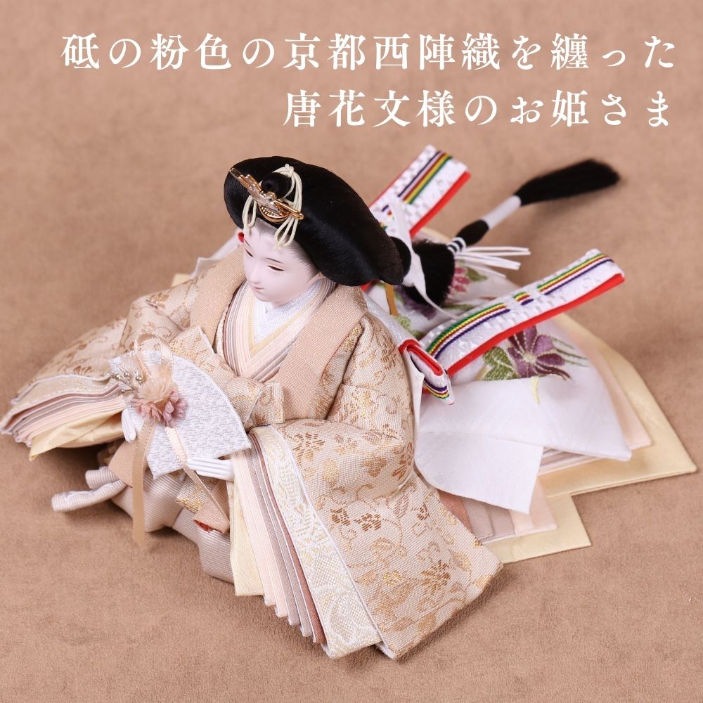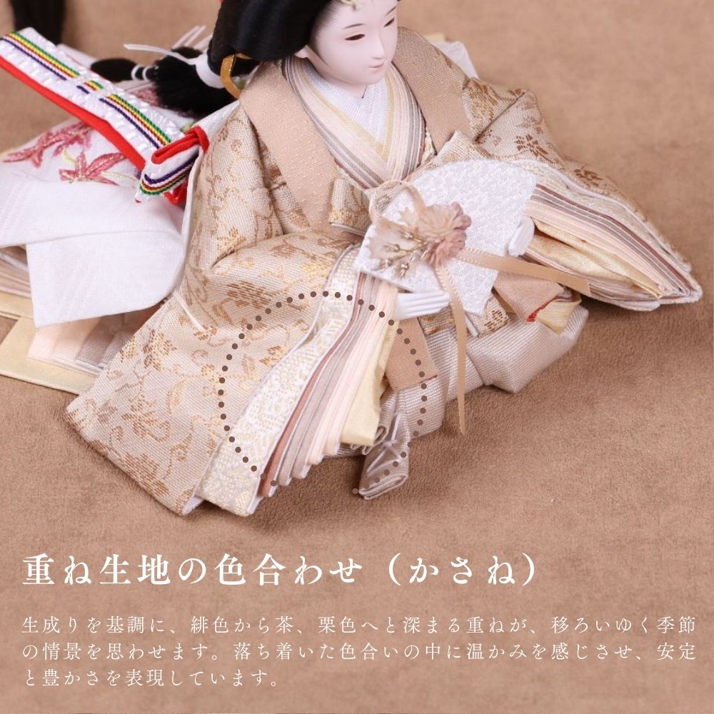国産の栓(せん)は、美しい木目と温もりある質感が魅力の天然木です。耐久性に優れ、経年とともに味わいを深めます。台座や屏風などに使用することで、自然素材ならではの落ち着いた風合いと上質感を演出し、雛人形全体をより品格ある印象に仕上げます。