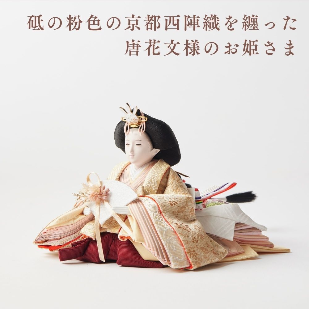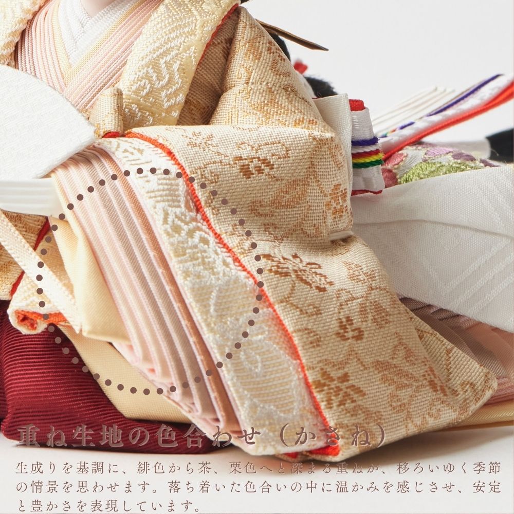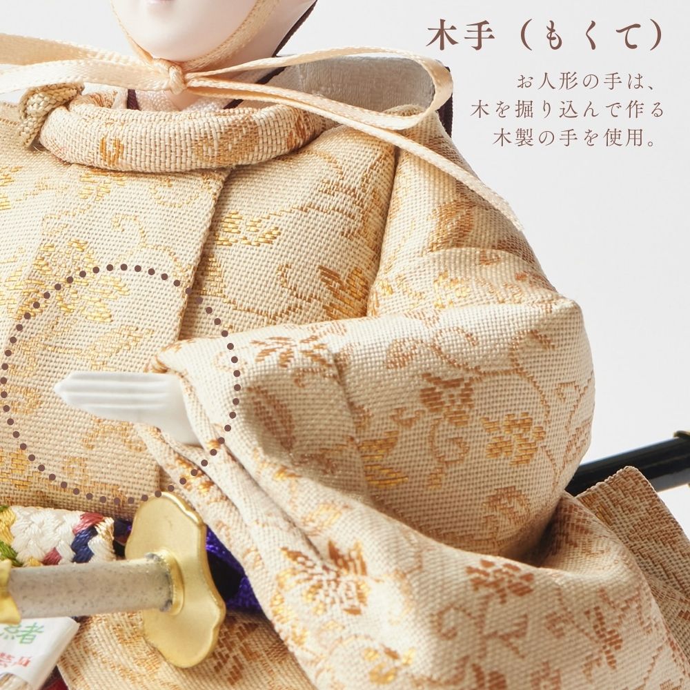国産の栓(せん)は、美しい木目と温もりある質感が魅力の天然木です。耐久性に優れ、経年とともに味わいを深めます。台座や屏風などに使用することで、自然素材ならではの落ち着いた風合いと上質感を演出し、雛人形全体をより品格ある印象に仕上げます。