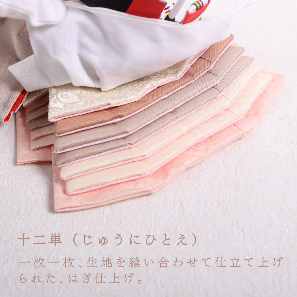 正絹は、100%絹から作られた生地で、「本絹」とも呼ばれます。蚕の繭を原料にし、複雑な工程を経て製造されます。絹糸を織って生地に仕上げることで、独特の光沢と滑らかな質感が生まれ、高級感のあるお人形が完成します。正絹は伝統的な工芸品に広く用いられ、その美しさが際立っています。
