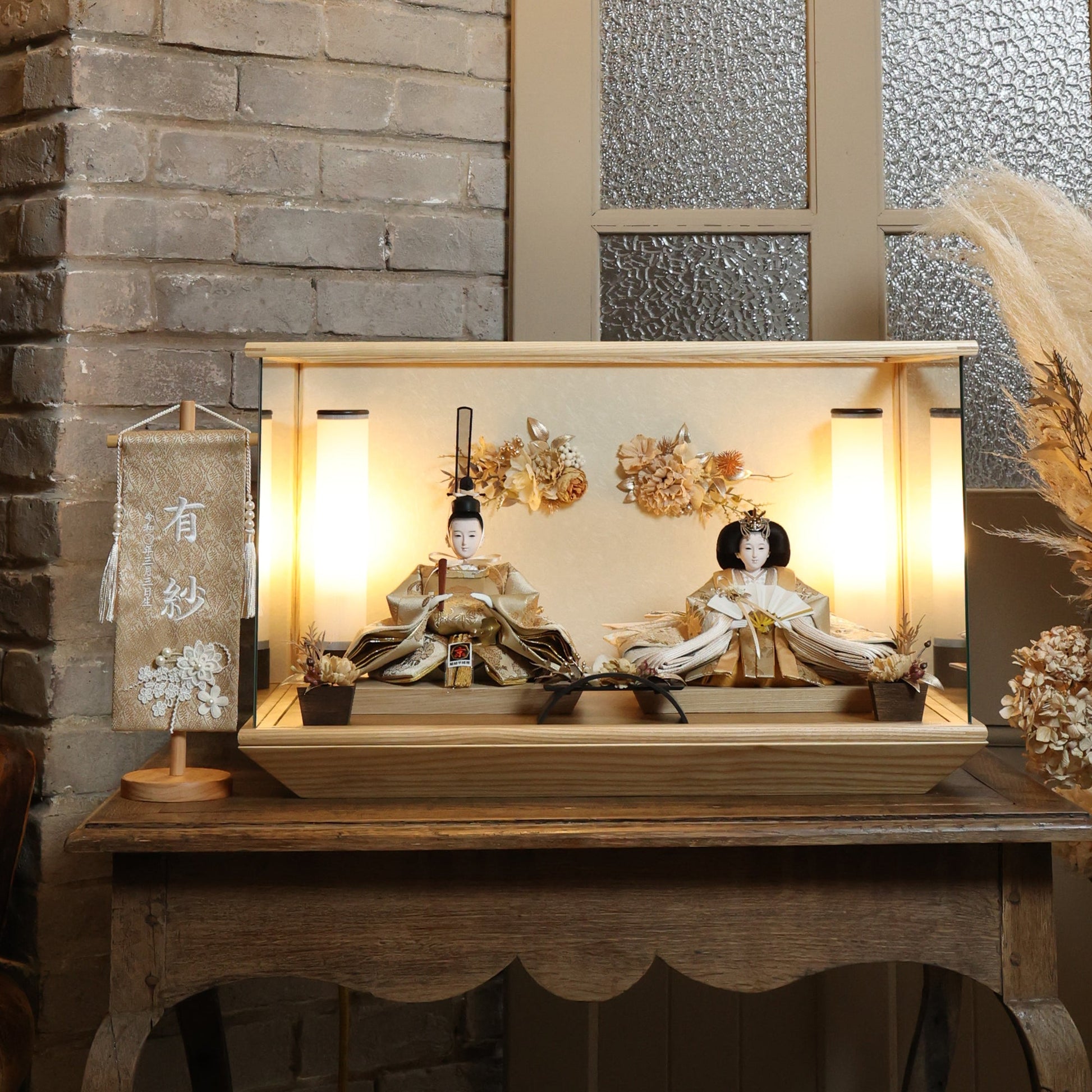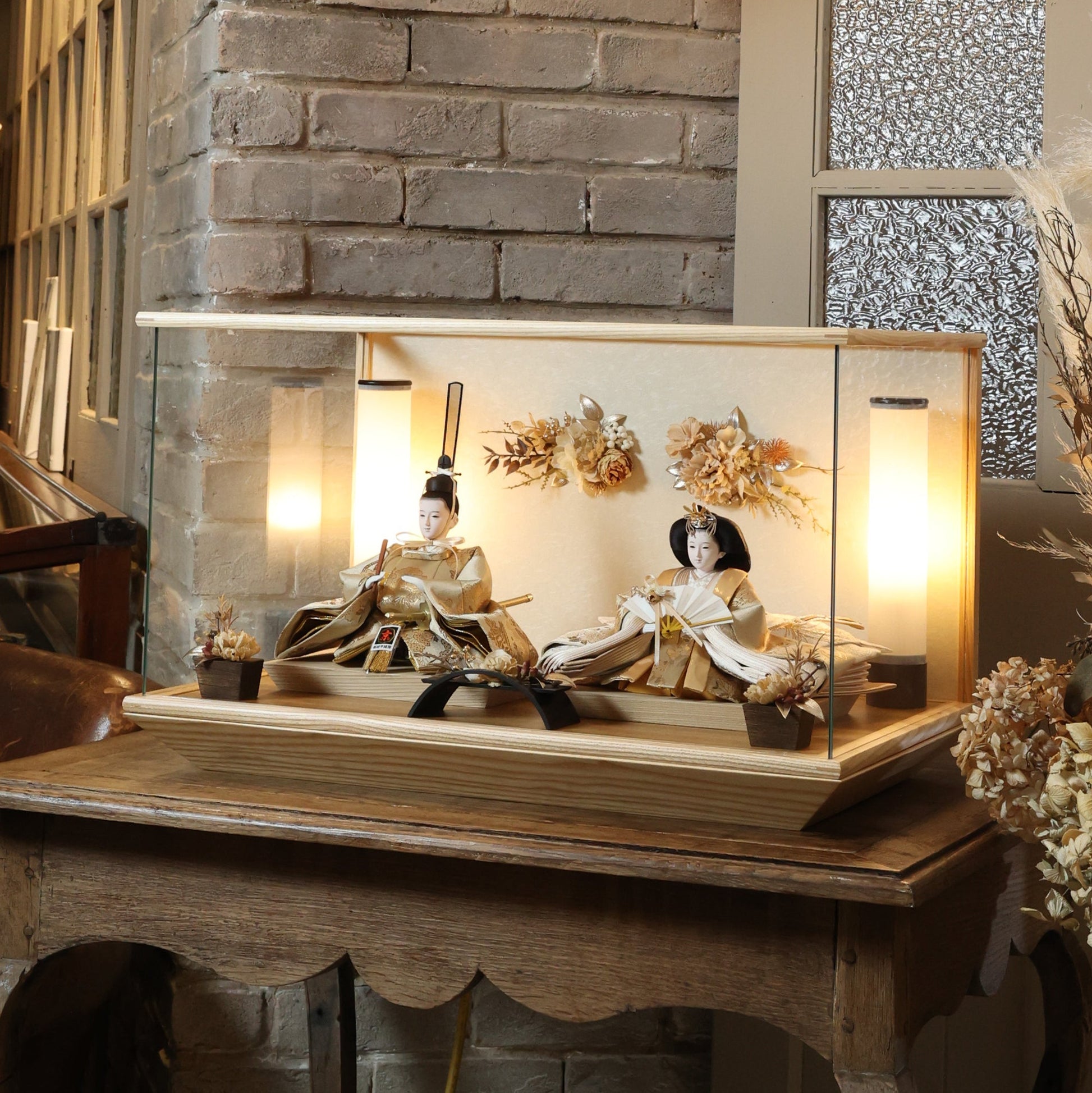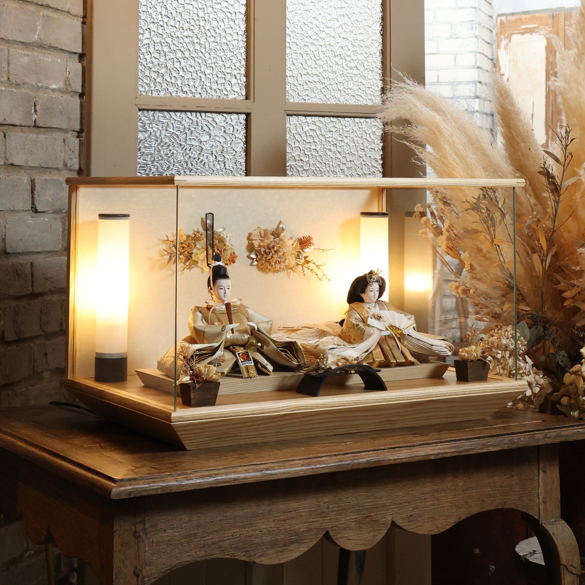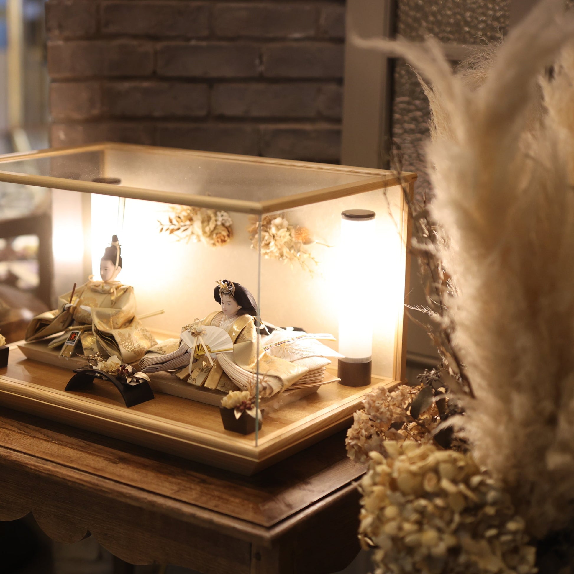 通常2mm厚が一般的な中、当店ではより高品質なAGC製3mmガラスを採用しています。厚みが増すことで強度と安全性が高まり、透明度の高いクリアな美しさを保ちます。大切な雛人形を守りながら、高級感のある見栄えを実現しています。