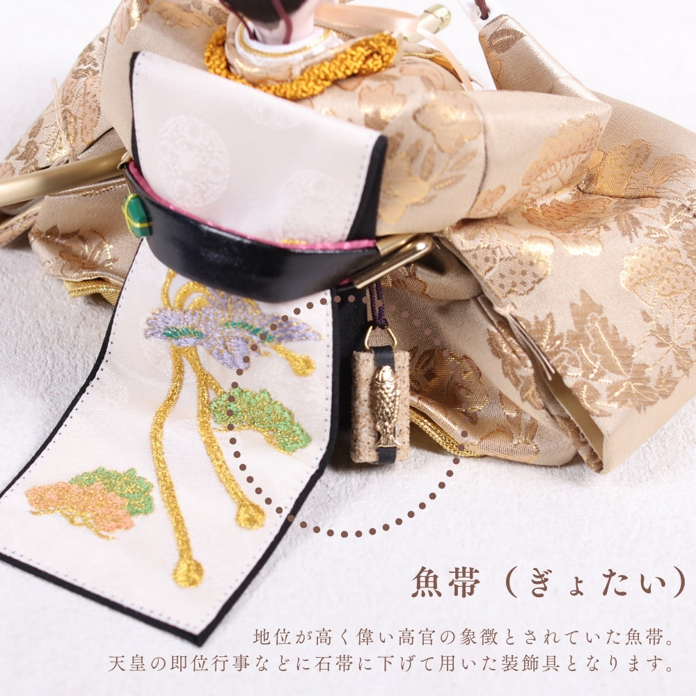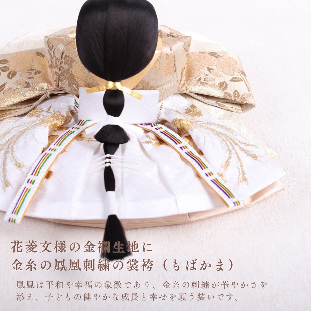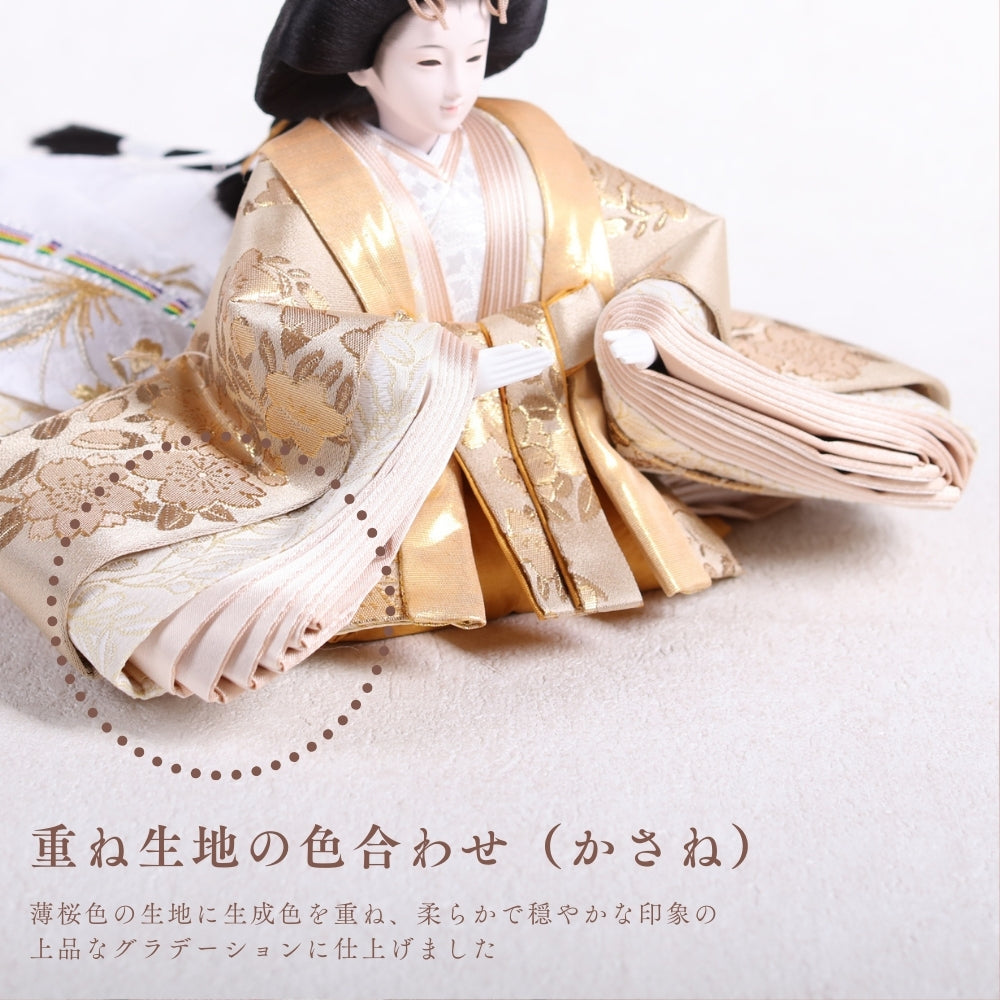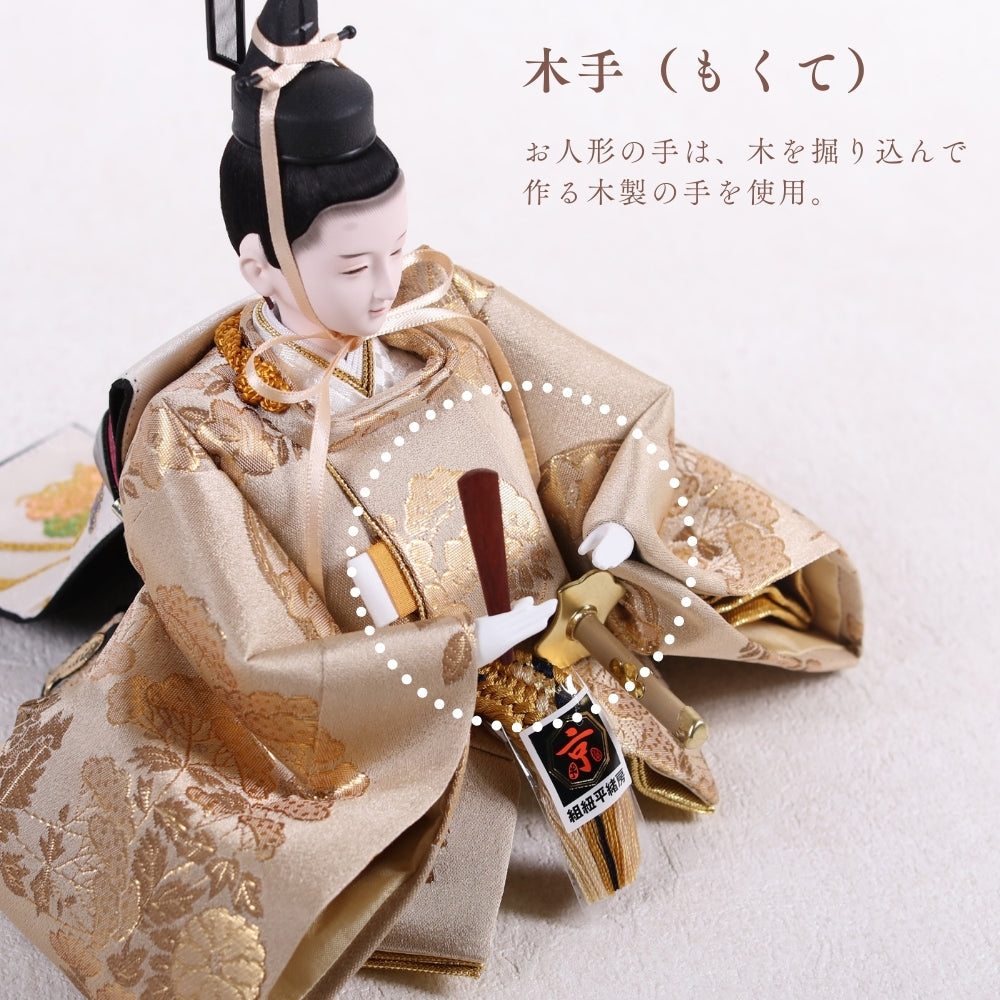 国産の栓(せん)は、美しい木目と温もりある質感が魅力の天然木です。耐久性に優れ、経年とともに味わいを深めます。台座や屏風などに使用することで、自然素材ならではの落ち着いた風合いと上質感を演出し、雛人形全体をより品格ある印象に仕上げます。